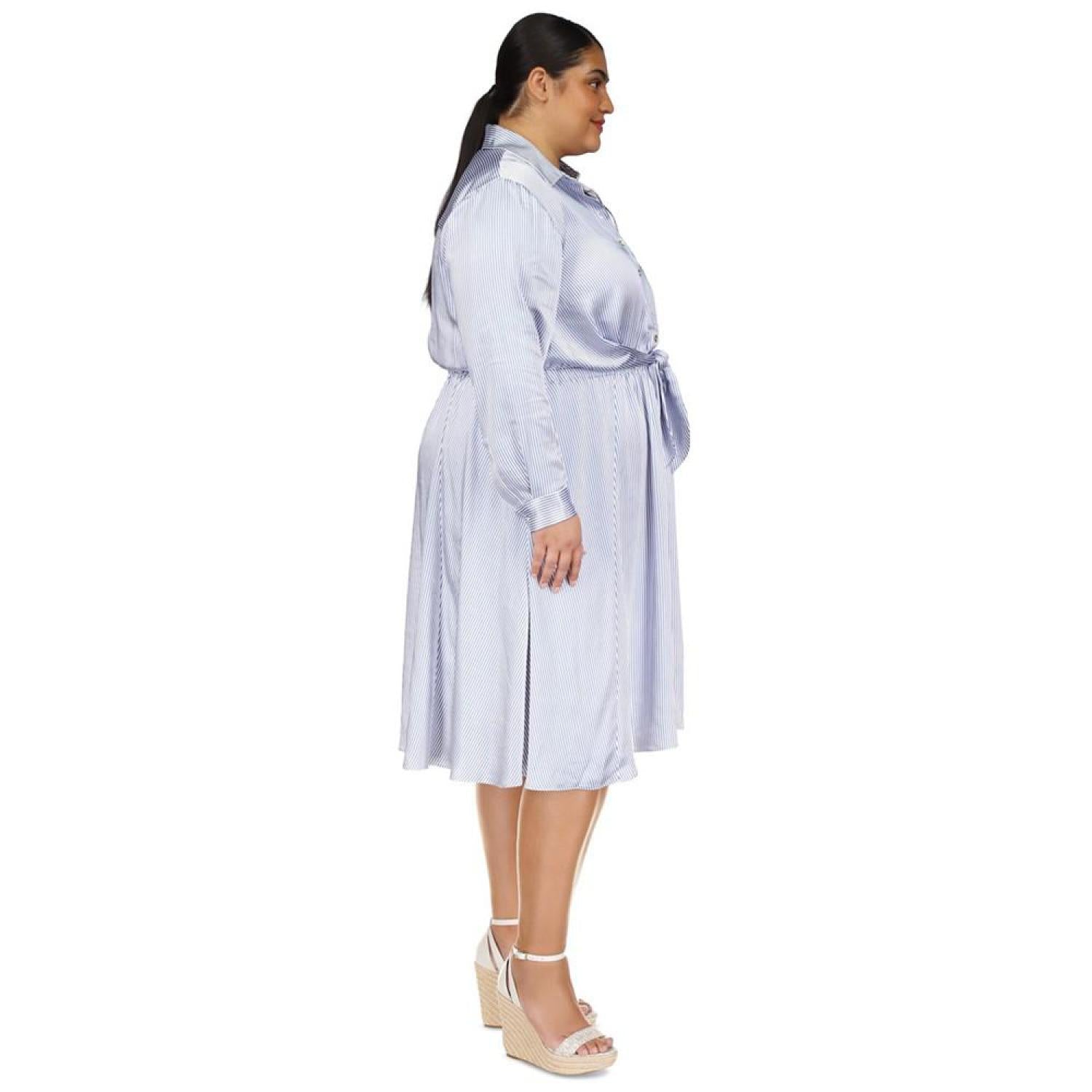 Trendy Plus Size Pinstriped Satin Shirtdress