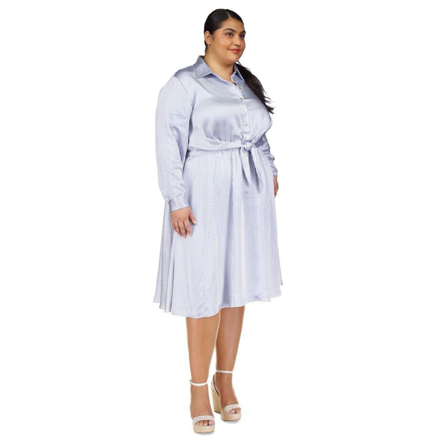Meet your new day-to-dinner favorite: MICHAEL Michael Kors' pinstriped plus size shirtdress.