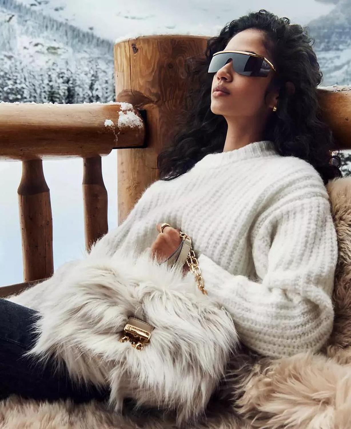 Body: 49% acrylic, 29% polyester, 22% modacrylic; lining: 100% polyester; trim: 100% leather