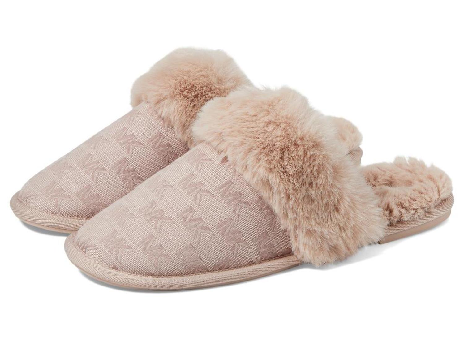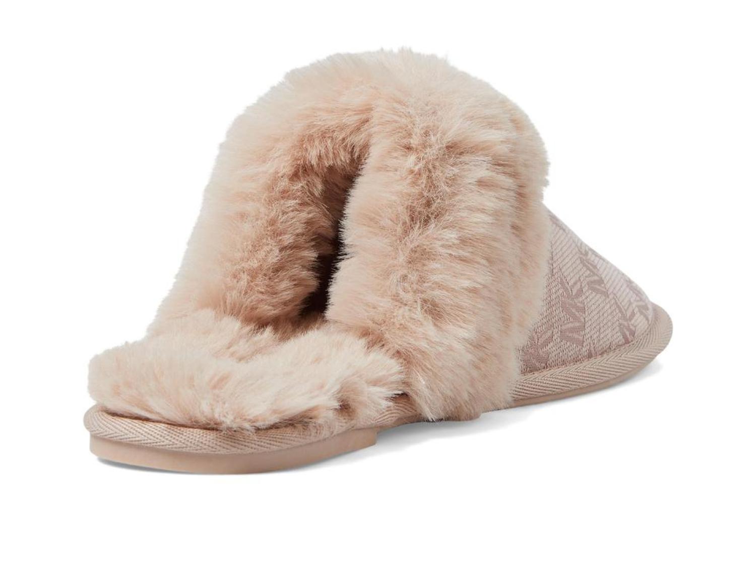• Those laid-back weekends during chilly months are going to be super-cozy and comfortable for you as you cradle your feet with the MICHAEL Michael Kors® Tula Scuff Slippers. They are crafted with a logo-embossed textile upper with plush textile accents and a soft and cozy textile lining and footbed for all-day comfort.