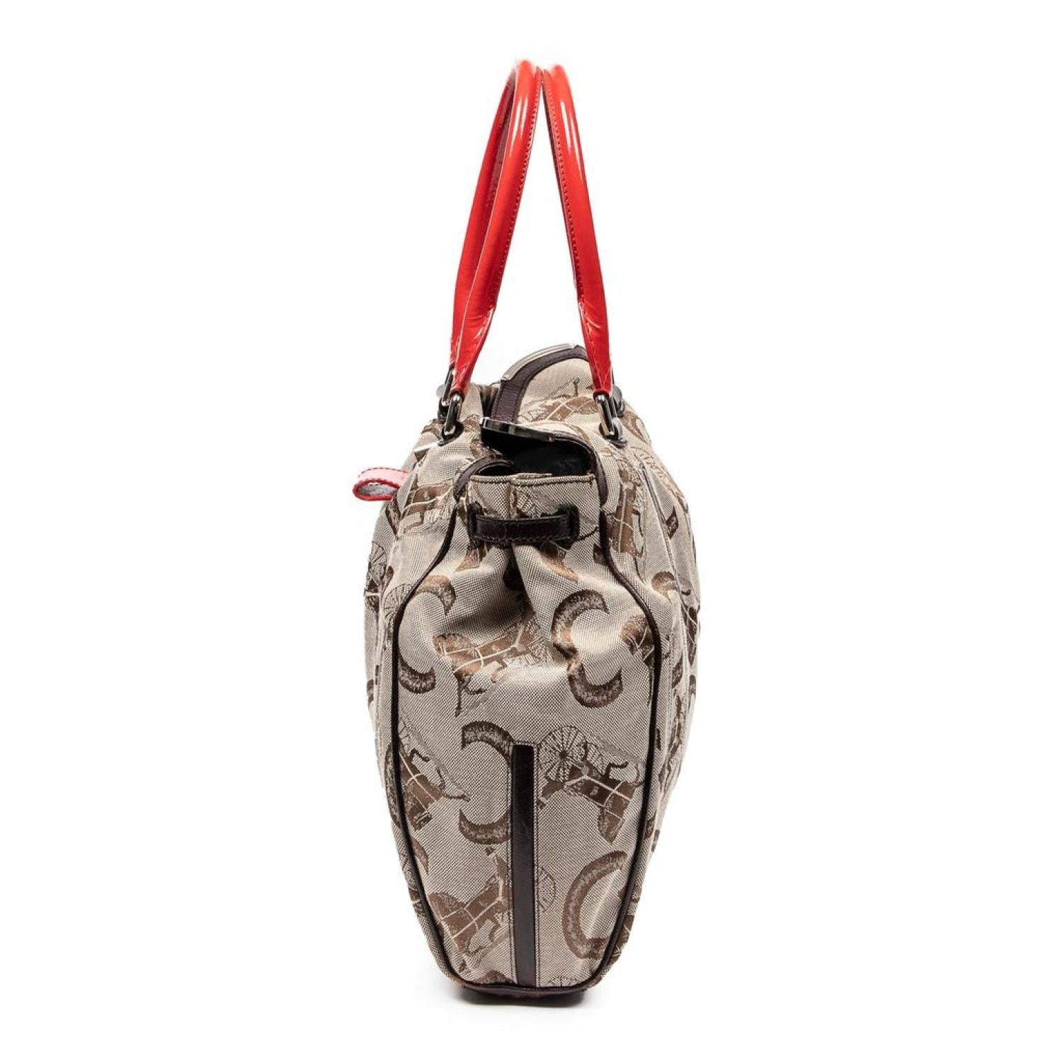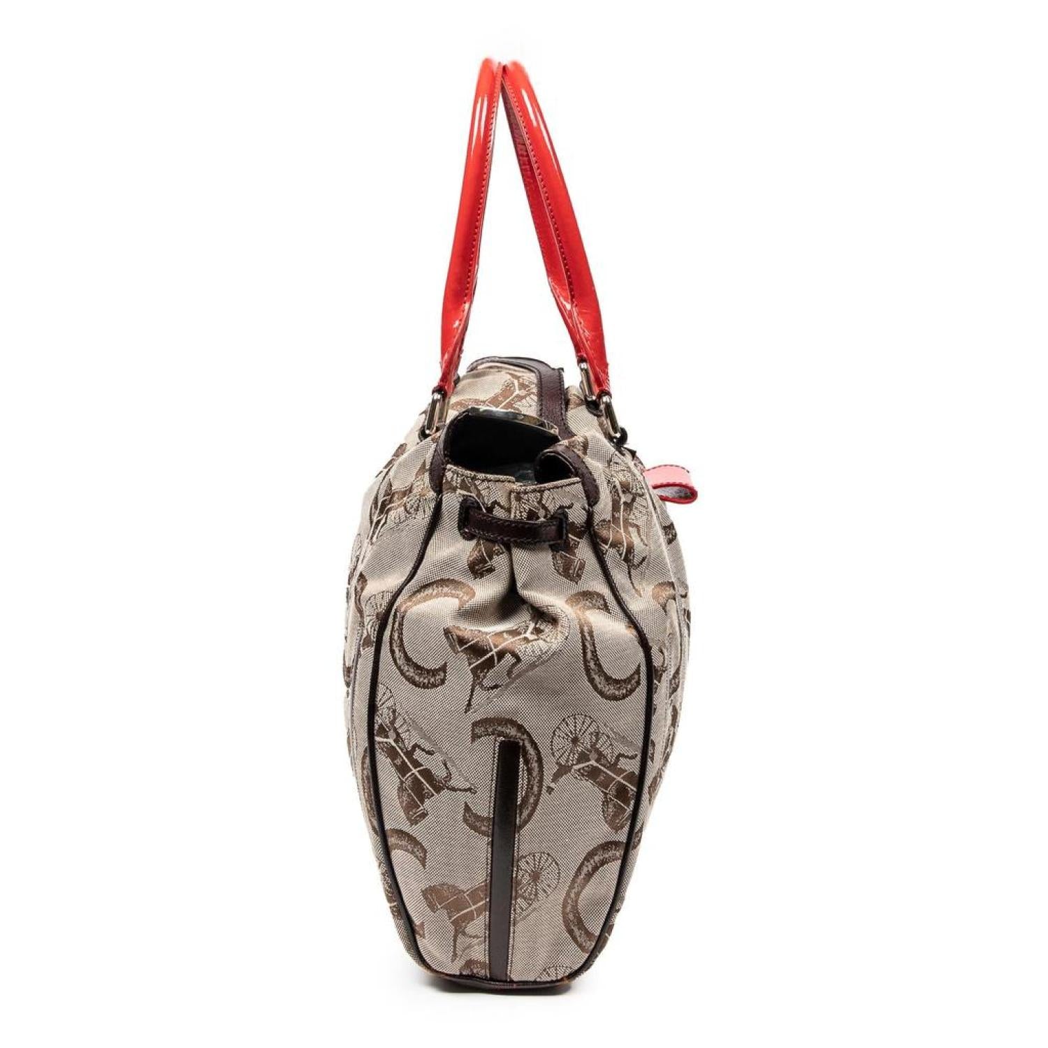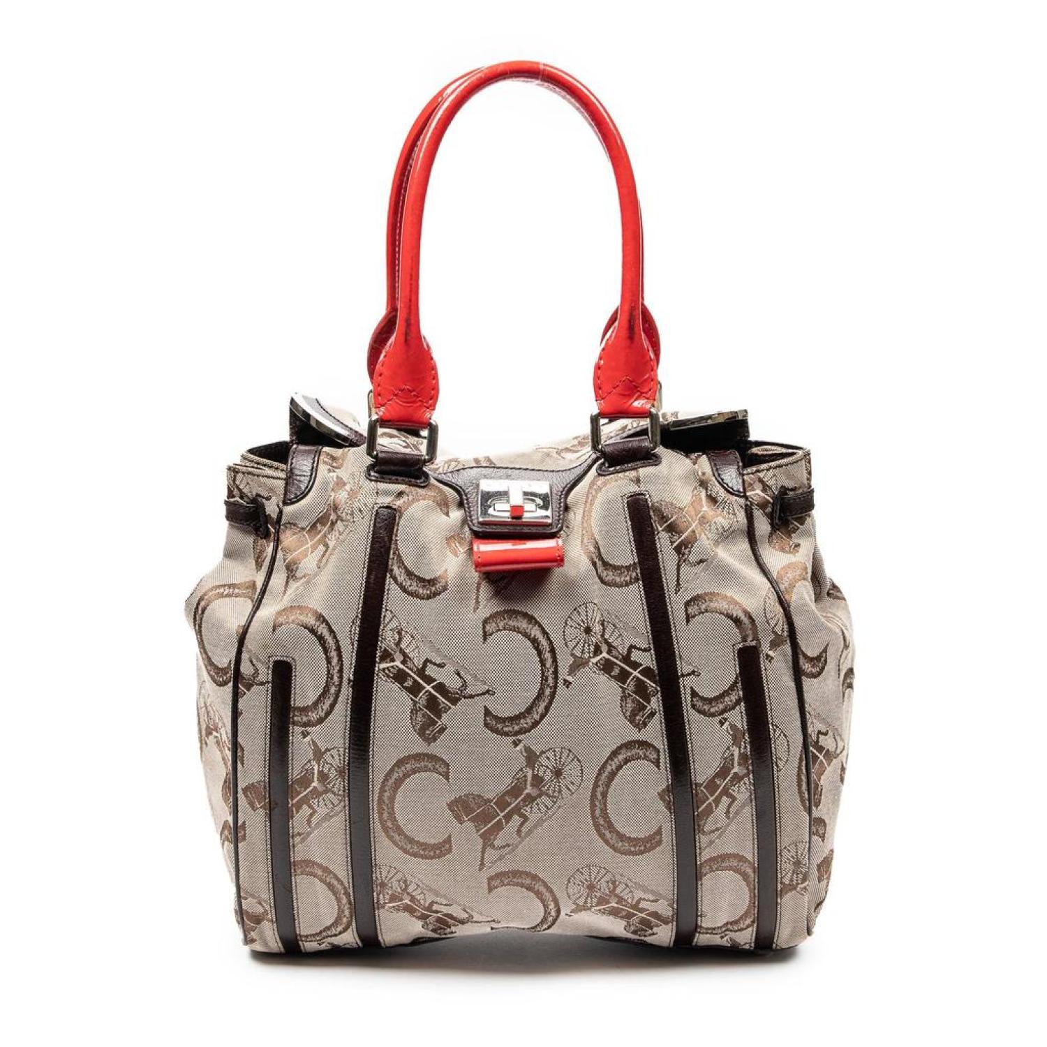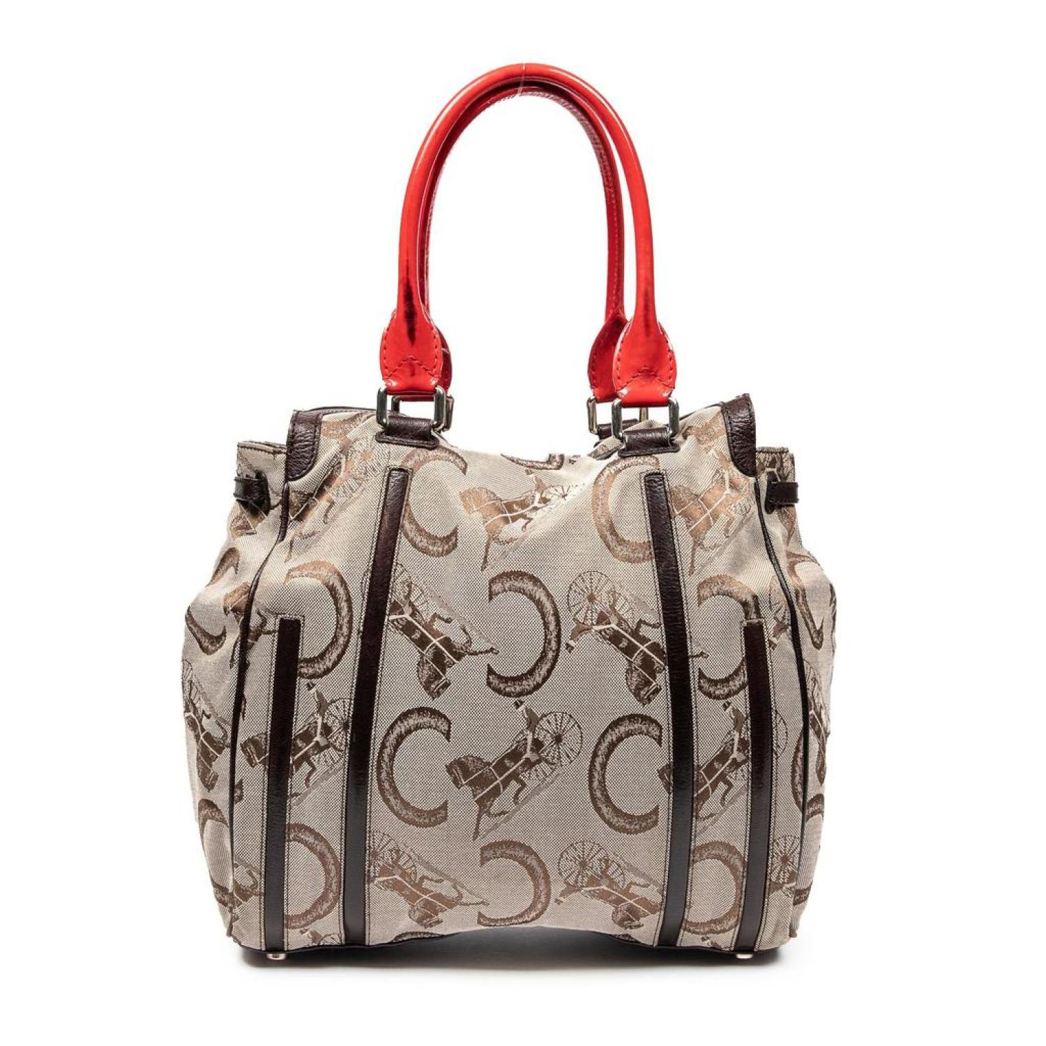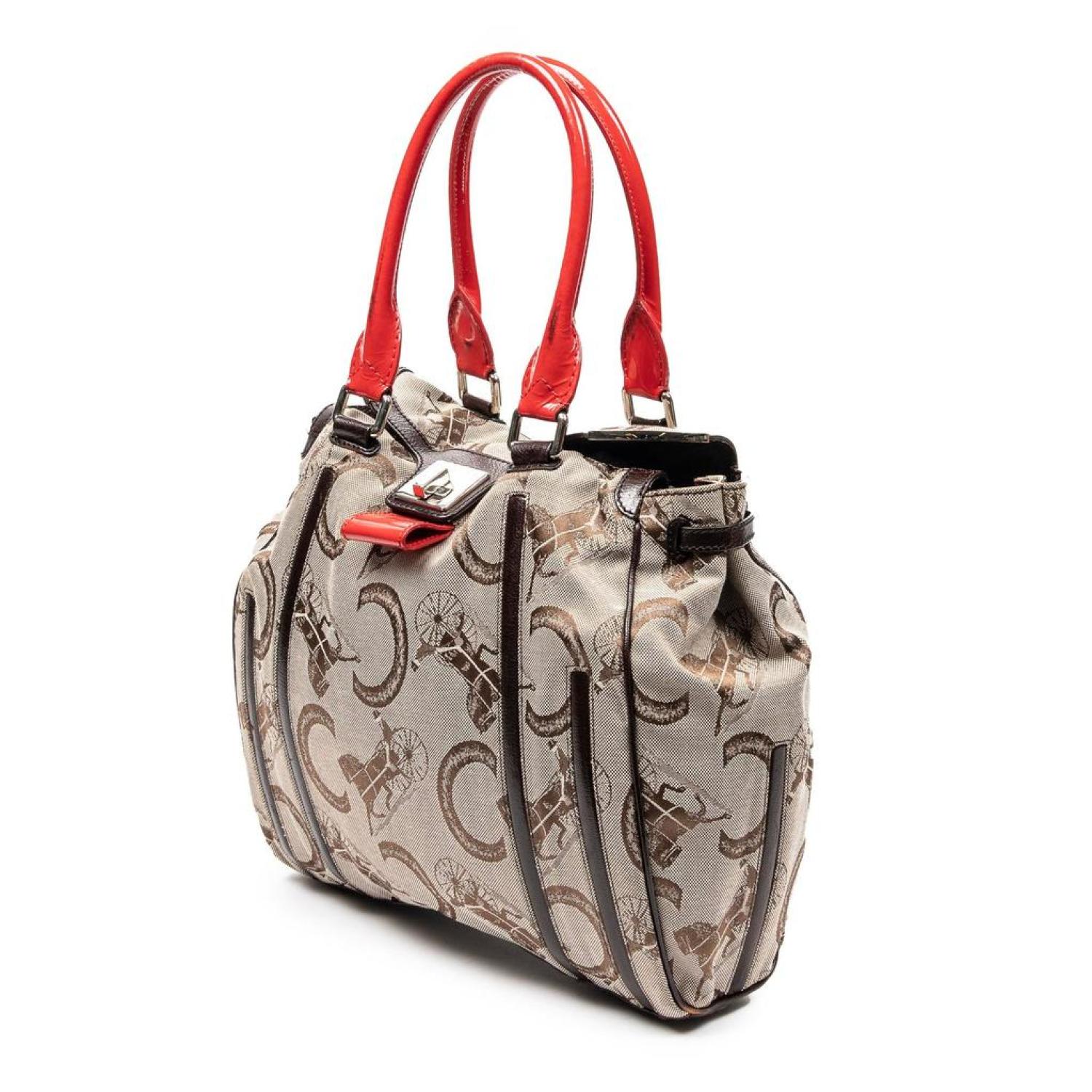Celine Shoulder Bag in Beige/Brown/Red C Carriage Monogram Canvas and Silver hardware. Dimensions - 31*29*9cm. Serial number - C-PA-0018. Inclusions - dustbag. Pre-Owned