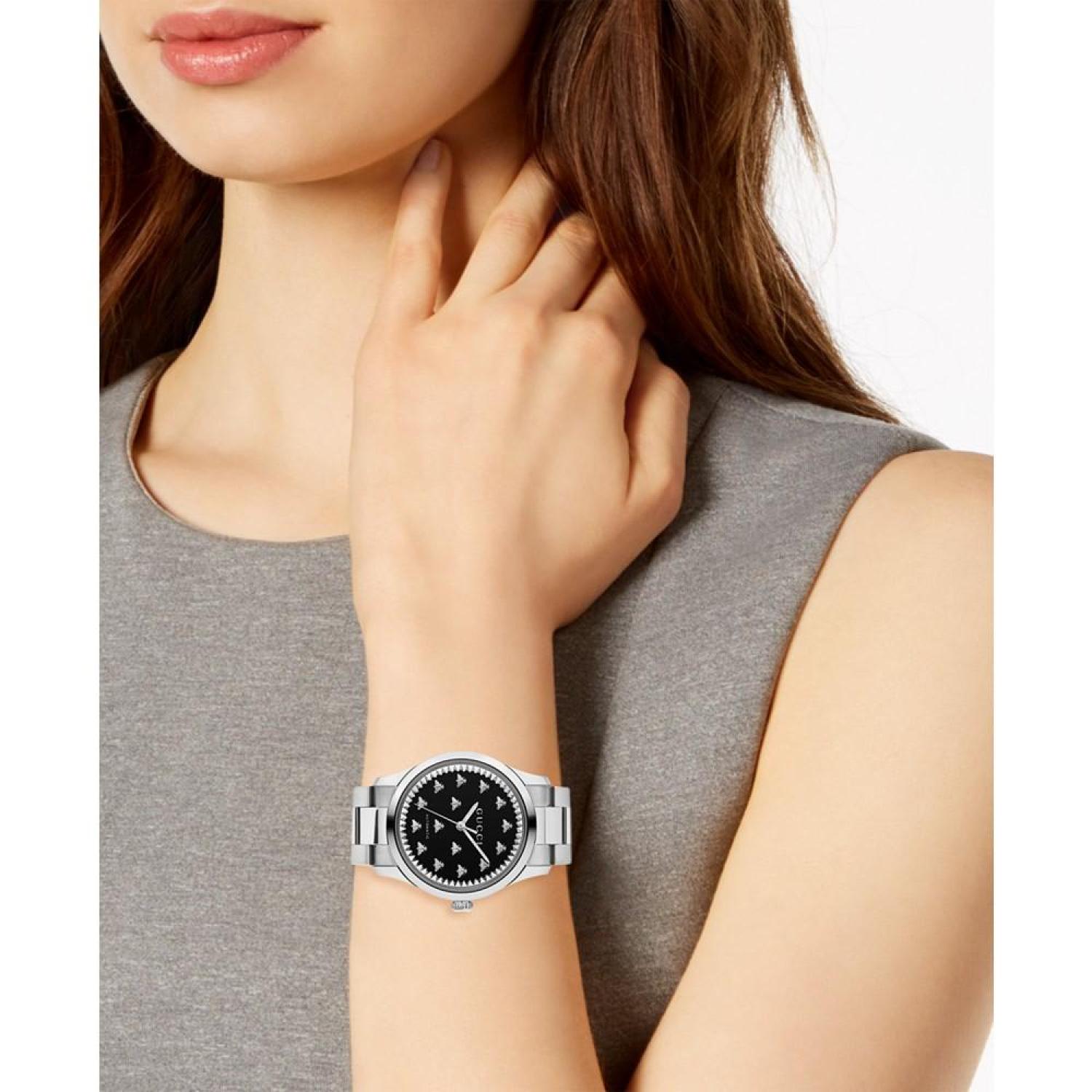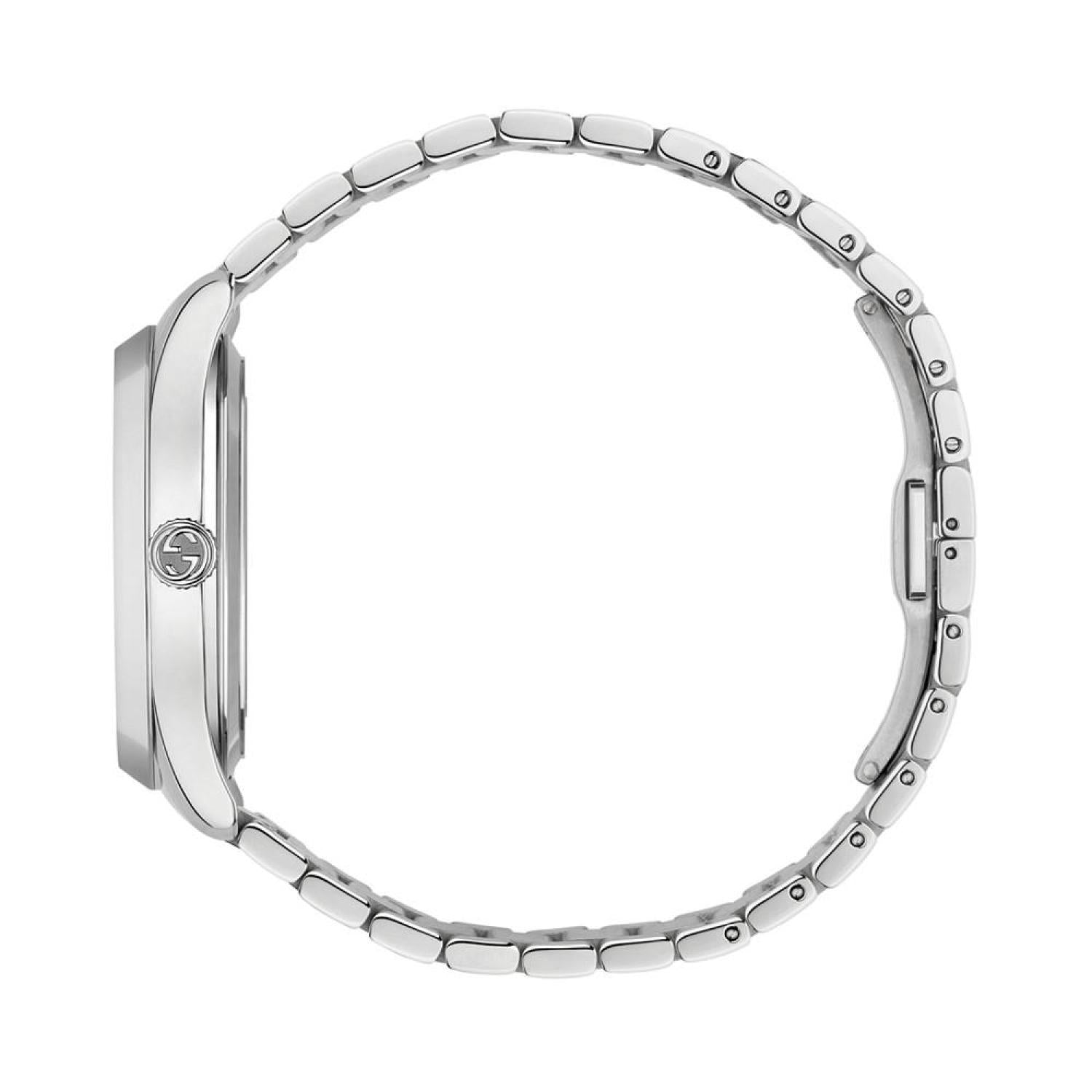 Swiss-made automatic movement is encased in a classically styled steel watch, creating this G-Timeless design from Gucci. Style #YA1264130 Movement: Swiss automatic; runs by hand or wrist movement; never needs batteries & requires little care Case: round; 38mm Strap: stainless steel bracelet with deployment buckle Dial: black onyx Water resistance: to 50 meters Warranty: 2-year limited Get FREE watch sizing at Macy's storesâjust show us your Macy's proof-of-purchase. Don't have your proof-of-purchase? Then pay just $20. Photo may have been enlarged and/or enhanced. Sign up for Macy's WorryNoMore® Jewelry & Watch Protection program within 30 days of your purchase. Call Customer Service at: 1-800-BUY-MACY (1-800-289-6229), use Macy's Chat function or visit any Macy's store with your dated online receipt.