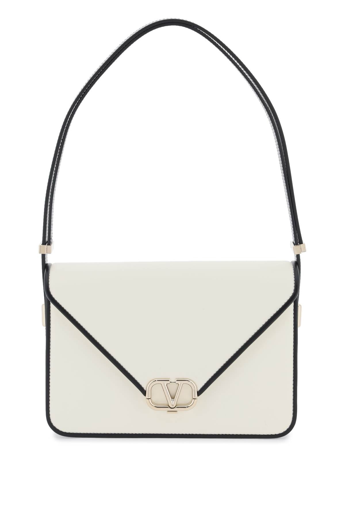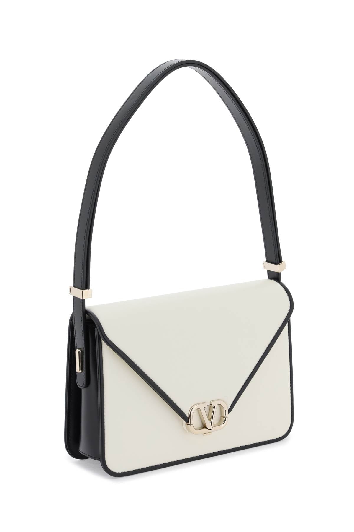 Valentino Garavani Letter Bag shoulder bag crafted in two-tone smooth leather with Signature VLogo closure. Nappa leather-lined interior with one card slot, adjustable handle. Platinum-finished metalware. Bag Length = 24 cm, Bag Height = 15 cm, Handle Height = 24 cm,