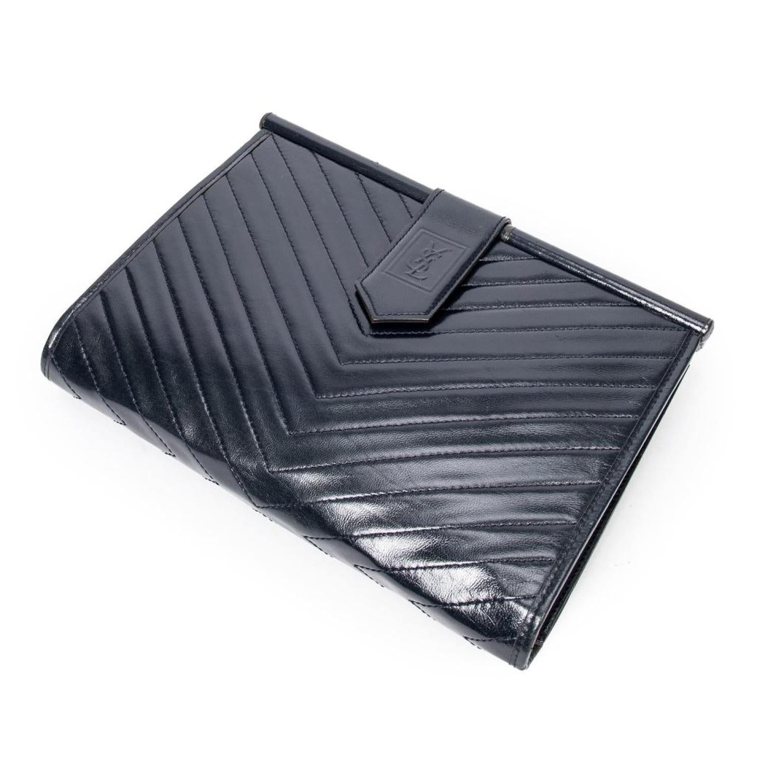 • Yves Saint Laurent Handbag in Navy Quilted Chevron Leather and Gold hardware. Dimensions - 28*20*4cm. Serial number - None. Inclusions - None.
