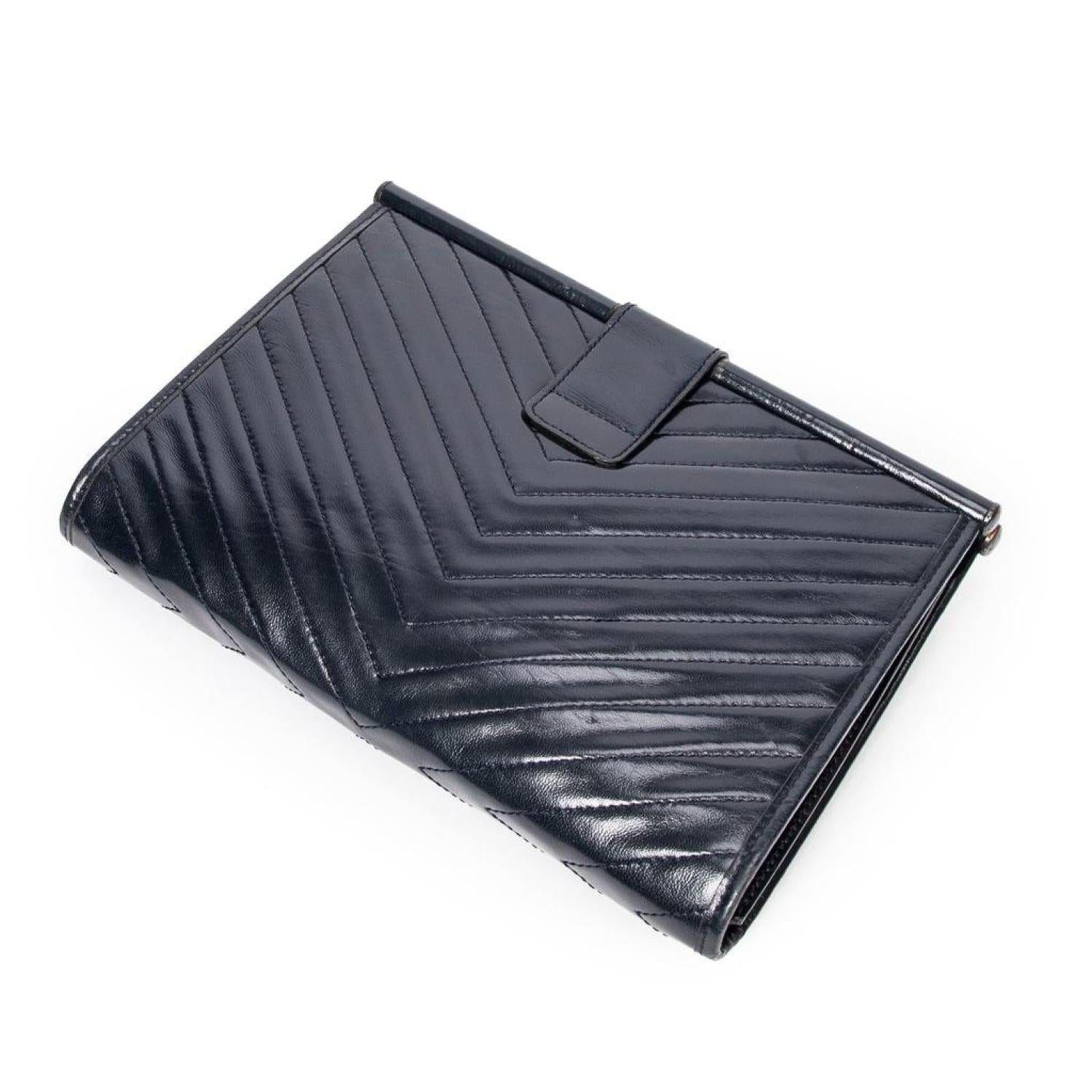 Yves Saint Laurent Handbag in Navy Quilted Chevron Leather and Gold hardware. Dimensions - 28*20*4cm. Serial number - None. Inclusions - None.
