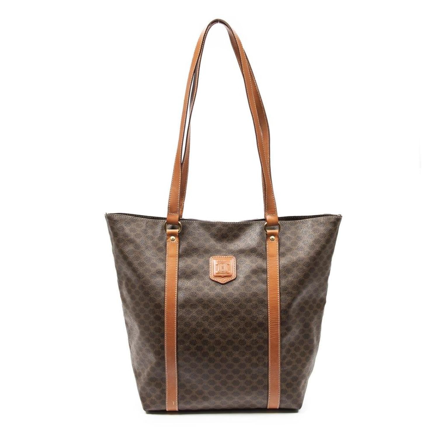 Celine Shoulder Bag in Brown Macadam Coated Canvas and Gold hardware. Dimensions - 27*32*12cm. Serial number - MC97/2. Inclusions - None. Pre-Owned