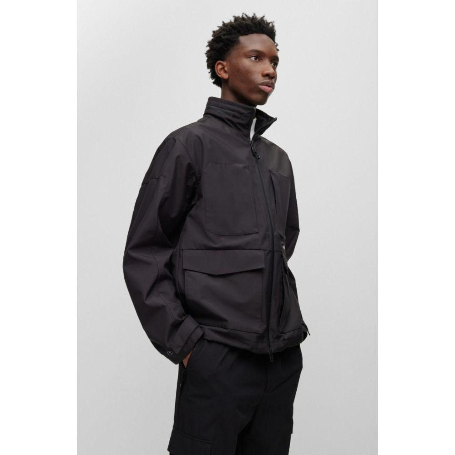 A water-repellent jacket by BOSS Menswear, designed in ripstop fabric with a decorative reflective print, logo badge and packable hood.