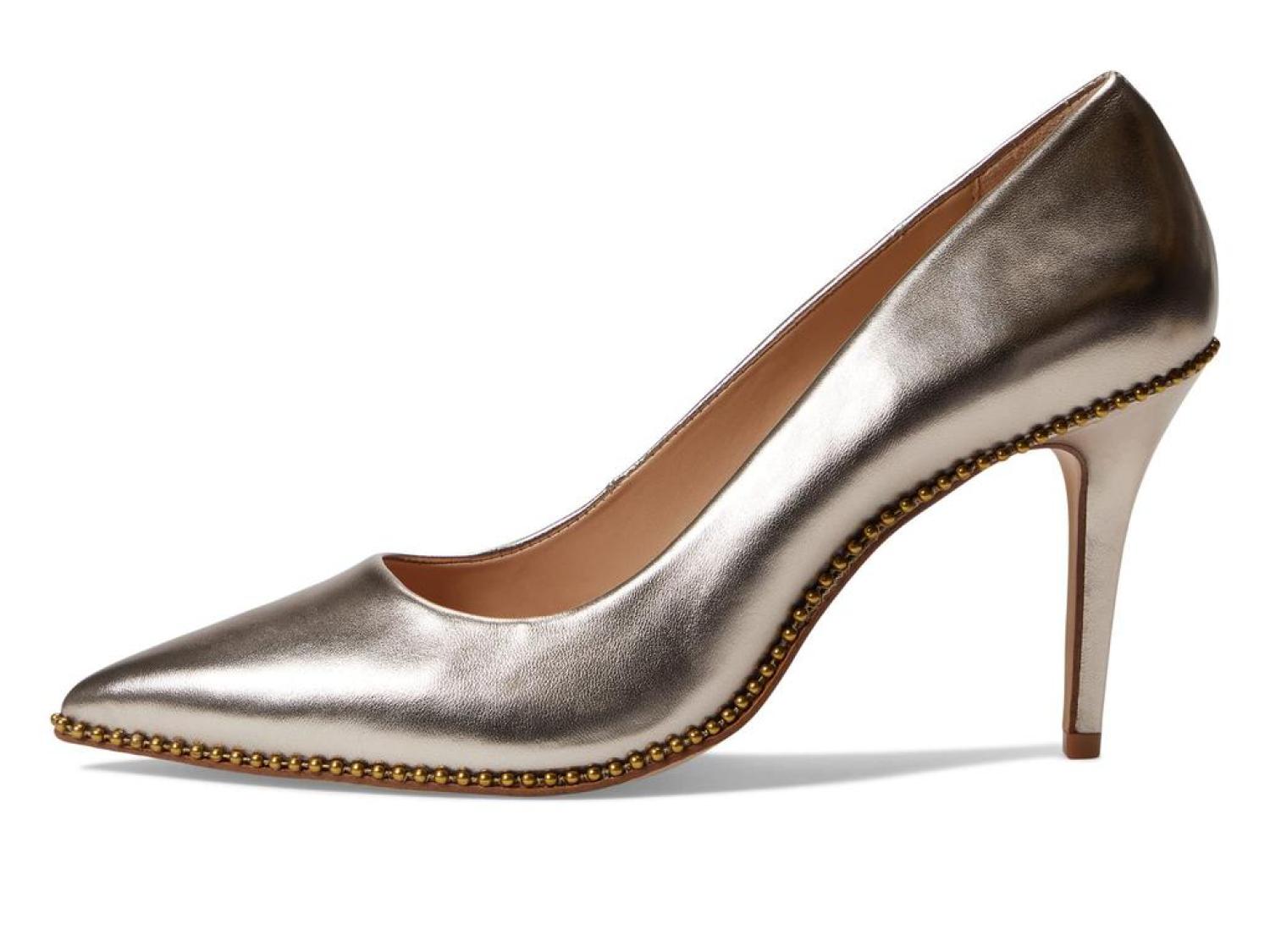 Shine bright like a diamond at any event wearing the chic COACH® Waverly Metallic Pump heels.