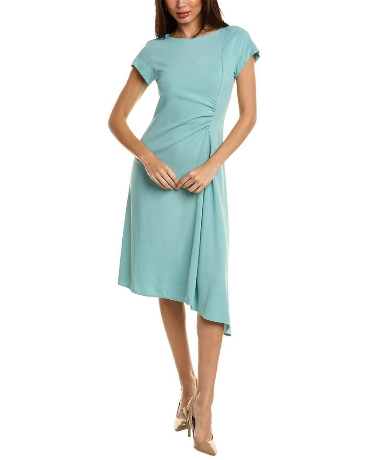 Introducing the Weekend Max Mara Aosta Dress, a timeless piece of sophistication and casual elegance. This stunning dress in a beautiful shade of blue features a ruched waist, adding a touch of femininity to your ensemble.With a length of approximately 41 inches from shoulder to hem, this dress flatters every figure. The model, standing tall at 5'10, effortlessly showcases the style in a size 2. Please note that measurements may vary slightly by size.Designed with convenience in mind, this dress boasts a center back zipper for easy and quick dressing. Crafted from a luxurious blend of 56% acetate, 41% viscose, and 3% elastane, the fabric drapes beautifully and offers a comfortable fit.To maintain the pristine condition, this dress requires dry cleaning only. The imported quality of the dress ensures its superior craftsmanship and attention to detail.Step up your fashion game with Max Mara's exceptional design aesthetic, ensuring you exude confidence and sophistication wherever you go. Elevate your wardrobe with the Weekend Max Mara Aosta Dress and be ready to make a lasting impression.