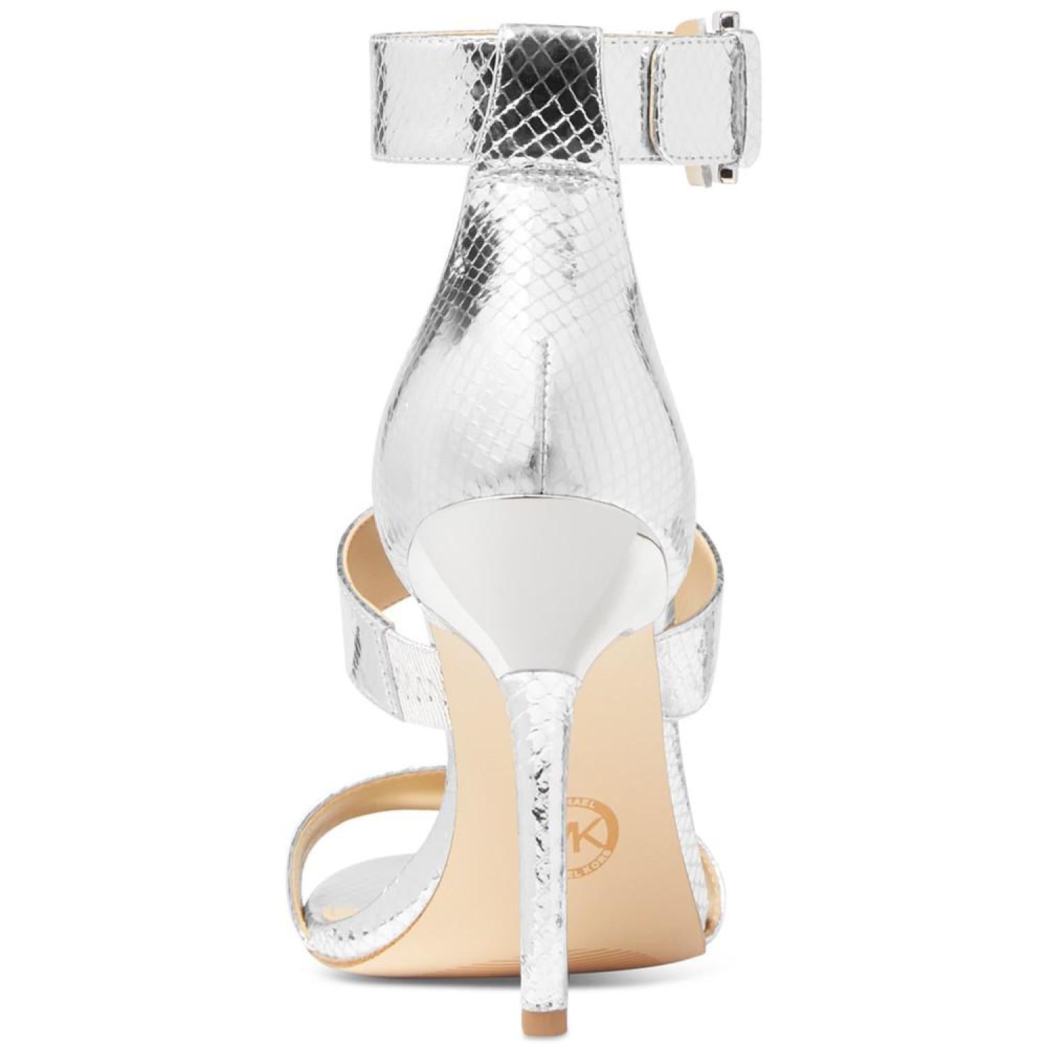 A trio of sturdy straps top slender galvanized heels for a gorgeous lift in the Amal dress sandals from MICHAEL Michael Kors.