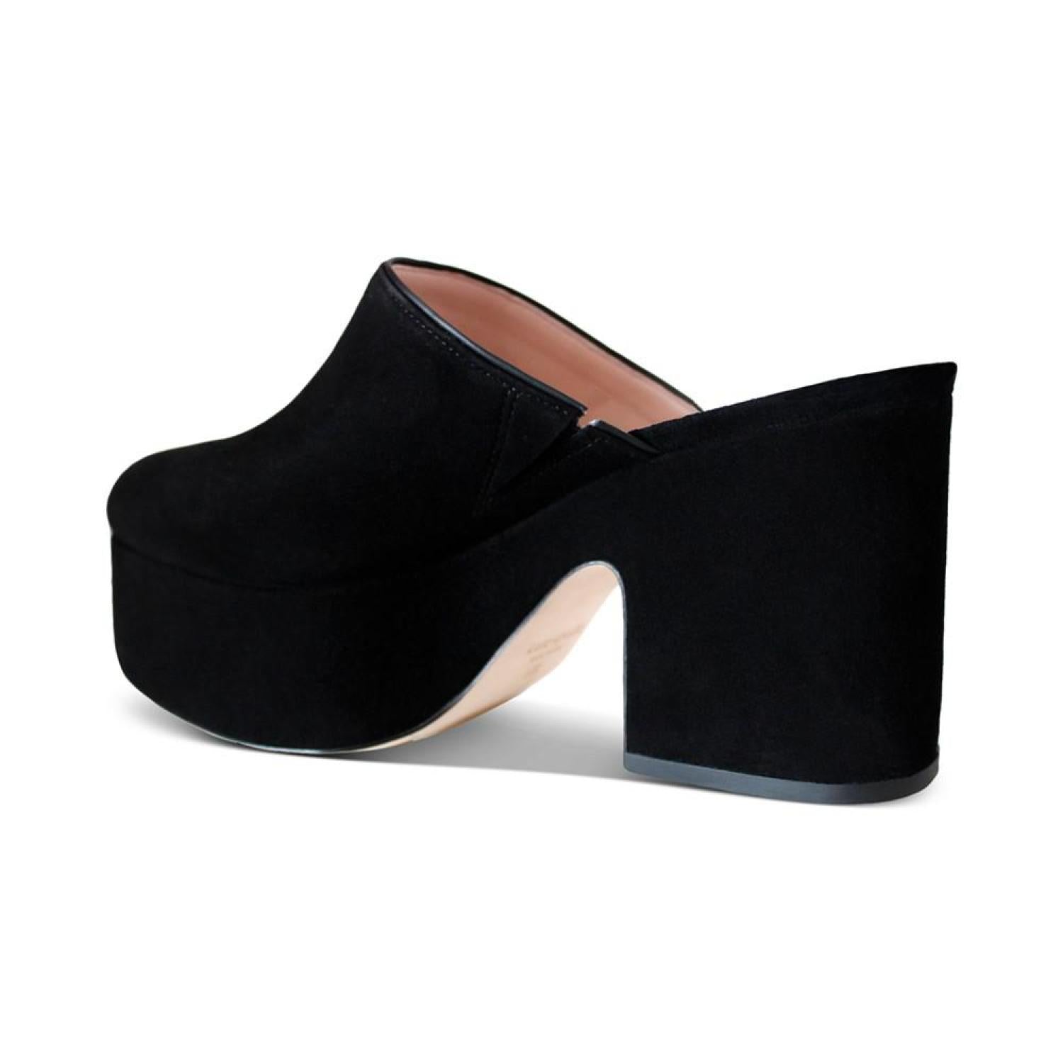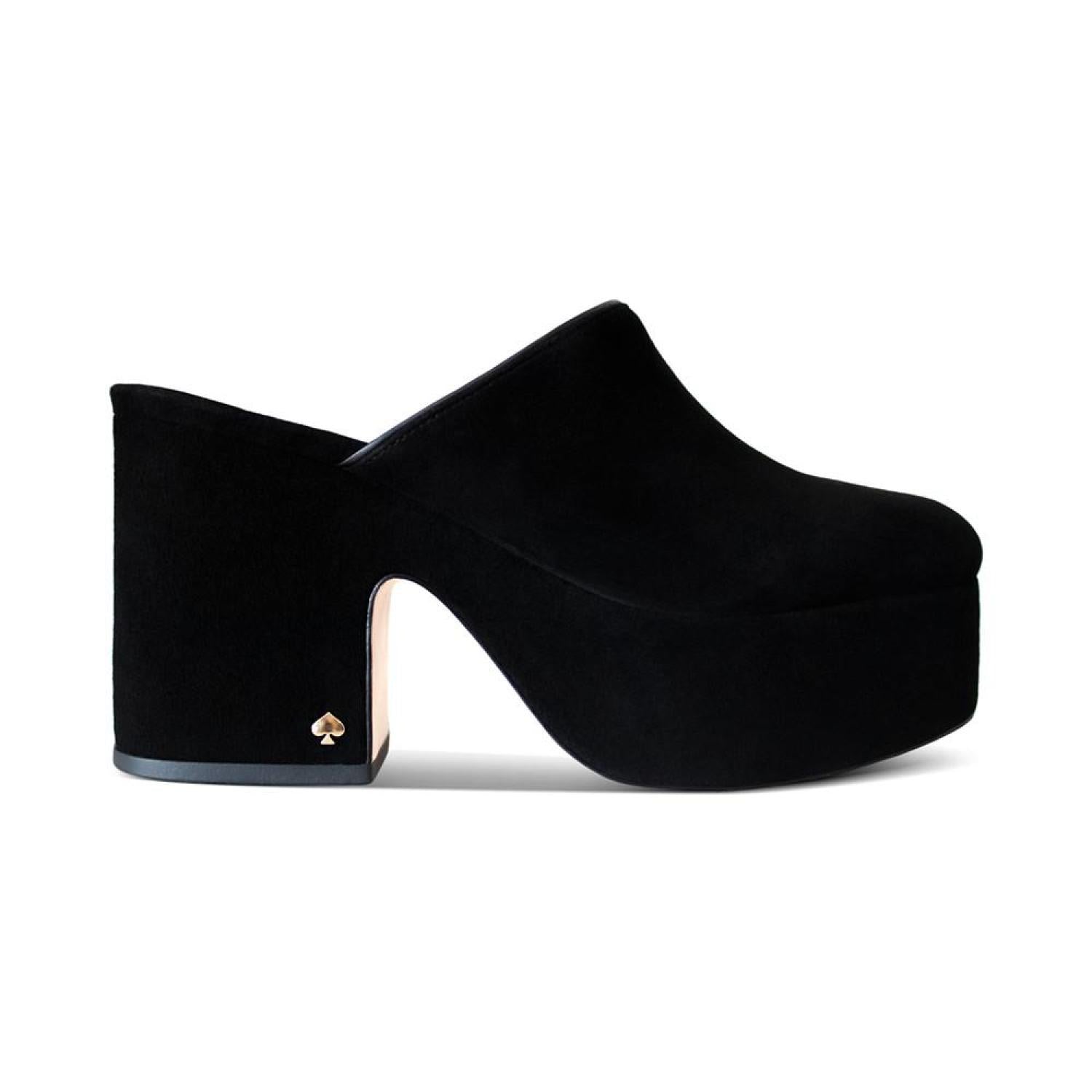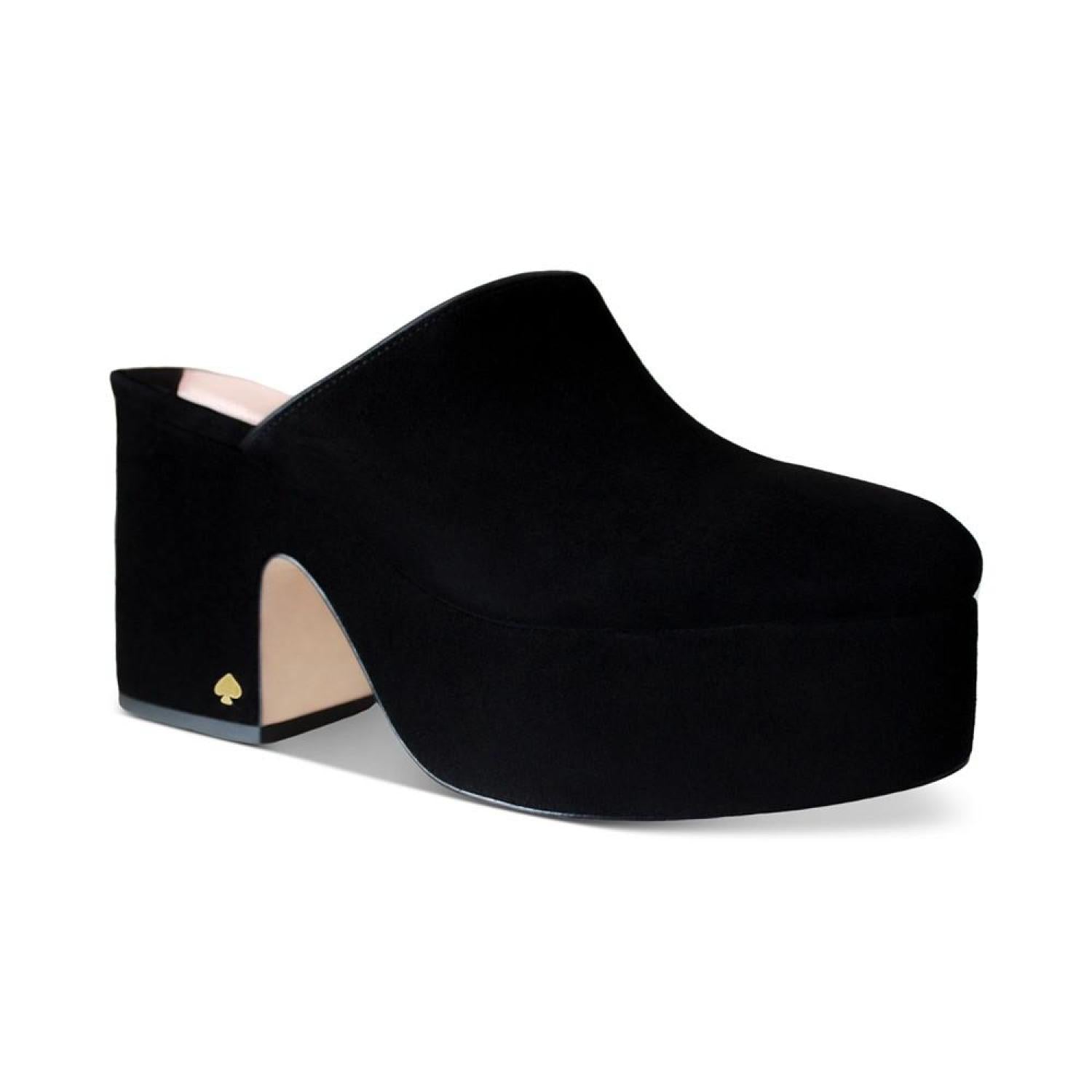 Lofted on retro-inspired platforms, the Amelia mules from Kate Spade New York take dressy looks through the roof with fashion-forward style. 3-1/2" block heel; 1-3/4" platform Round-toe slip-on platform mules Suede or leather uppers; leather lining; leather sole Imported