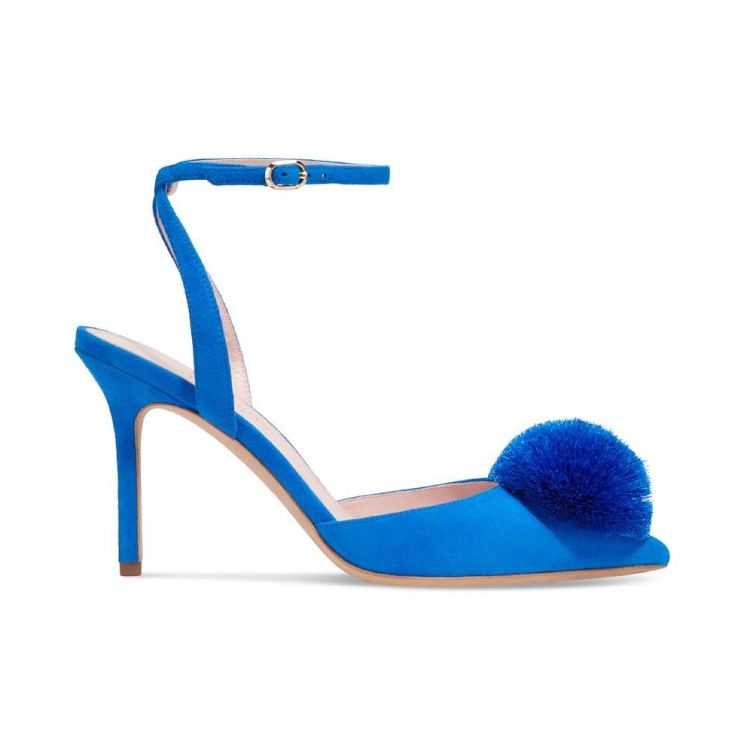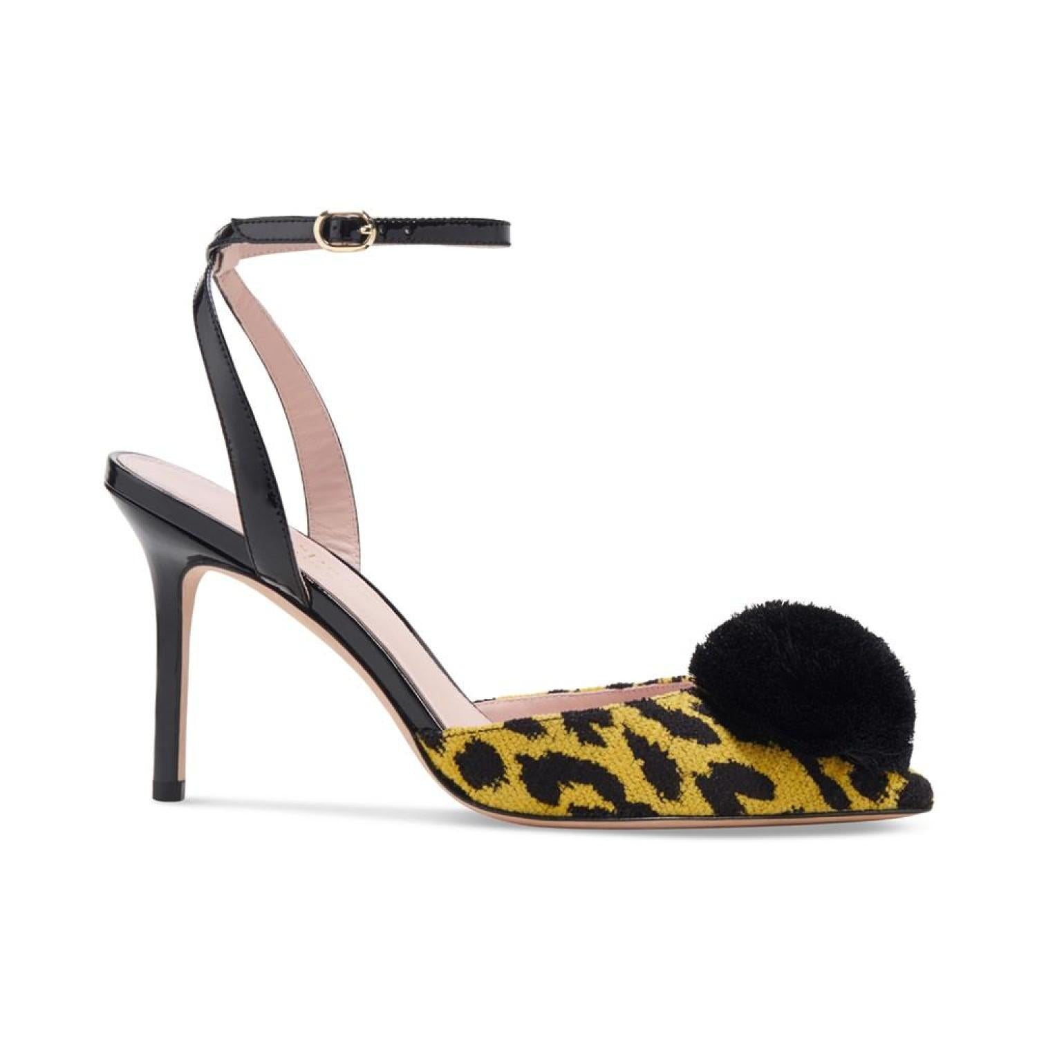 • Topping pointed toes with fluffy pom poms, the Amour dress sandals from Kate Spade New York put a fun twist to a dressy stiletto lift.