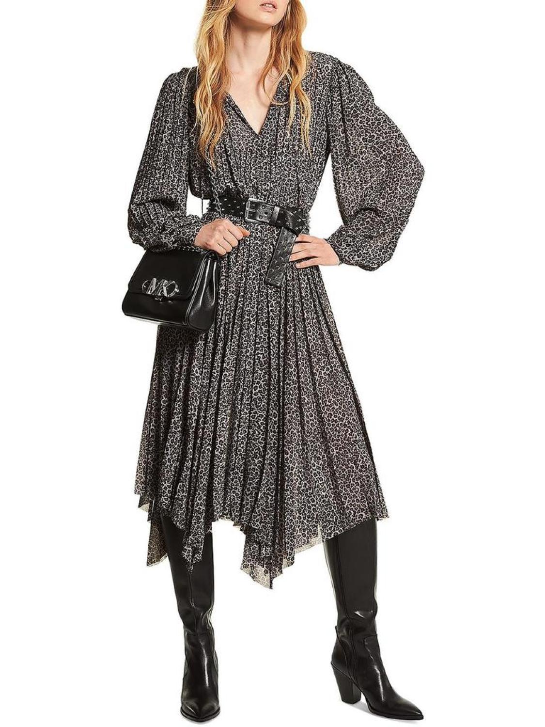Manufacturer - MICHAEL Michael Kors Retail - $295.00 Style Type - Midi Dress Collection - MICHAEL Michael Kors Sleeve Length - Closure - Pullover Material - 100% Polyester Fabric Type - Polyester Specialty - Handkerchief Hem P2786619The item for sale is pictured above and described on this page. The photo may include additional clothing or props that are for display purpose only and will not be included. Please be sure to read the description carefully.