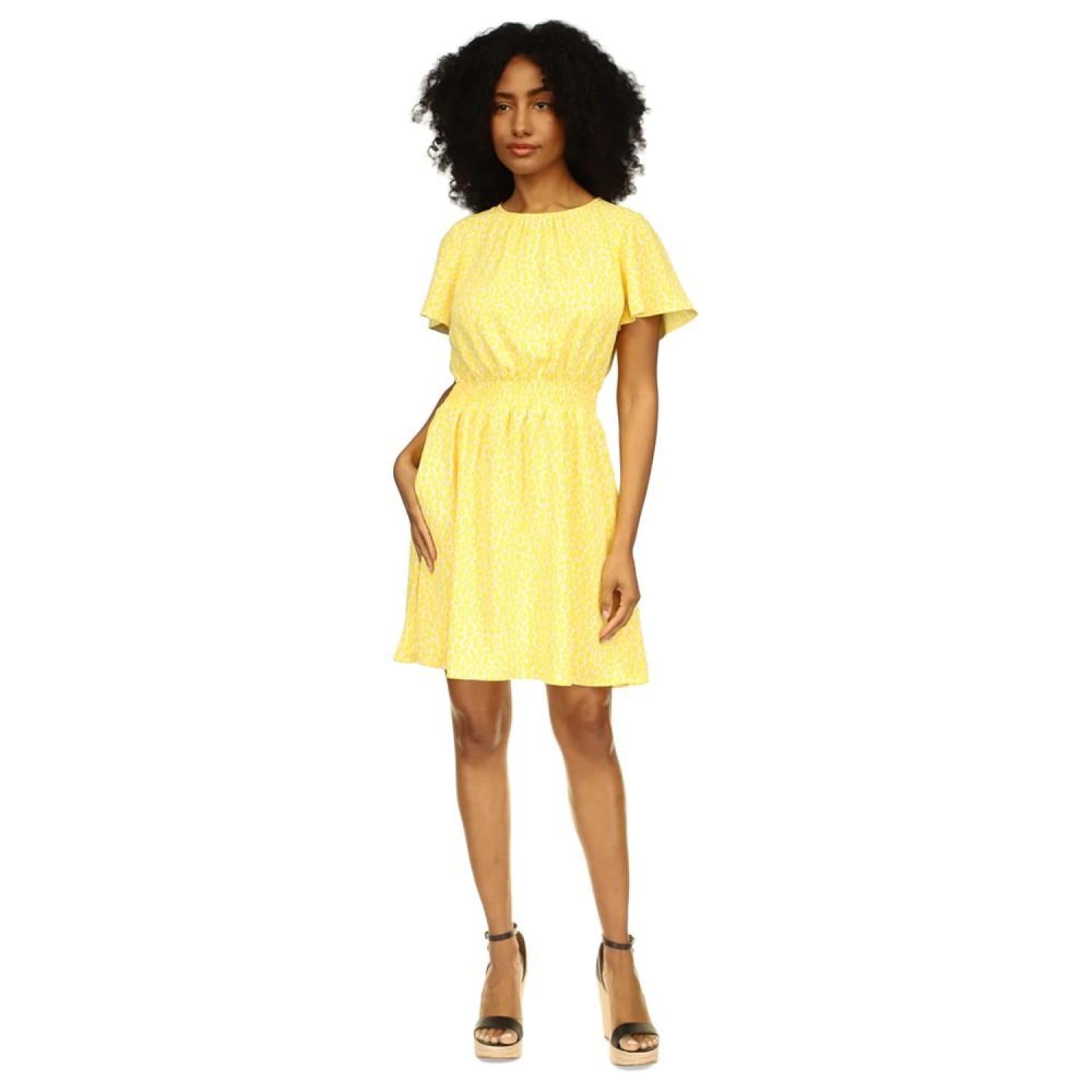 • Step out in style with this women's animal print short dress from MICHAEL Michael Kors, featuring a smocked waistband that flatters your figure while adding a touch of the exotic to your wardrobe.