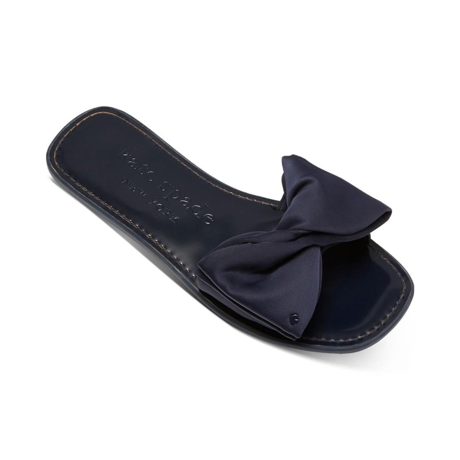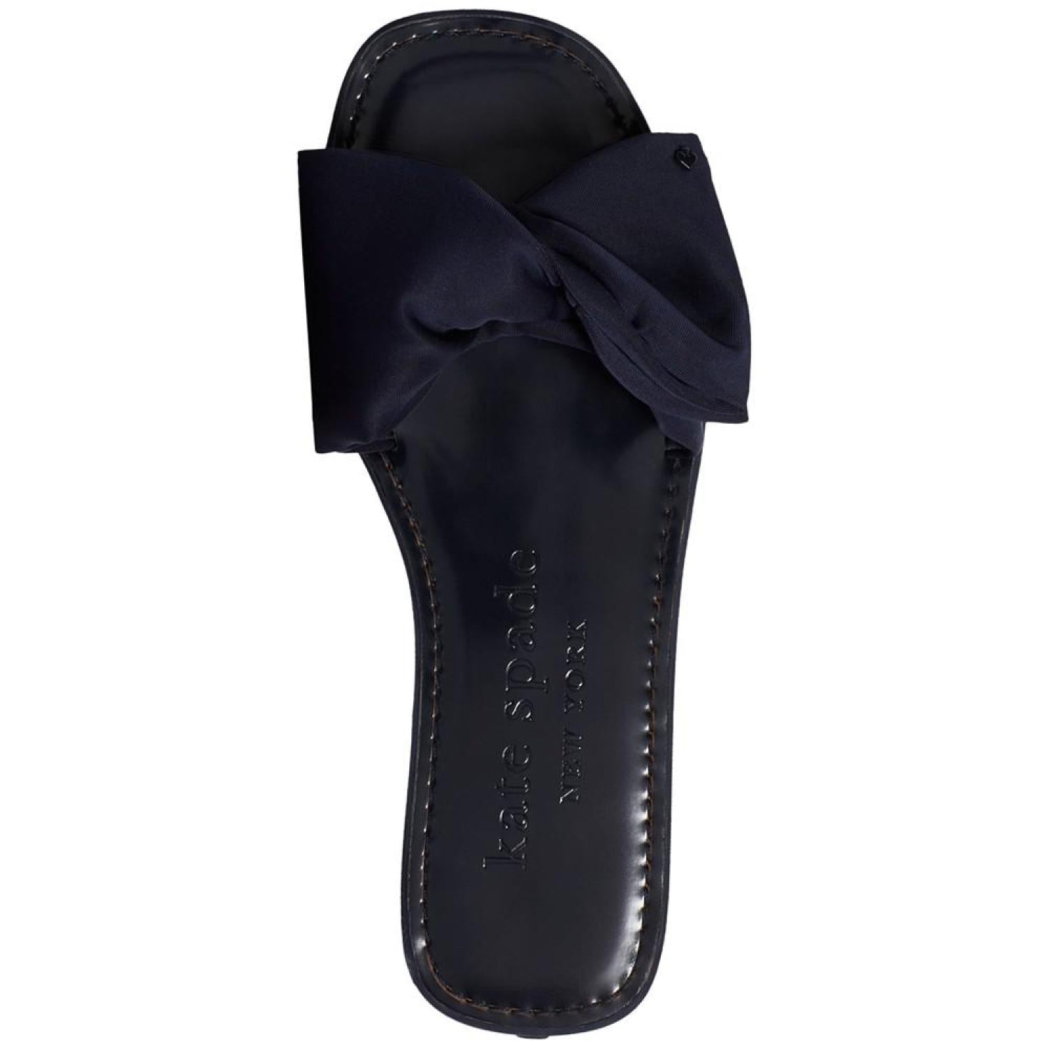 A twisted bow adds feminine dimension to the simple slide silhouette of Kate Spade New York's Bikini sandals.