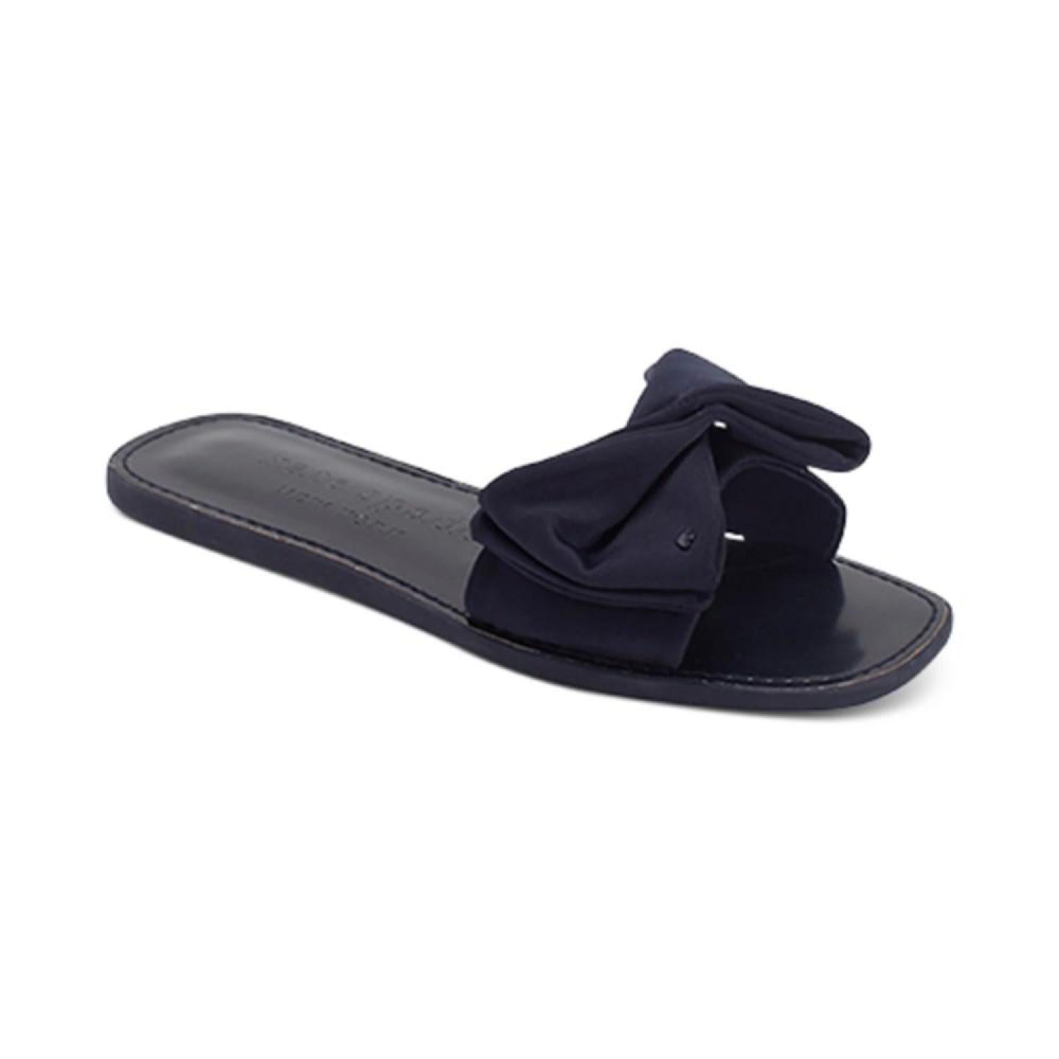 • A twisted bow adds feminine dimension to the simple slide silhouette of Kate Spade New York's Bikini sandals.