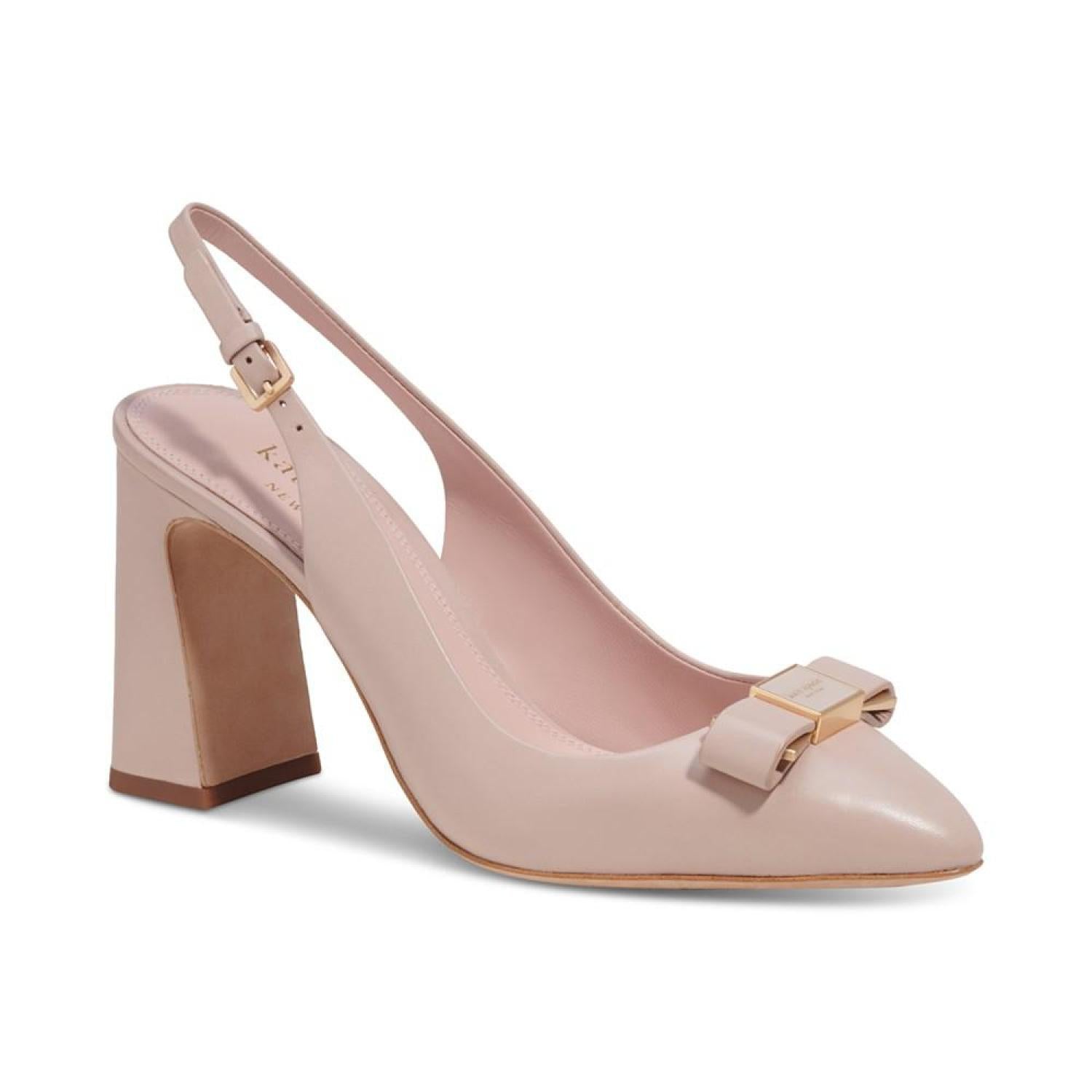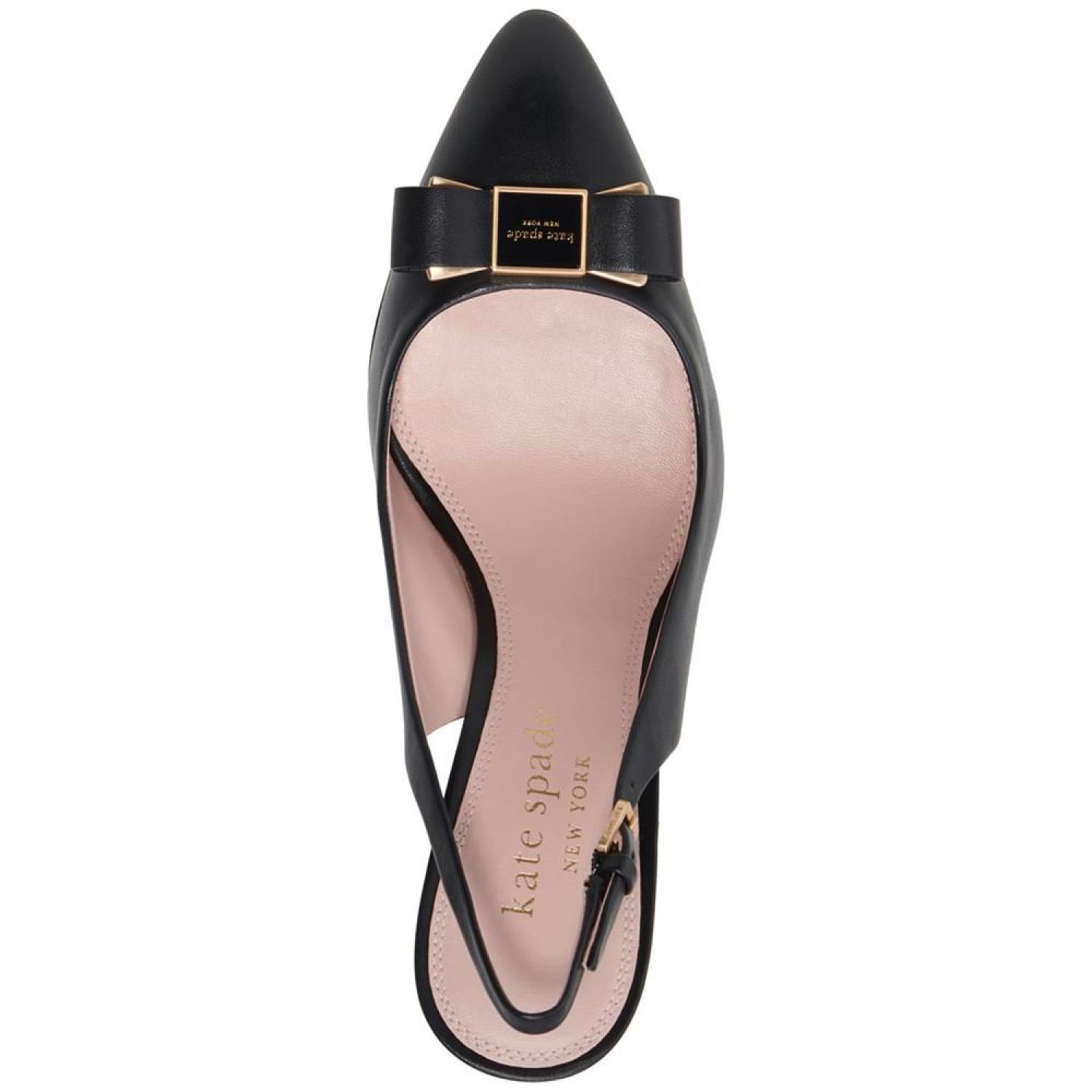 Tidy bows accent pointed toes in the sophisticated slingback silhouette of the Kate Spade New York Bowdie pumps. 2-3/4" heel Pointed-toe slip-on slingback pumps with adjustable buckle closure Bow detail at vamp Leather upper; leather lining; leather sole Imported