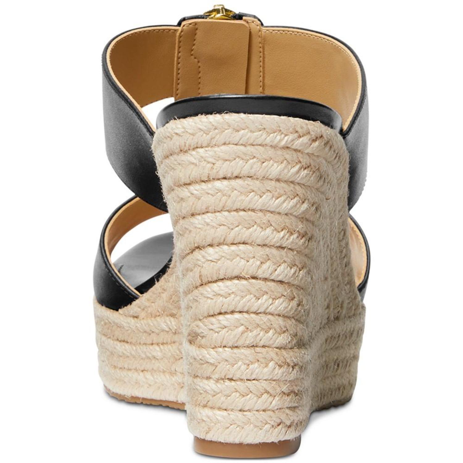 • Exposed gold-tone zips add bold attitude to sky-high platform heels in the stylish Bradley espadrilles from MICHAEL Michael Kors.