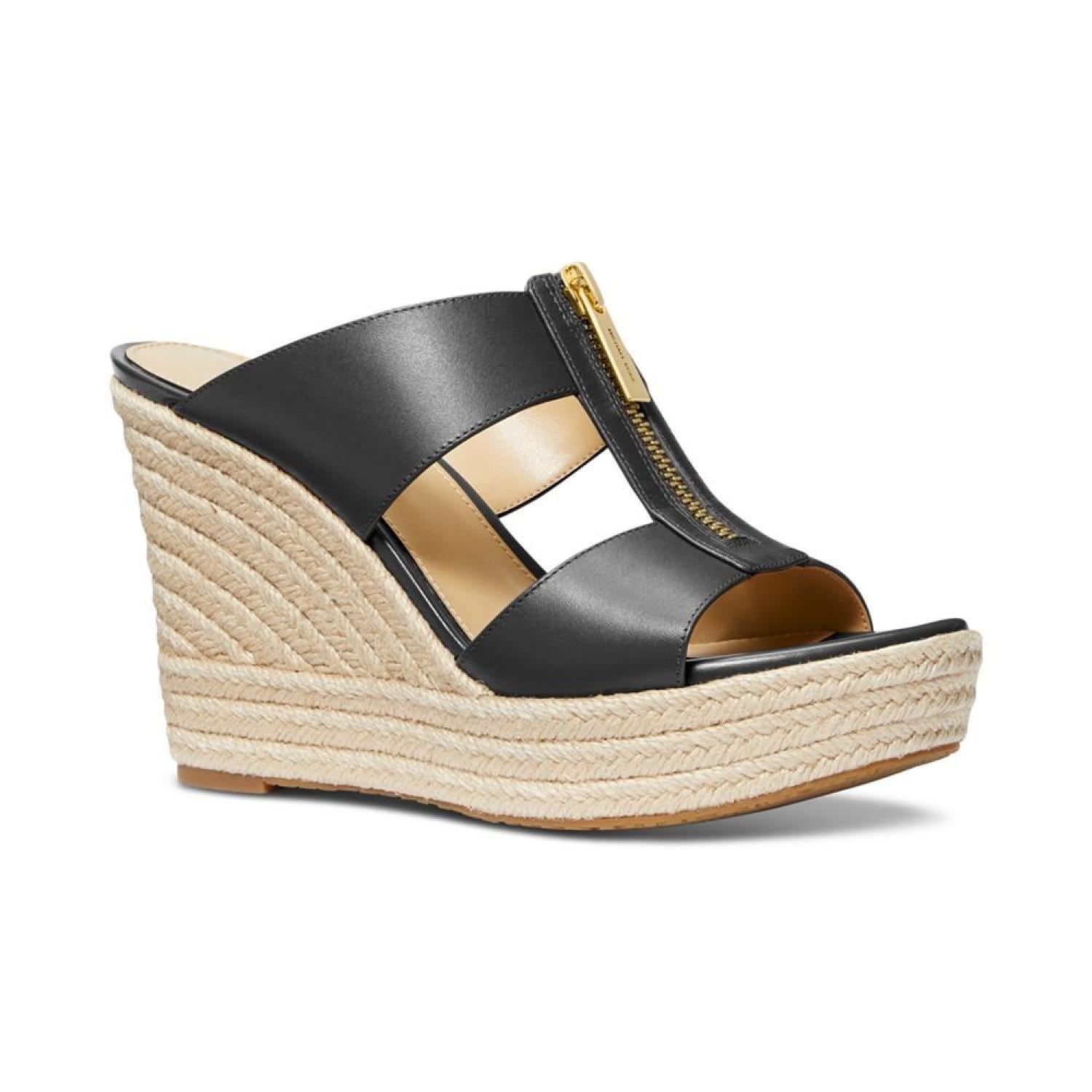 Exposed gold-tone zips add bold attitude to sky-high platform heels in the stylish Bradley espadrilles from MICHAEL Michael Kors.