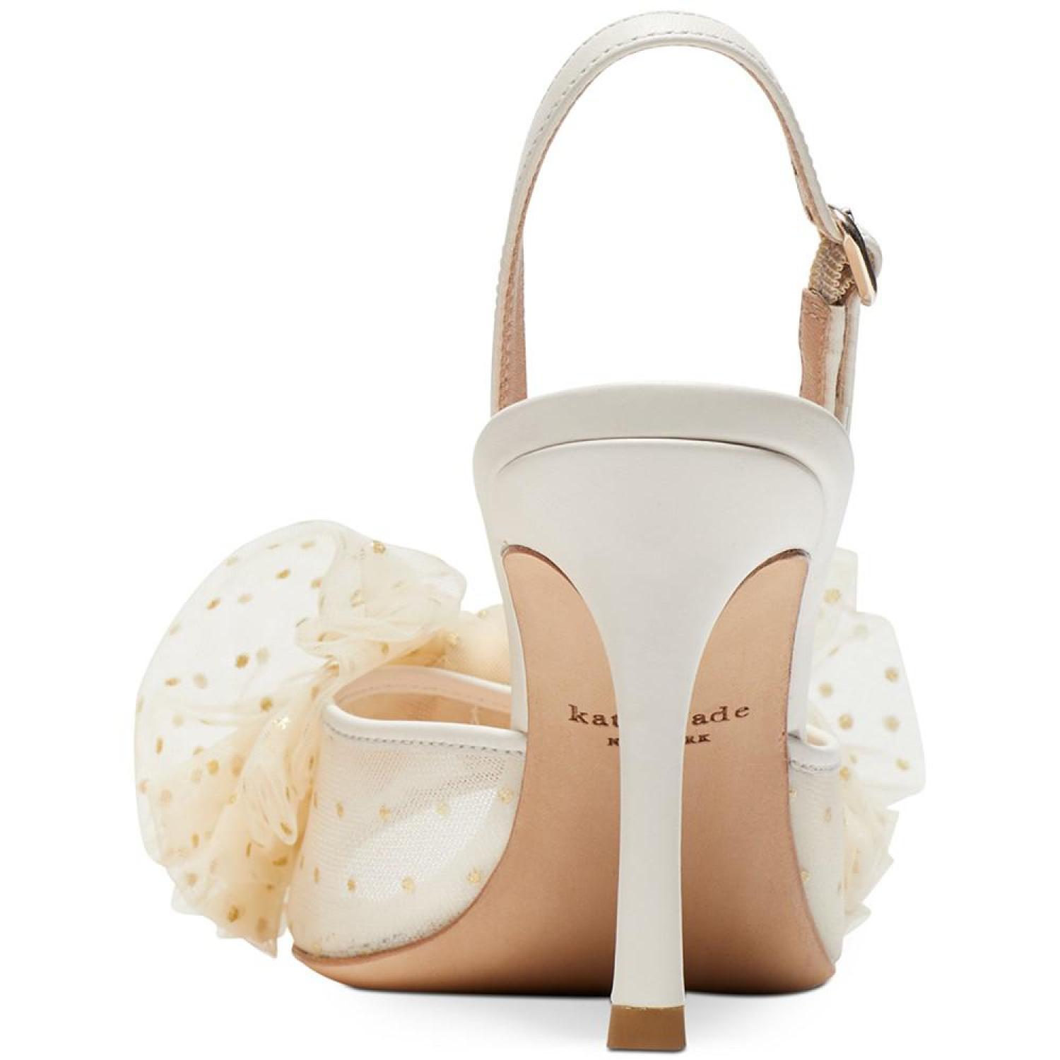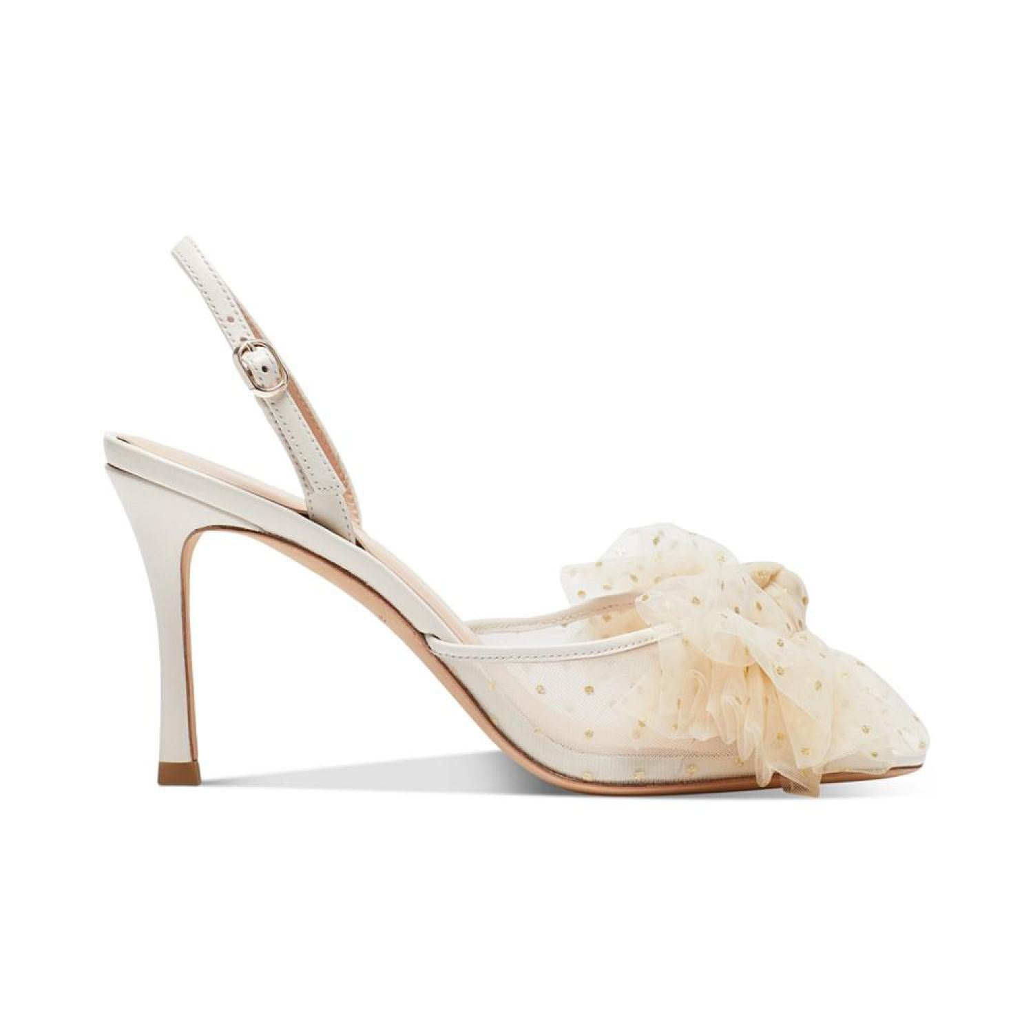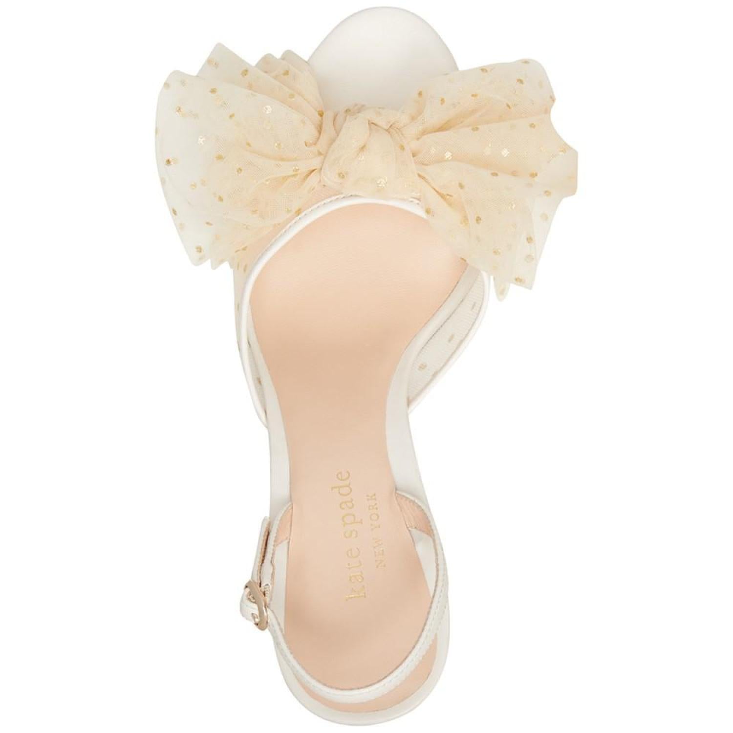 • A flouncy tulle bow and slender straps bring femininity to every step in the pretty Bridal Sparkle dress sandals from Kate Spade New York.