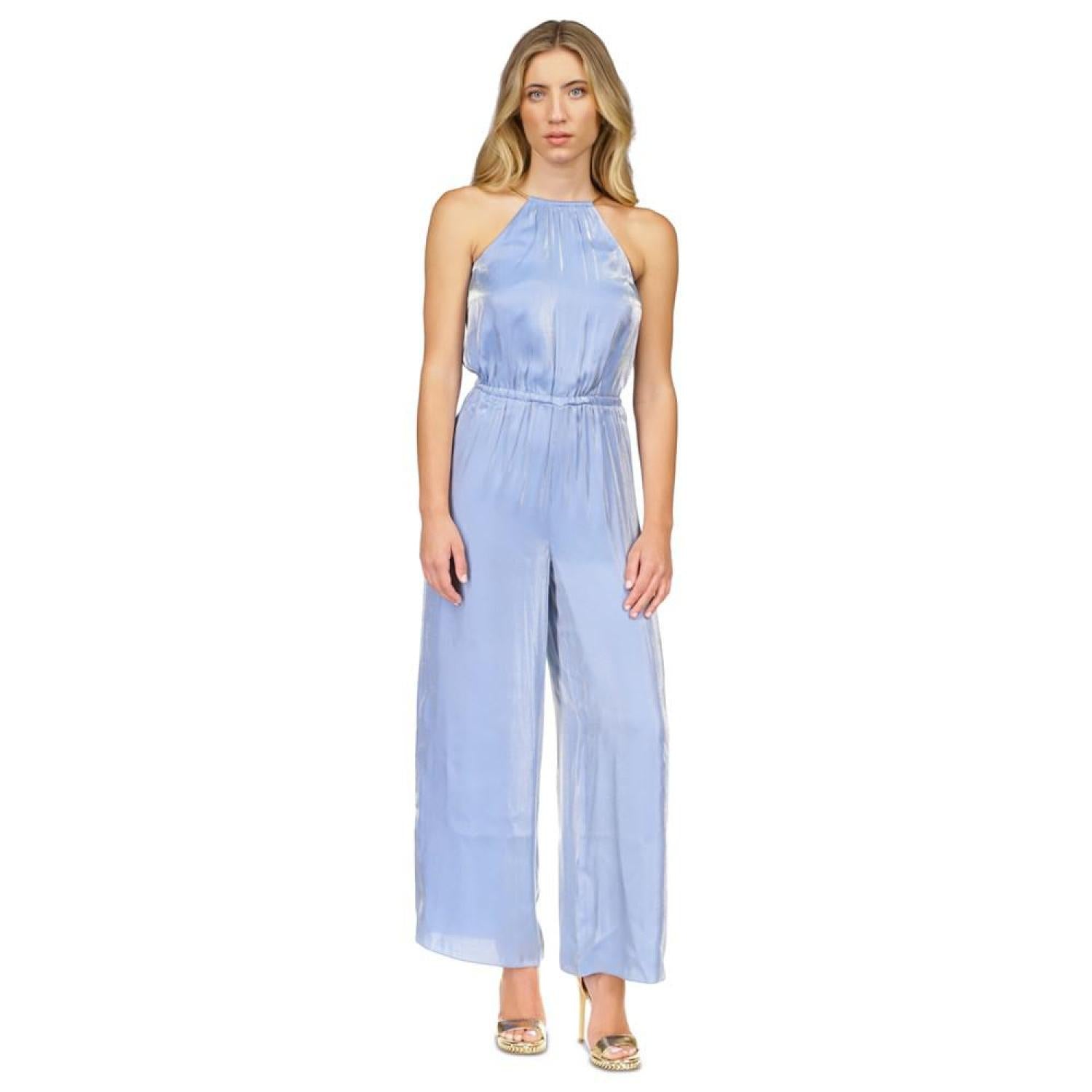 • Effortless chic. This MICHAEL Michael Kors jumpsuit highlights a cool halter silhouette with a stylish chain for a stunning "no necklace needed" look.