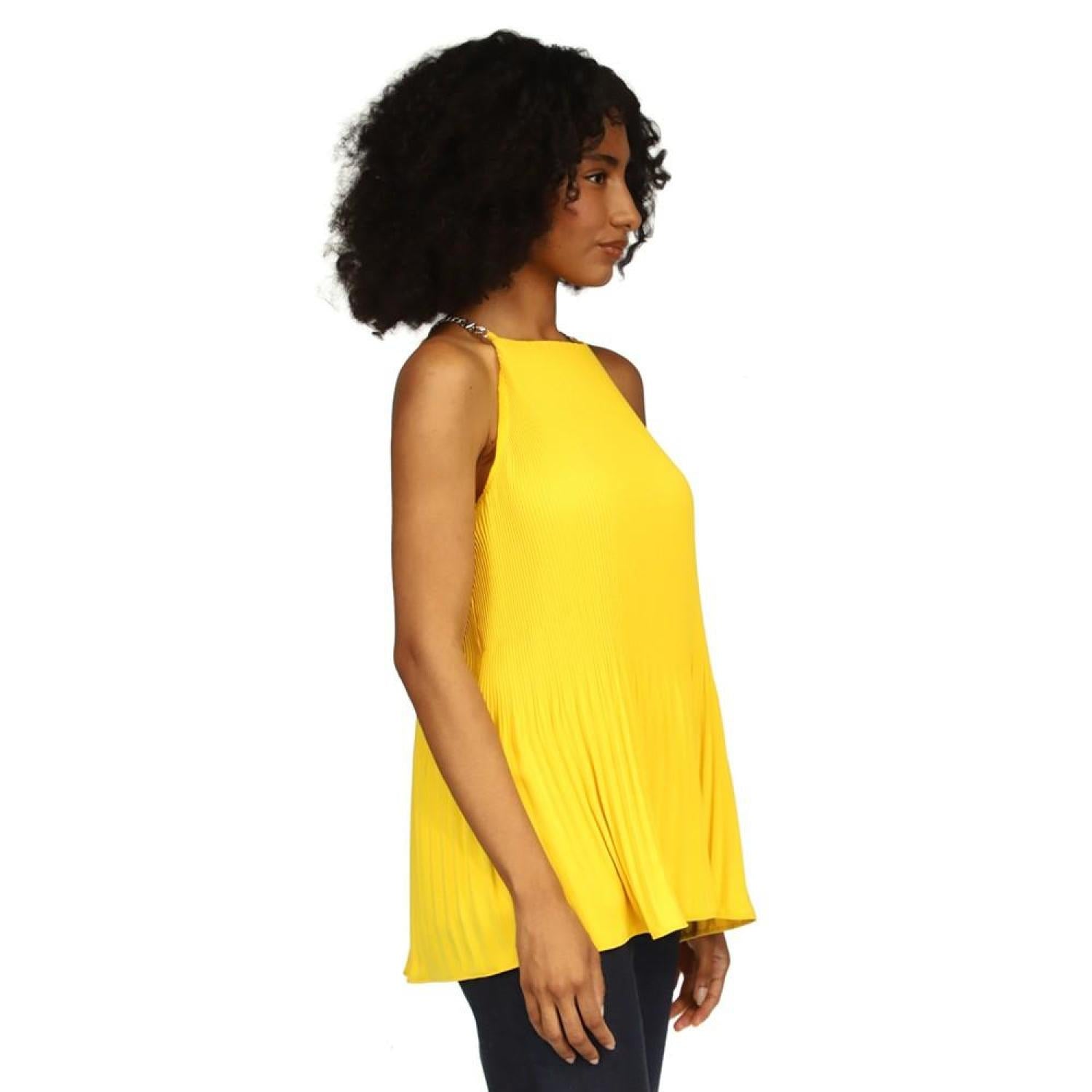Add a touch of glamour to your wardrobe with this women's pleated top featuring chic chain straps from MICHAEL Michael Kors. It's perfect for elevating any outfit with a hint of metallic flair and sophisticated texture.