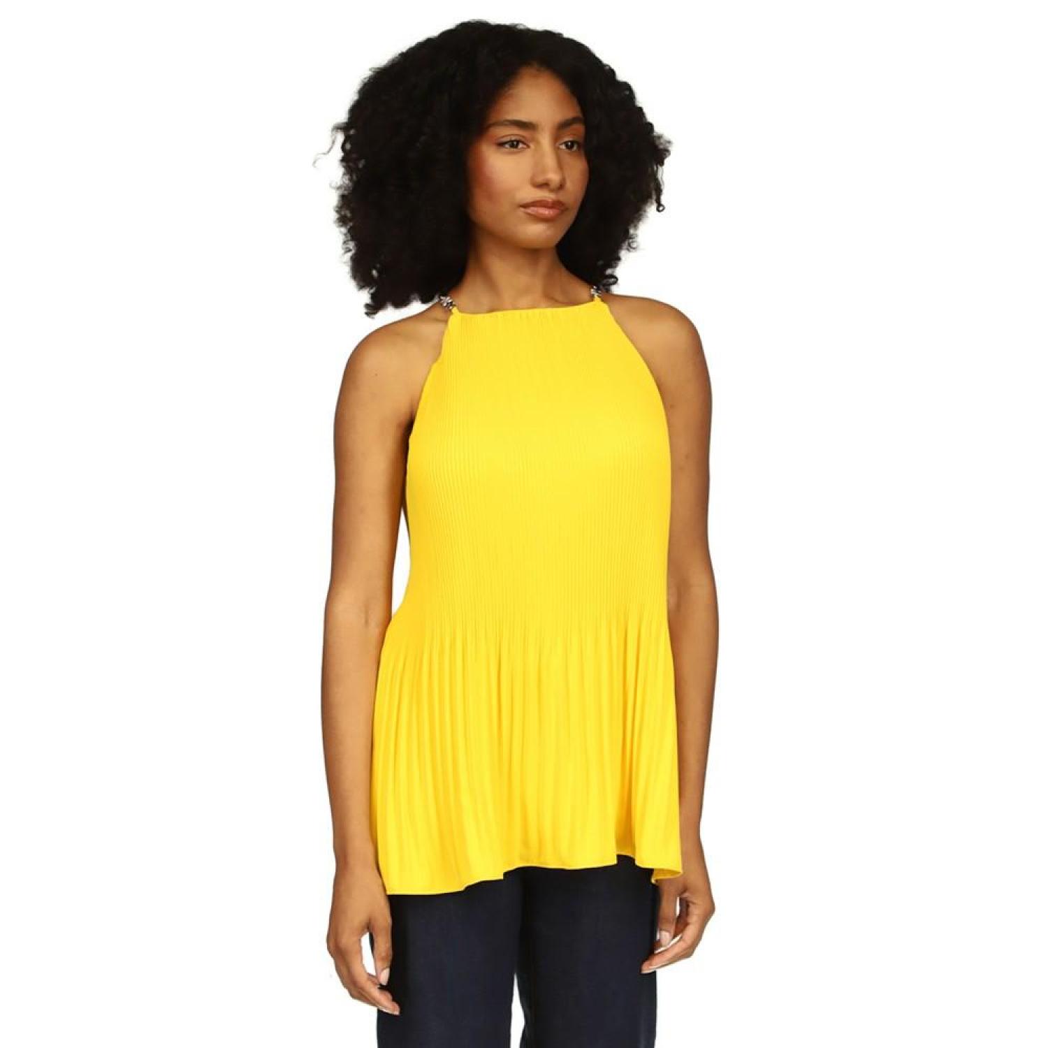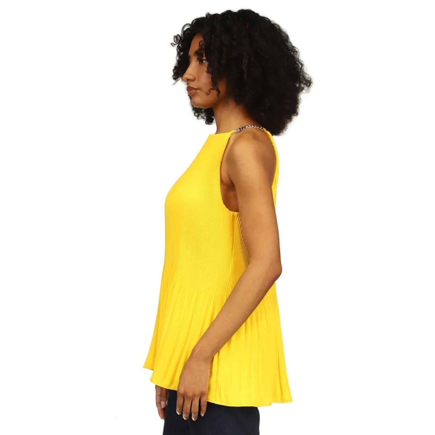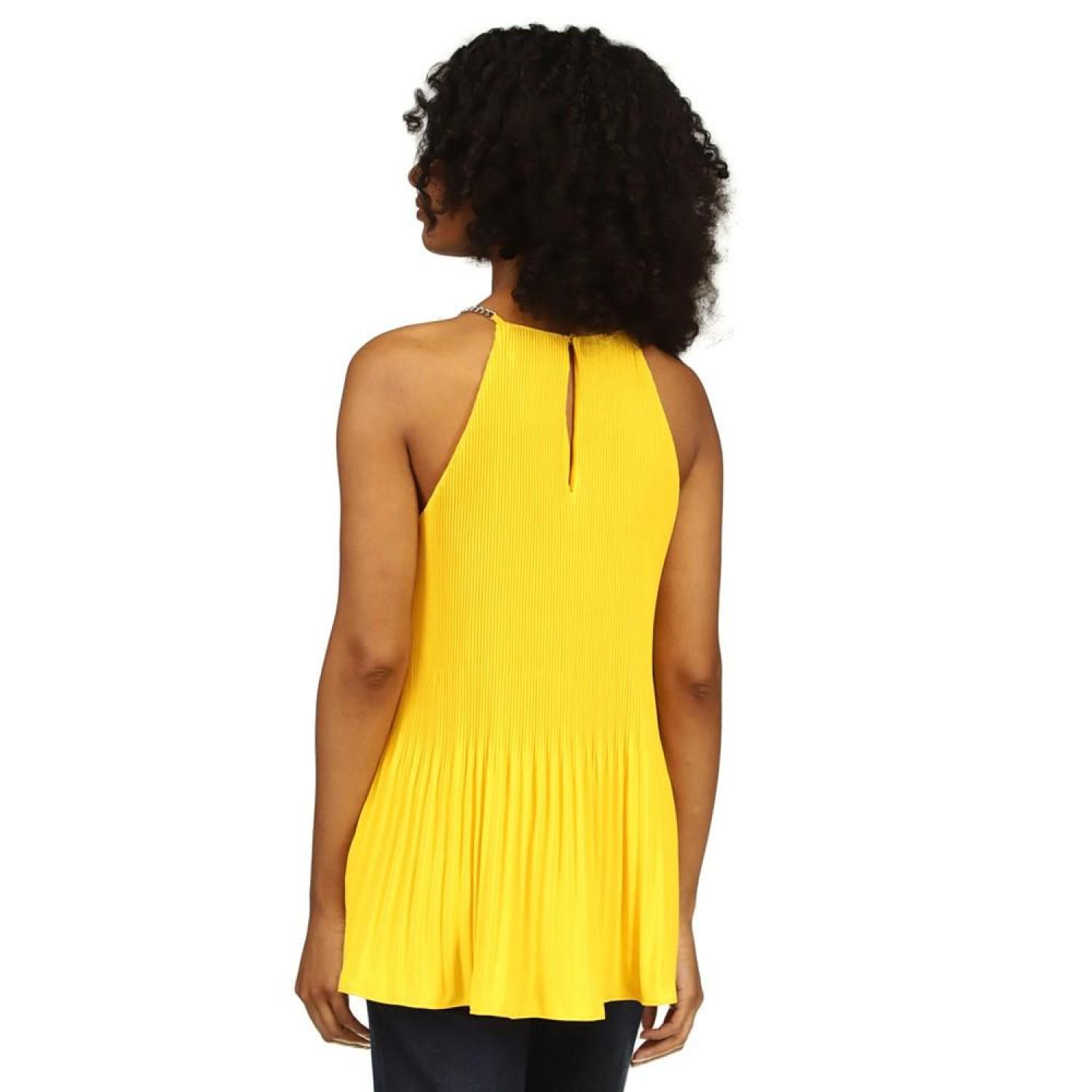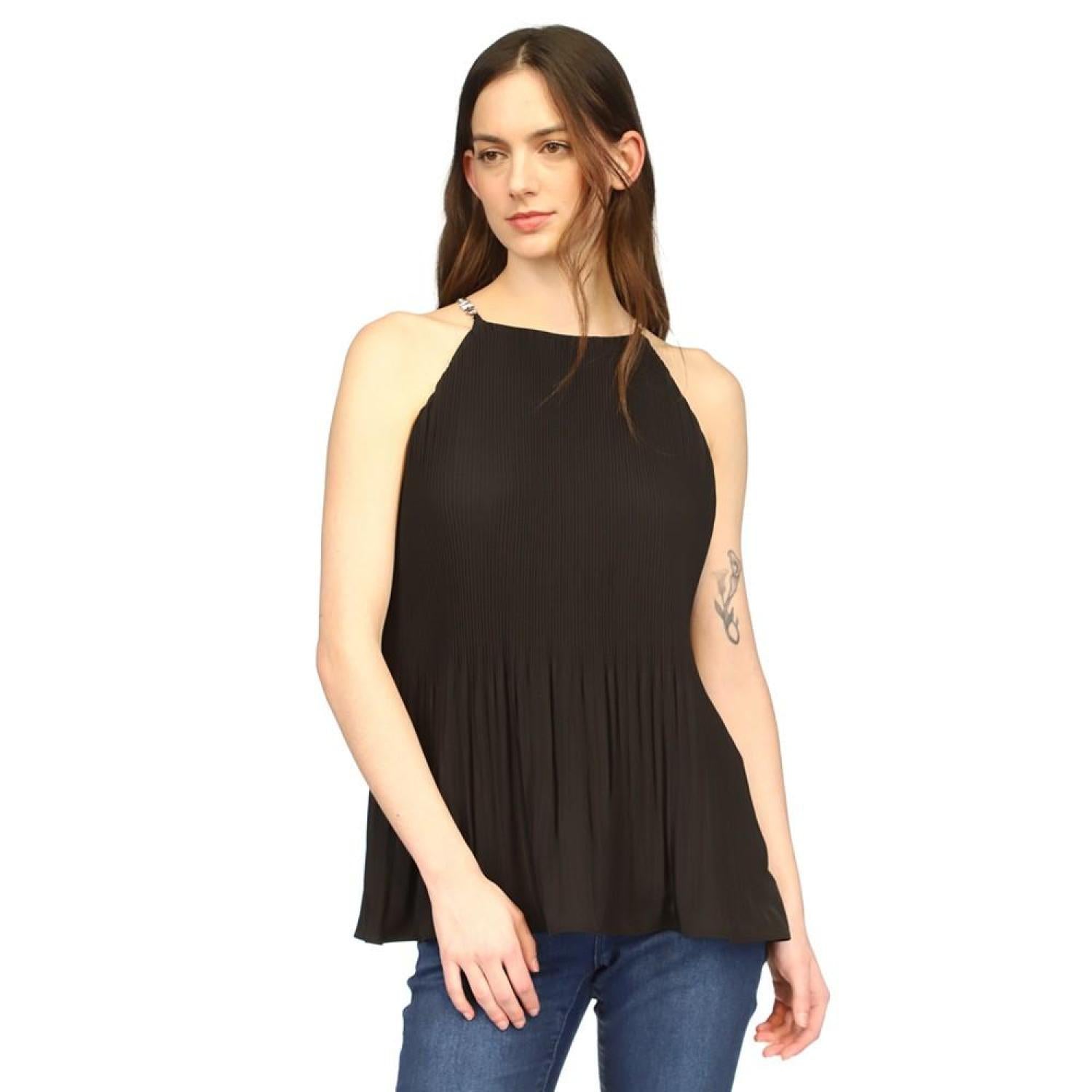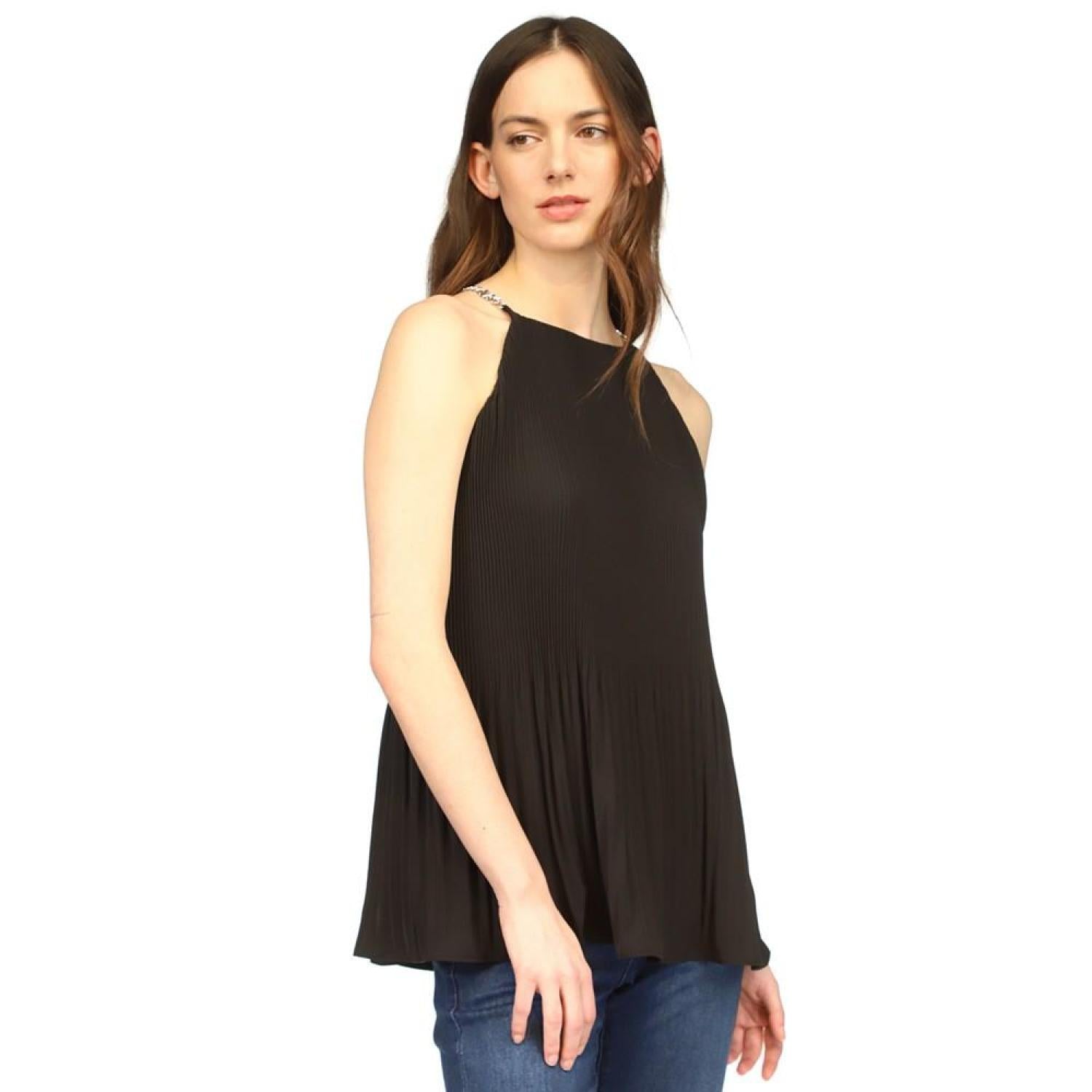 • Add a touch of glamour to your wardrobe with this women's pleated top featuring chic chain straps from MICHAEL Michael Kors. It's perfect for elevating any outfit with a hint of metallic flair and sophisticated texture.