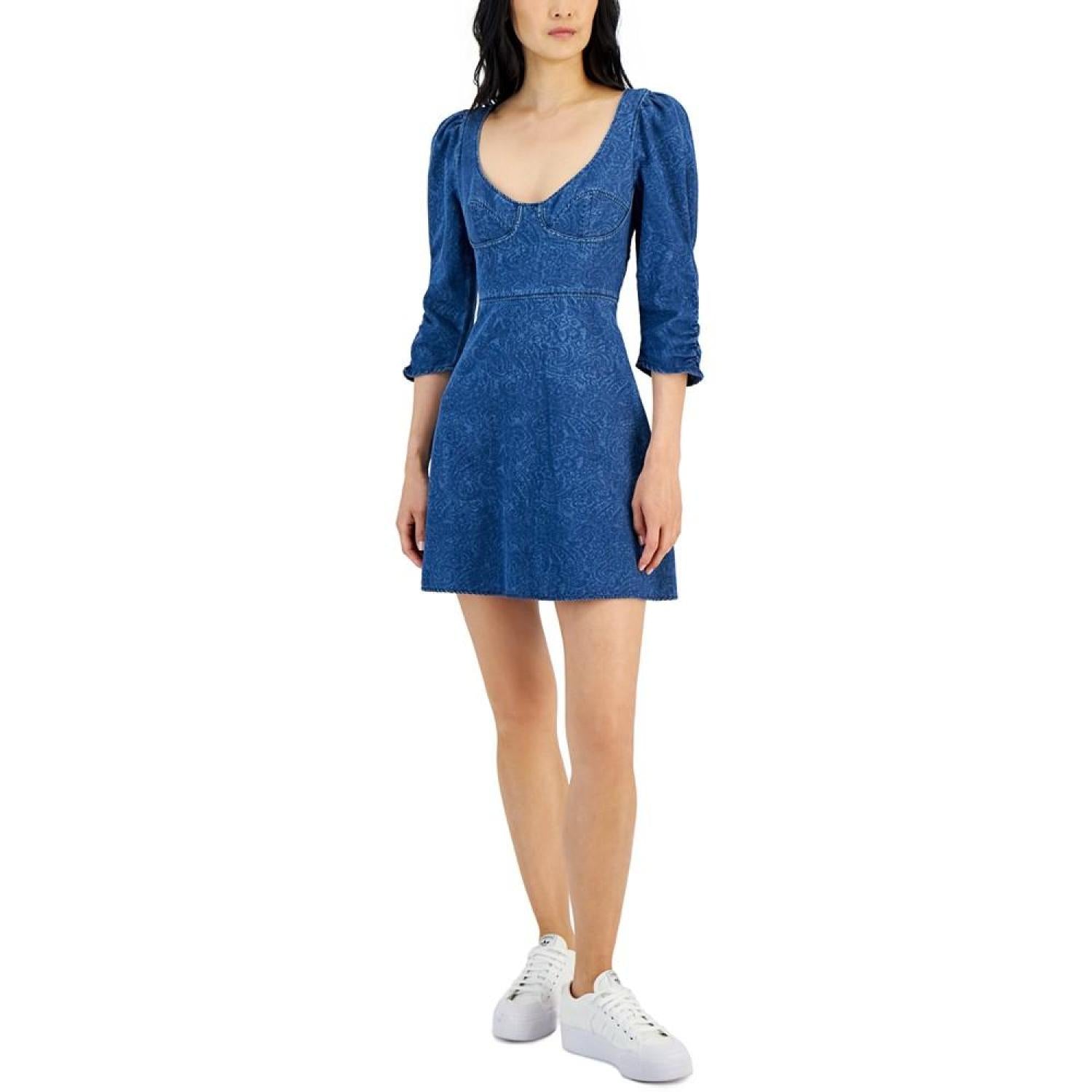 Women's Denim 3/4-Sleeve Fit & Flare Dress