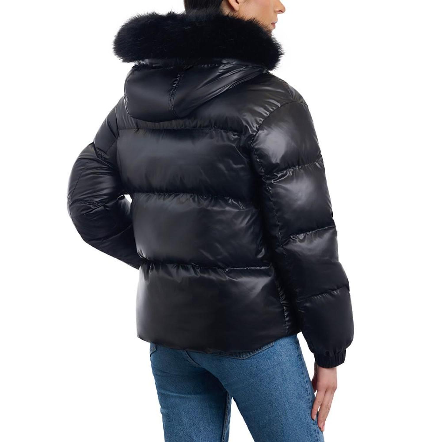 Women's Faux-Fur-Trim Hooded Bomber Puffer Coat