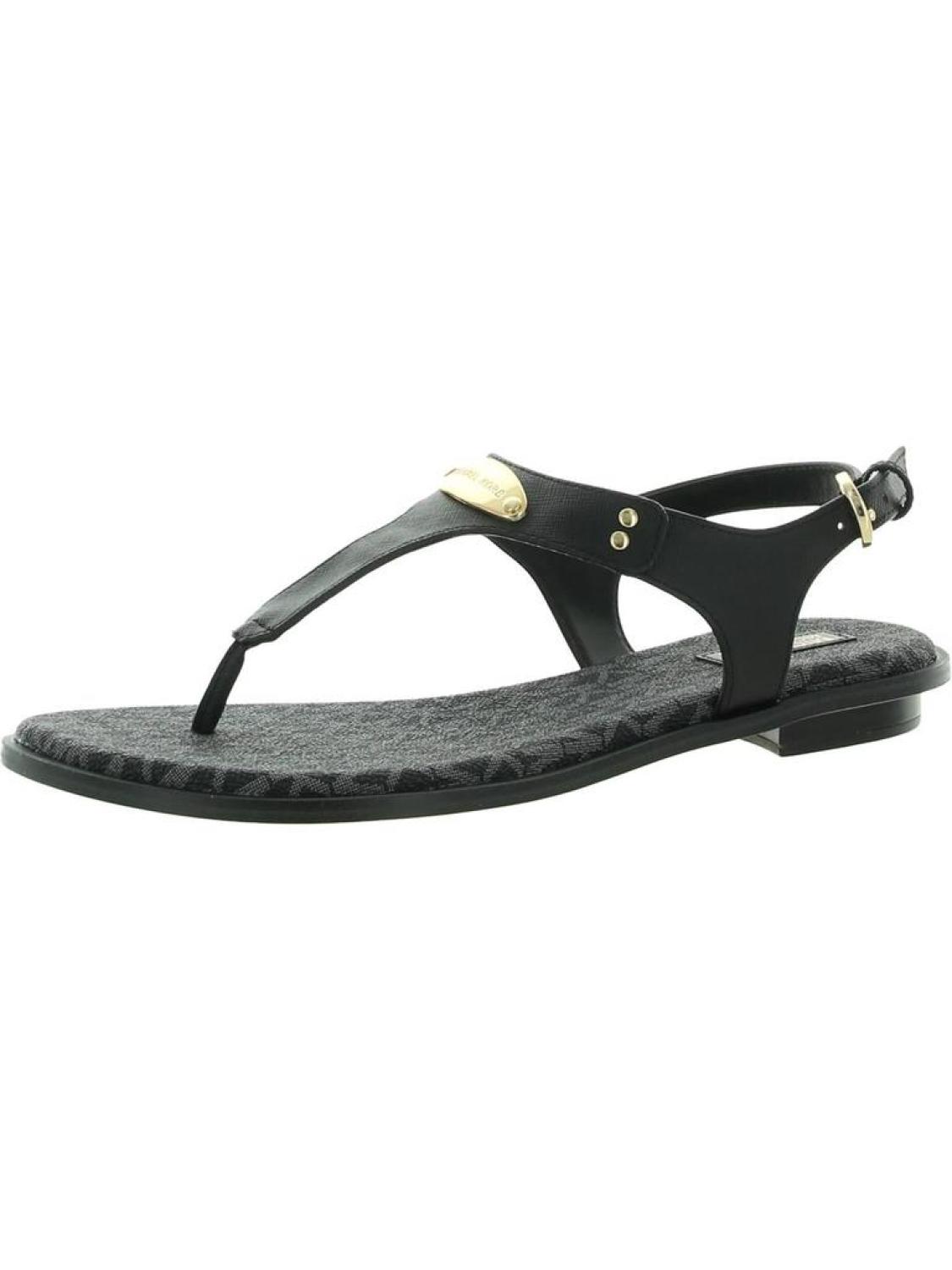 Manufacturer - MICHAEL Michael Kors Size Origin - US Retail - $95.00 Style Type - Slingback Sandals Collection - MICHAEL Michael Kors Closure - Material - Manmade Fabric Type - Faux Leather P2732342*True to size* Step out in style in the MK Plate leather thong sandals by MICHAEL Michael Kors. Featuring manmade uppers with a slingback construction, the mixed media details and flashy logo plate will make these a warm weather favorite. Their padded footbeds and durable rubber outsoles will keep you fashionable all season. Style - MK PLATEThe item for sale is pictured above and described on this page. The photo may include additional clothing or props that are for display purpose only and will not be included. Please be sure to read the description carefully.