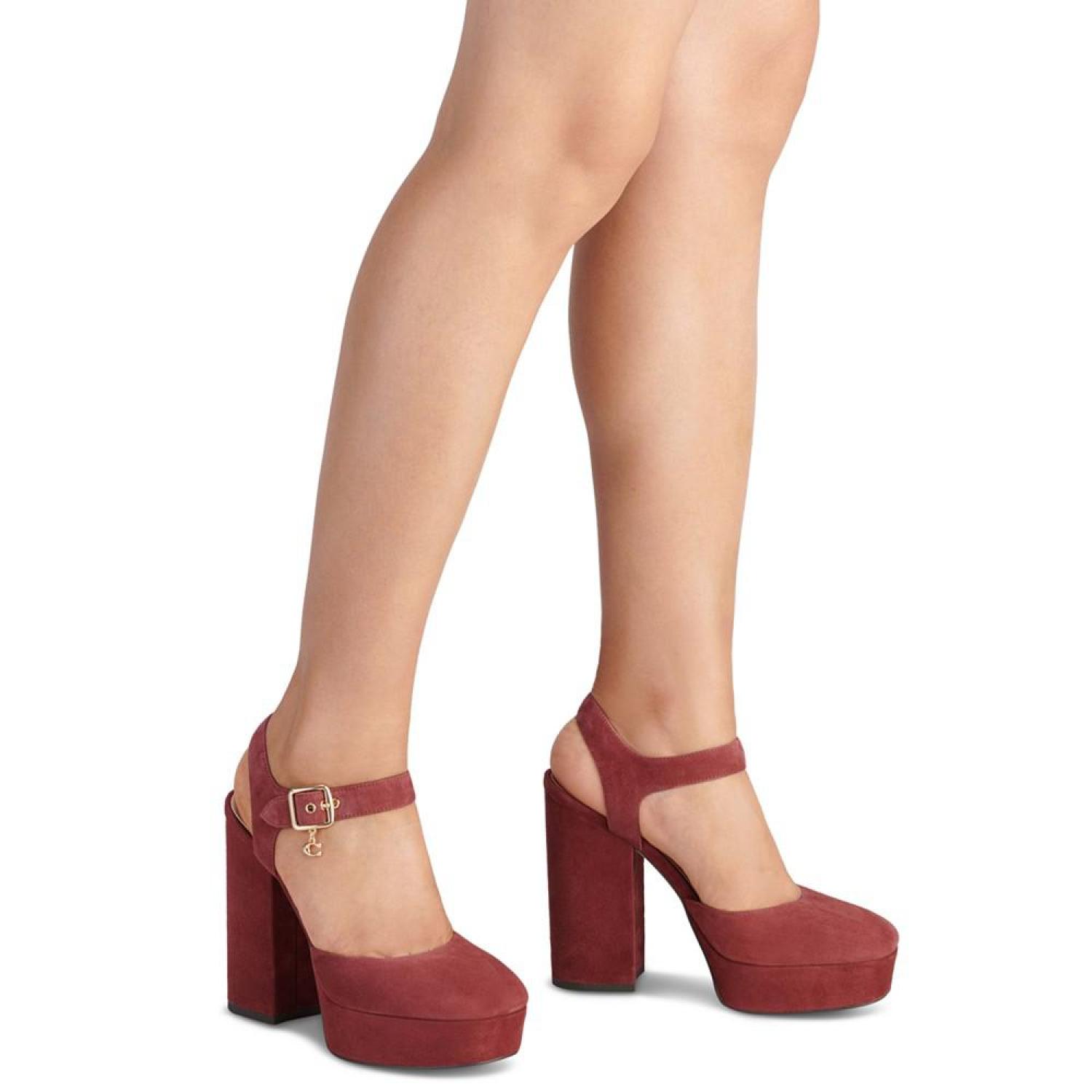 Women's Isabella Ankle-Strap Platform Block-Heel Pumps