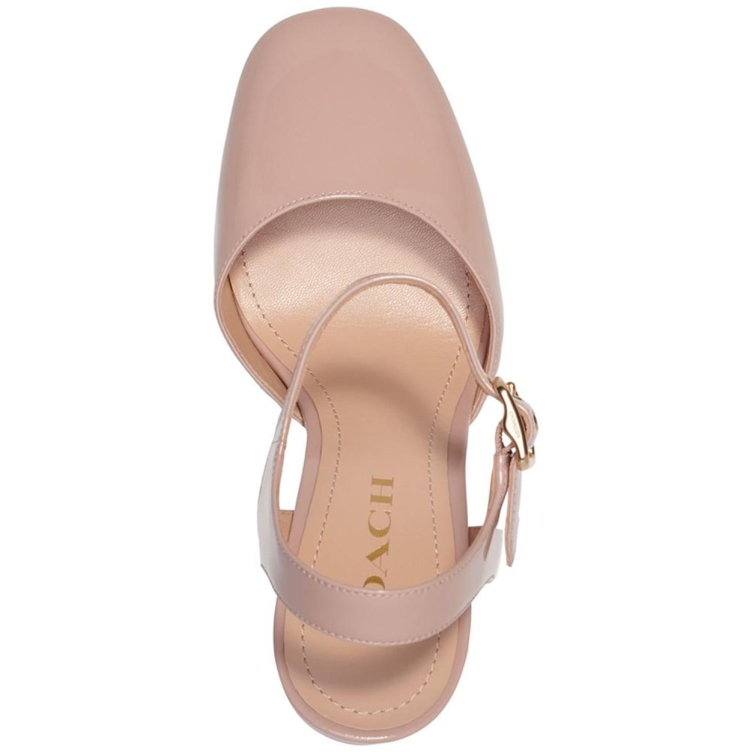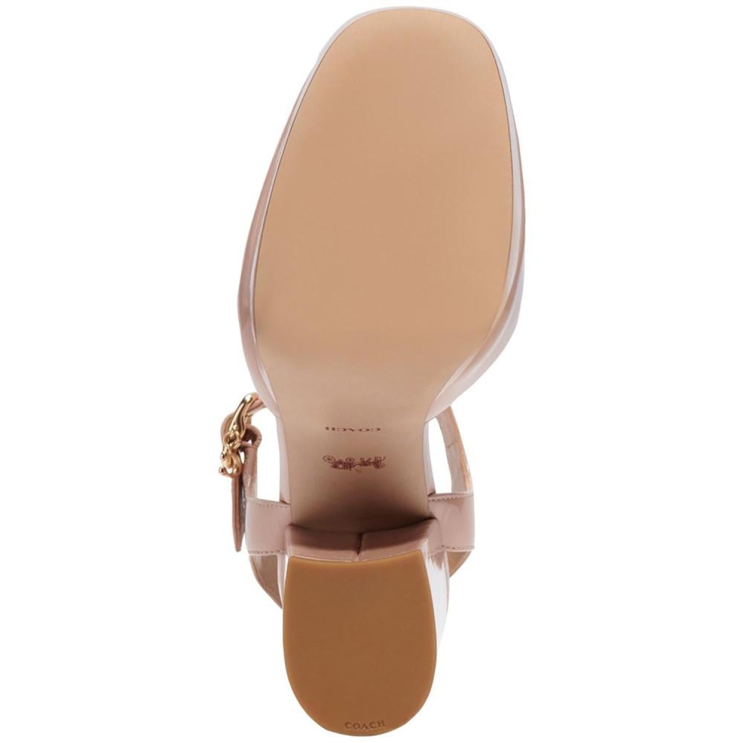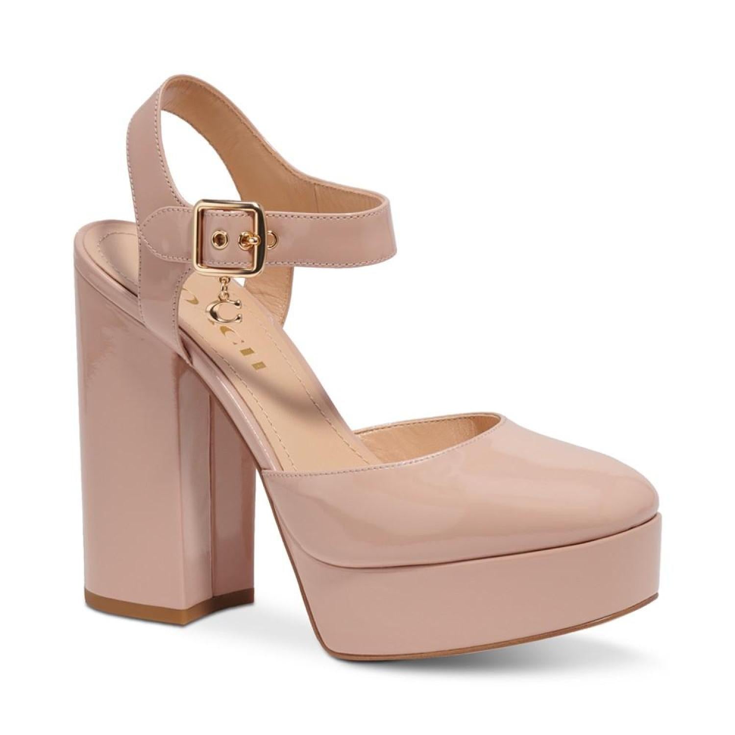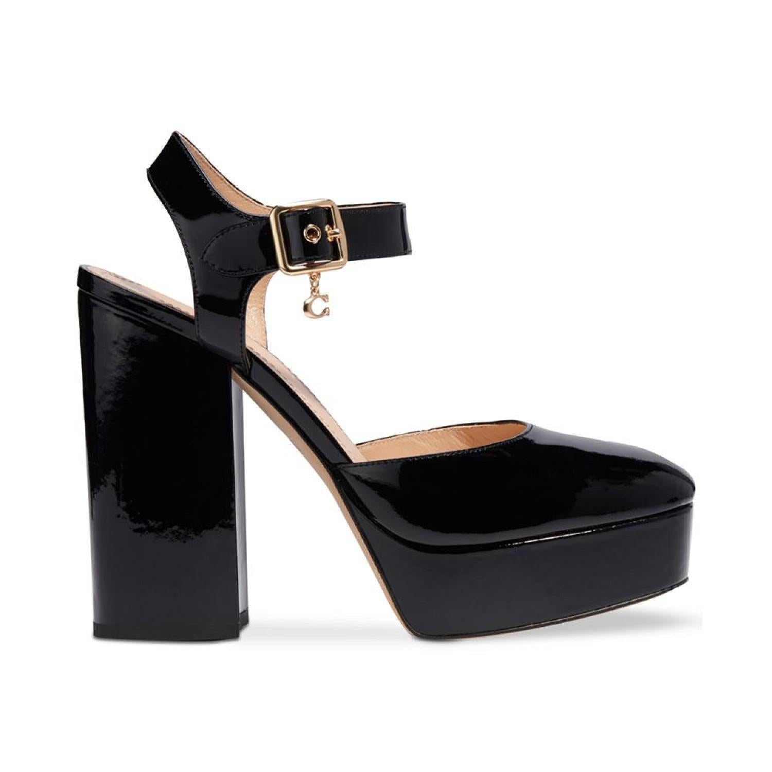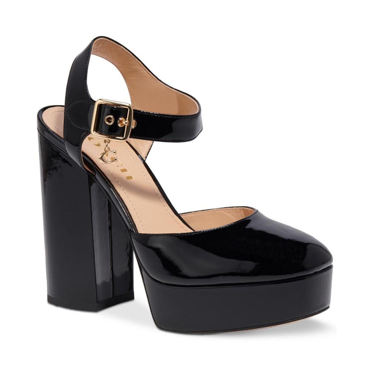 Patent leather adds smart polish to towering platform heels in the gorgeous Isabella ankle-strap pumps from COACH.