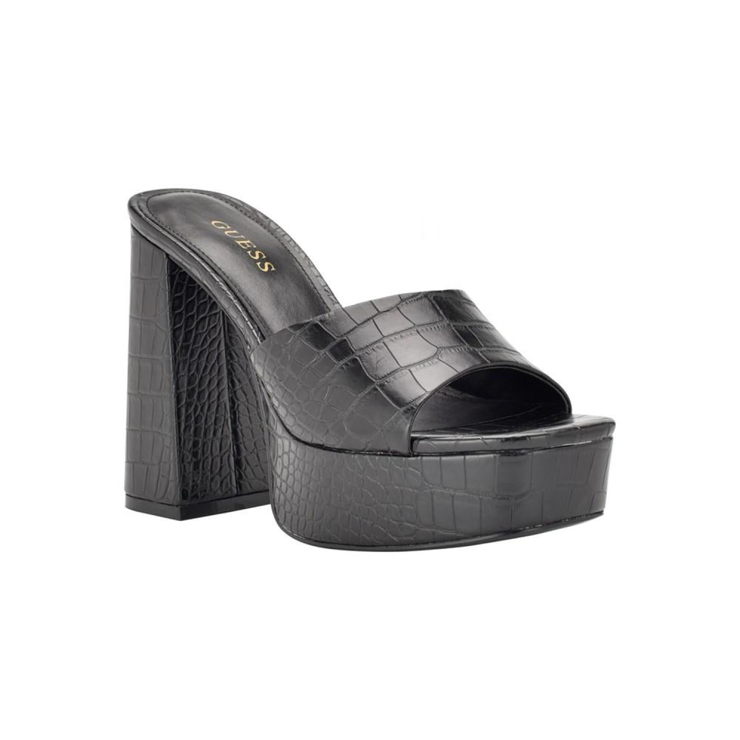 • The GUESS Jadah is a timeless one band slide sandal that will take you from day to night. It features a soft shape and a fashion forward with platform. Established 1981, GUESS is a global lifestyle brand and a symbol of a young, adventurous lifestyle.