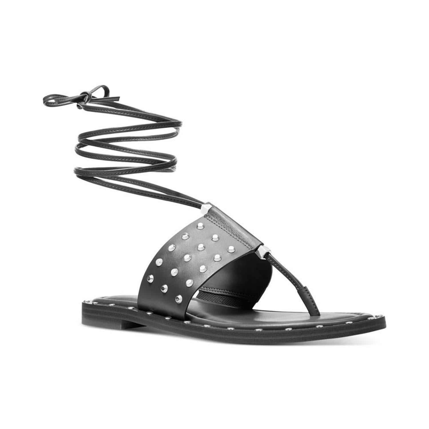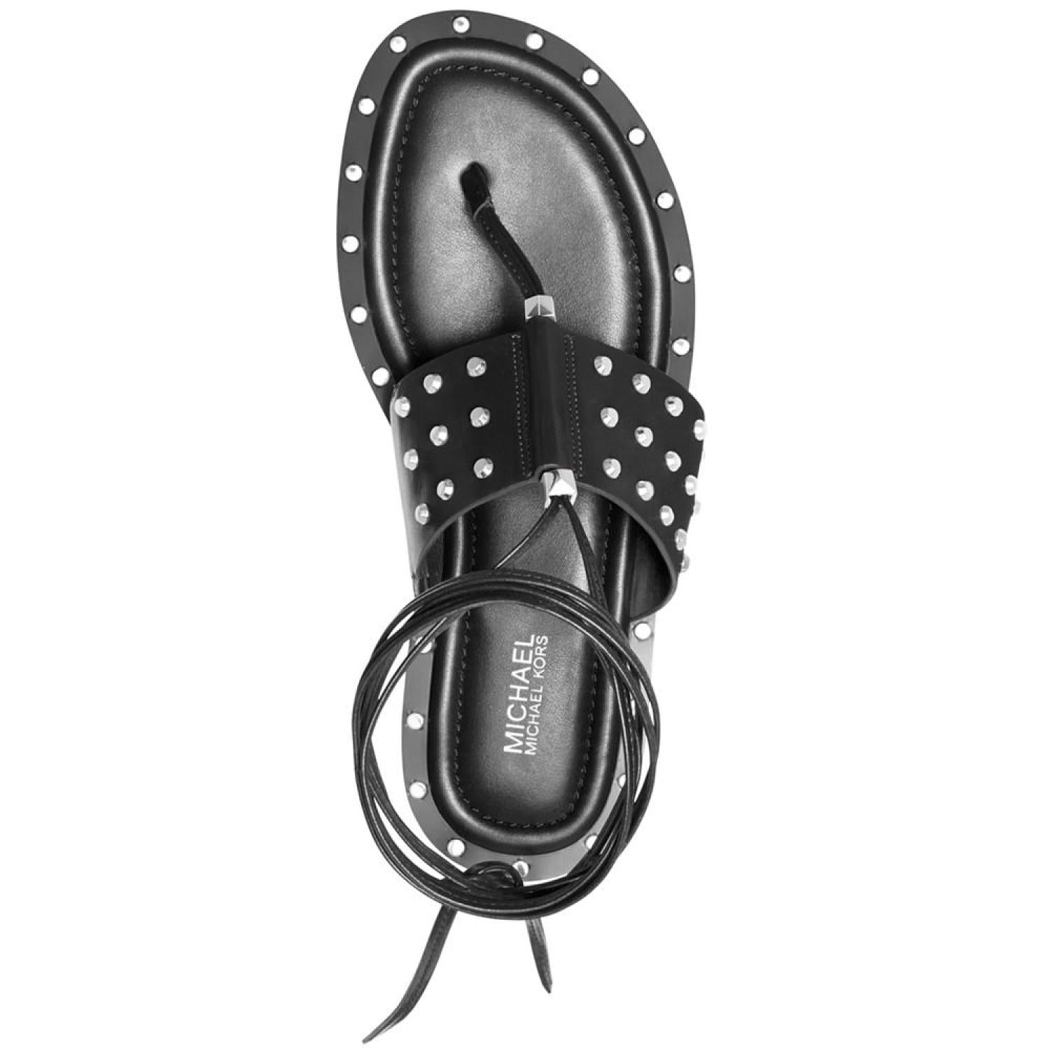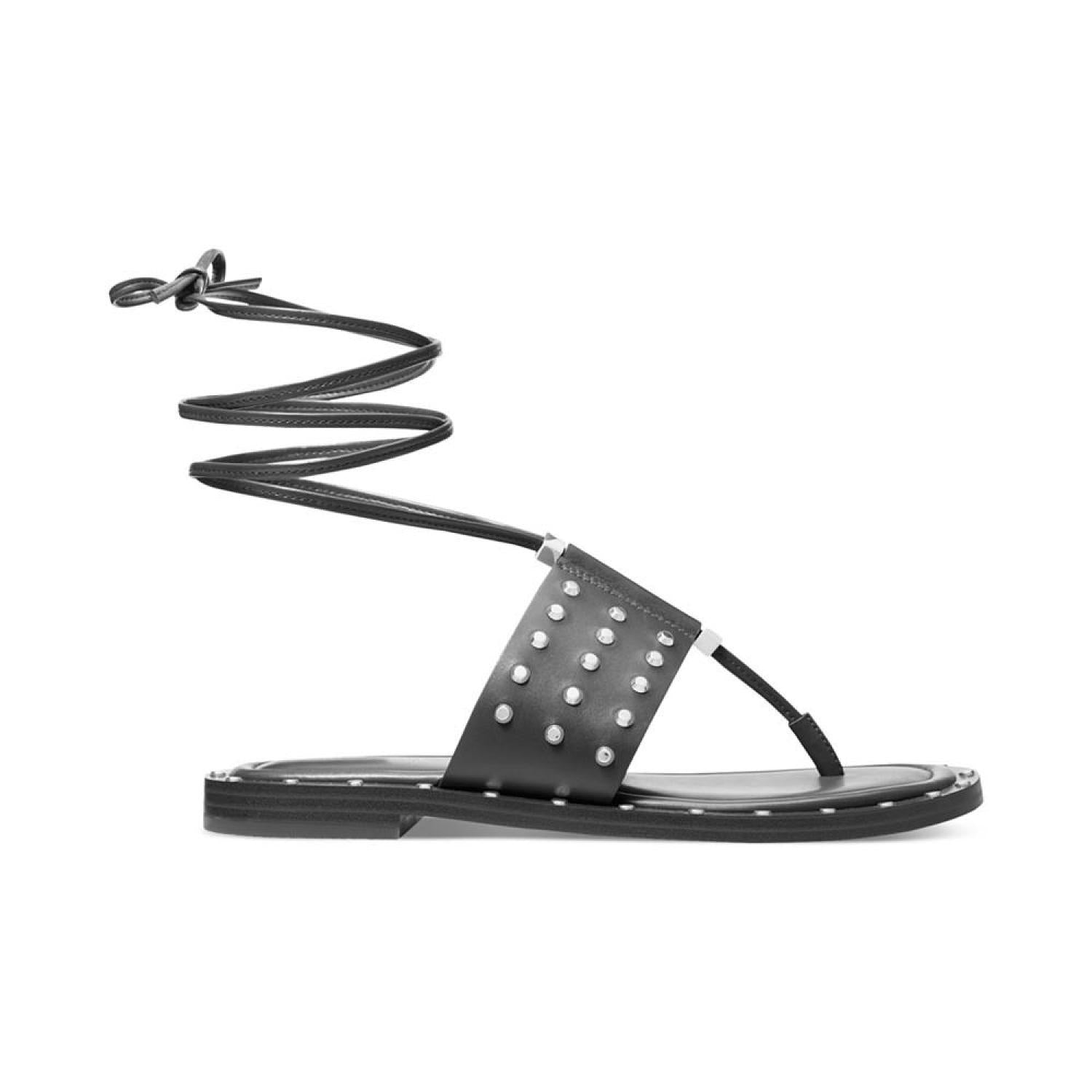 • Elegant wrapping ankle ties pair with moto-inspired studs for a fresh addition to warm-weather style in the Jagger sandals from MICHAEL Michael Kors.