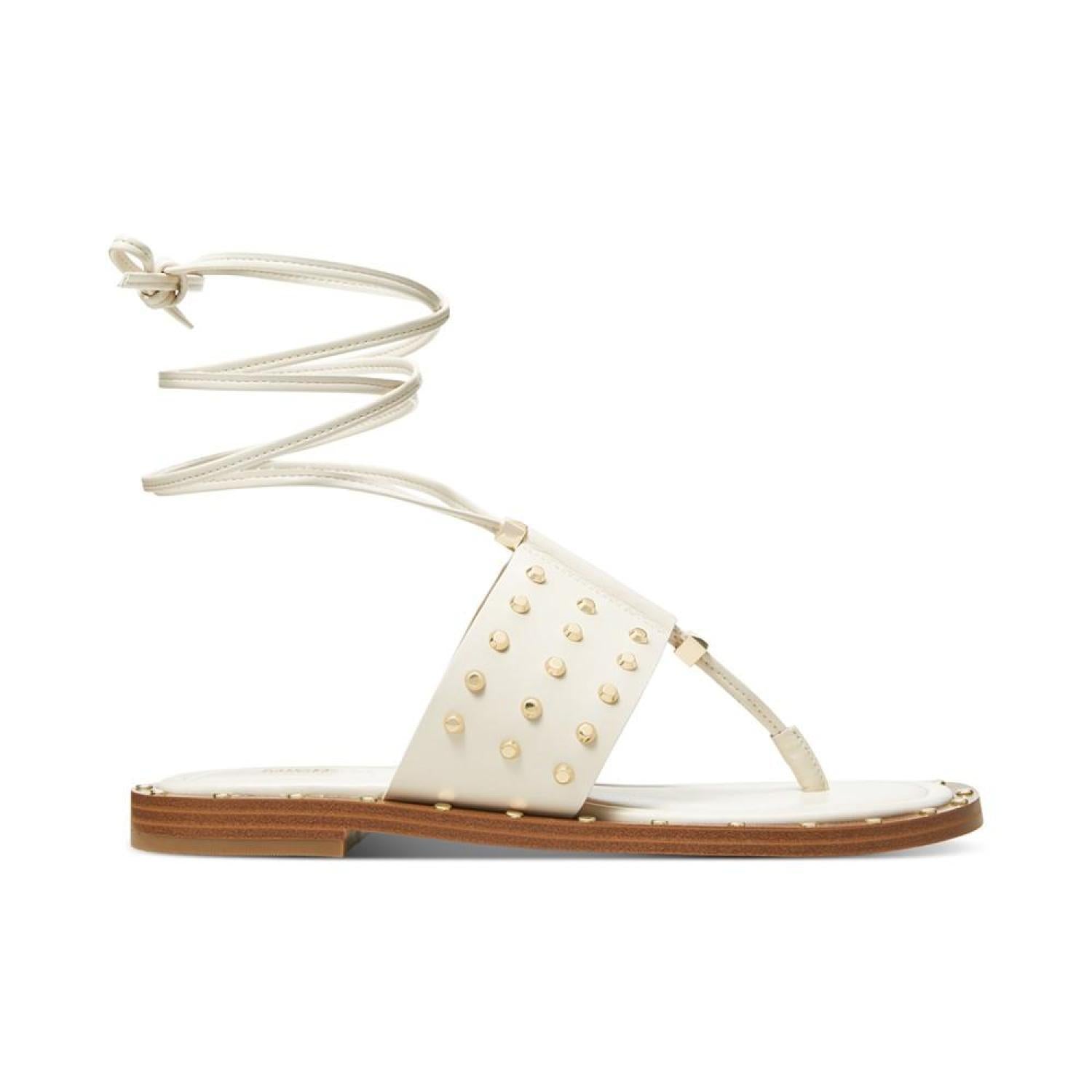 Elegant wrapping ankle ties pair with moto-inspired studs for a fresh addition to warm-weather style in the Jagger sandals from MICHAEL Michael Kors.