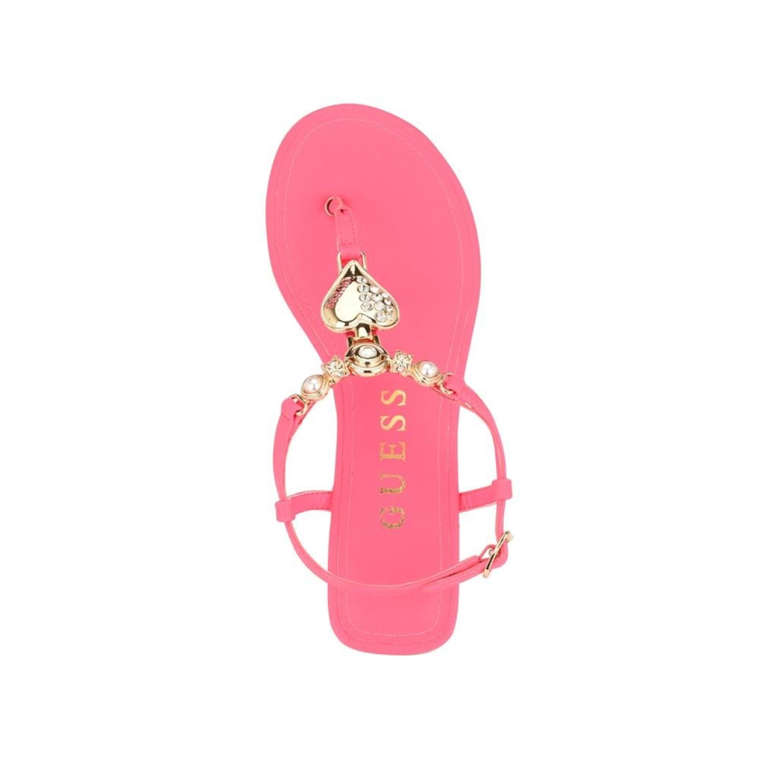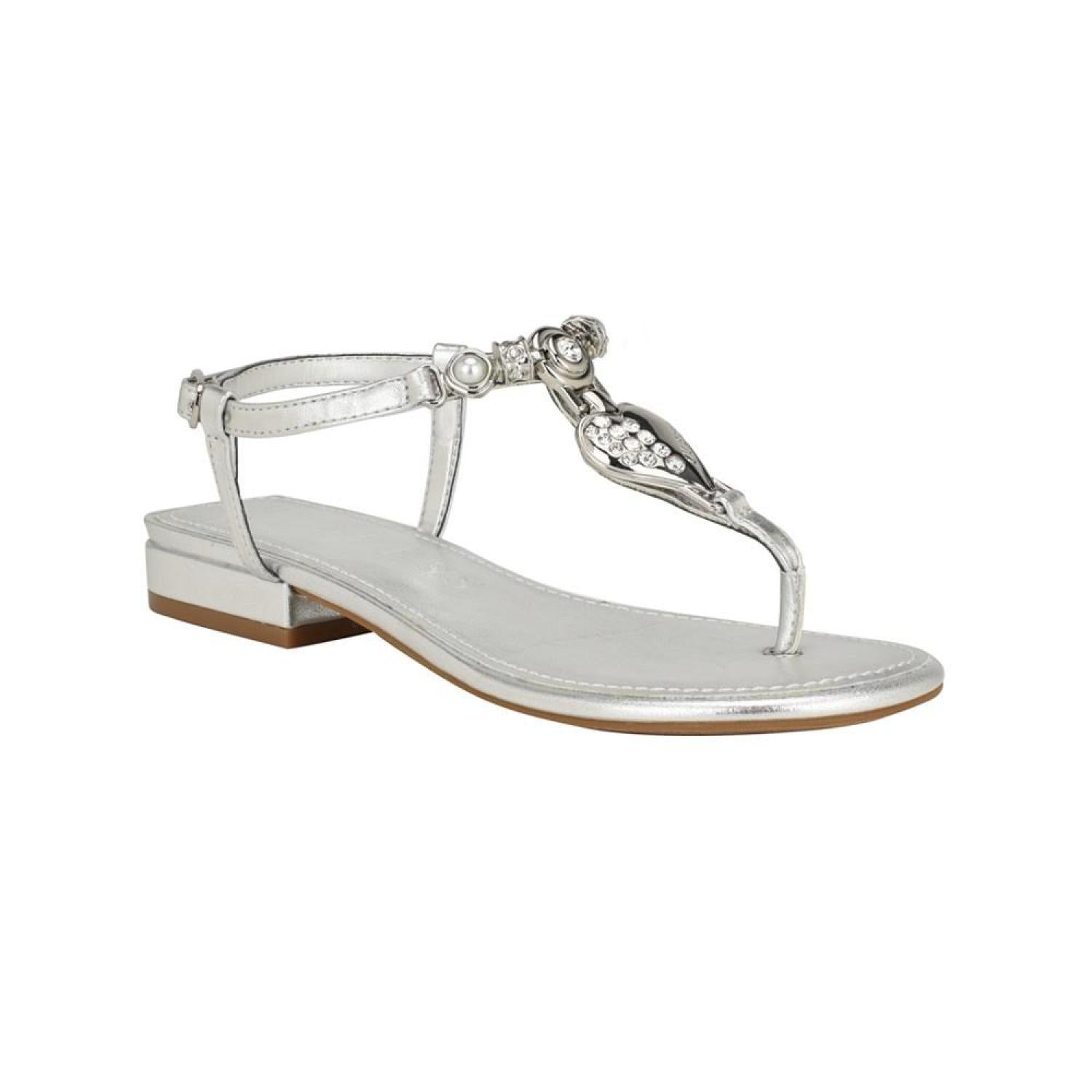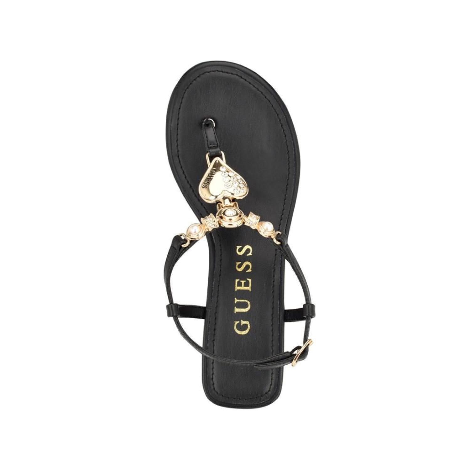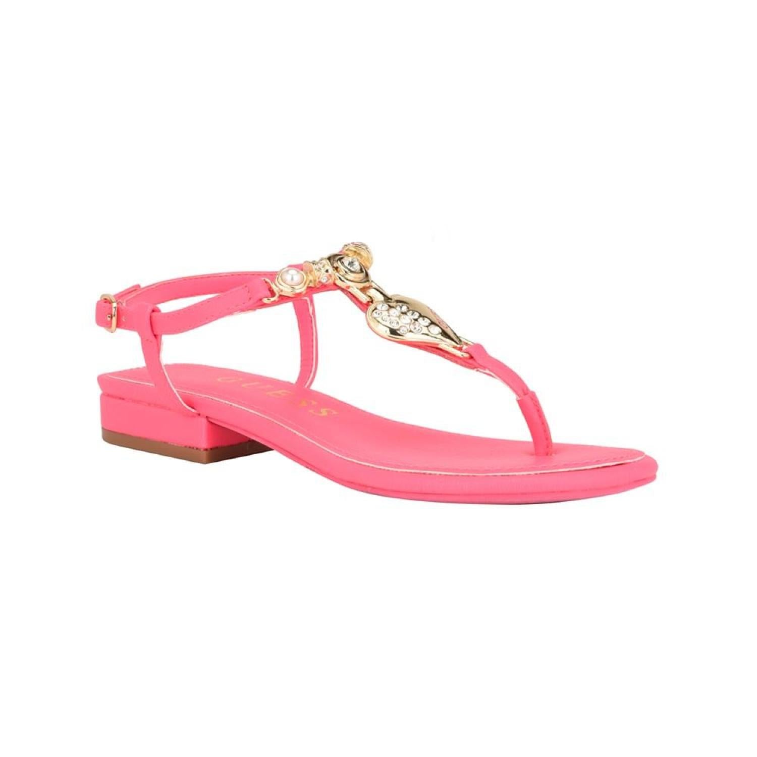 • Jiarella brings the glam to an understated silhouette. The sling back sandal with the decorated hardware T strap makes this sandal easy to throw on and elevate any outfit. Established. 1981, GUESS is a global lifestyle brand and a symbol of a young, adventurous lifestyle.