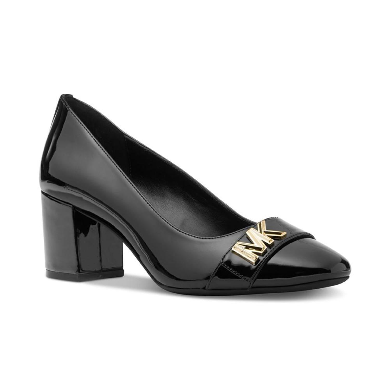 • Propped on sensible stacked heels, the Jilly pumps from MICHAEL Michael Kors dress up your favorite looks with a glint of metallic polish.