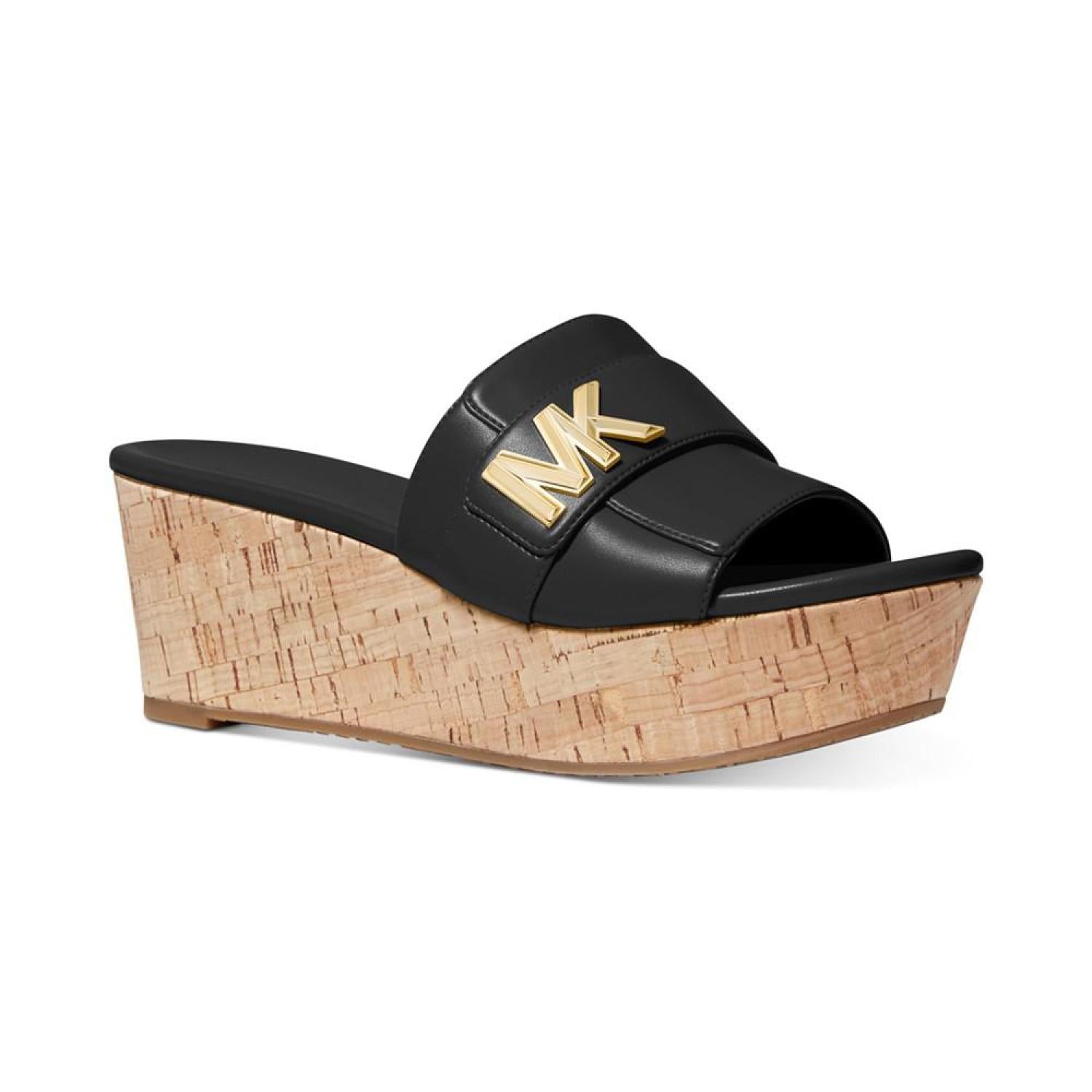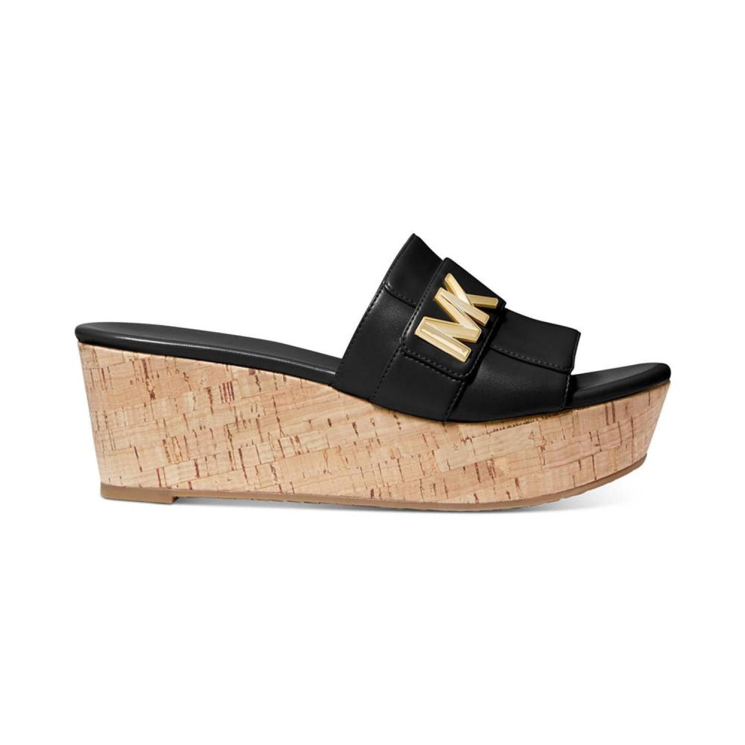 • Retro inspiration runs deep in the cork-like platforms and timeless slide silhouette of the Jilly sandals from MICHAEL Michael Kors.