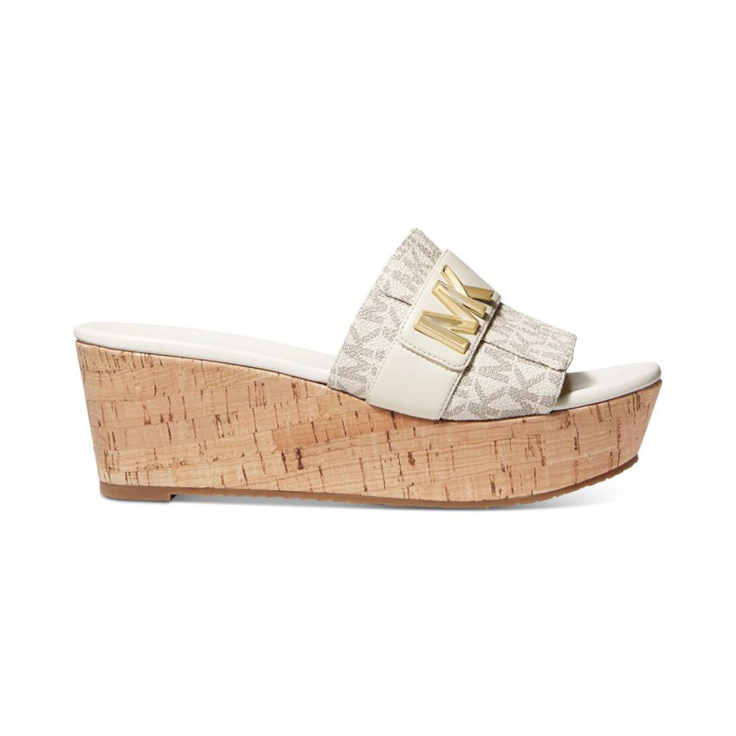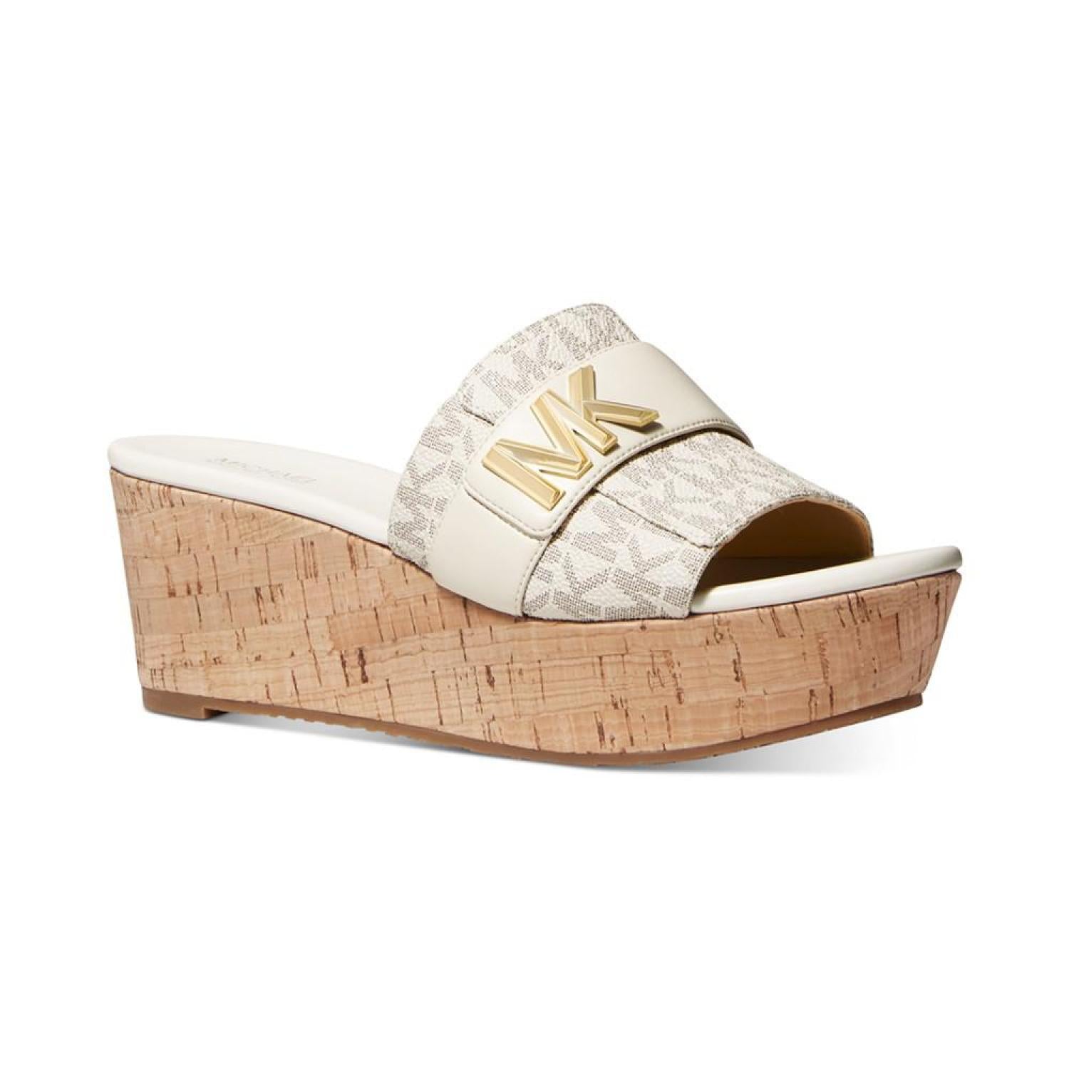 • Retro inspiration runs deep in the cork-like platforms and timeless slide silhouette of the Jilly sandals from MICHAEL Michael Kors.