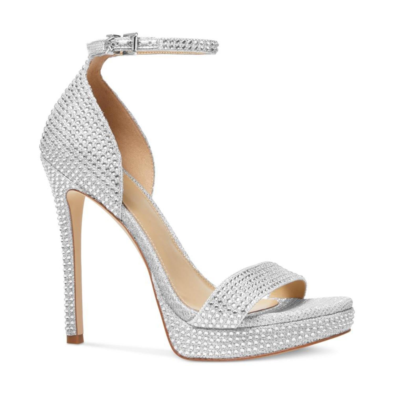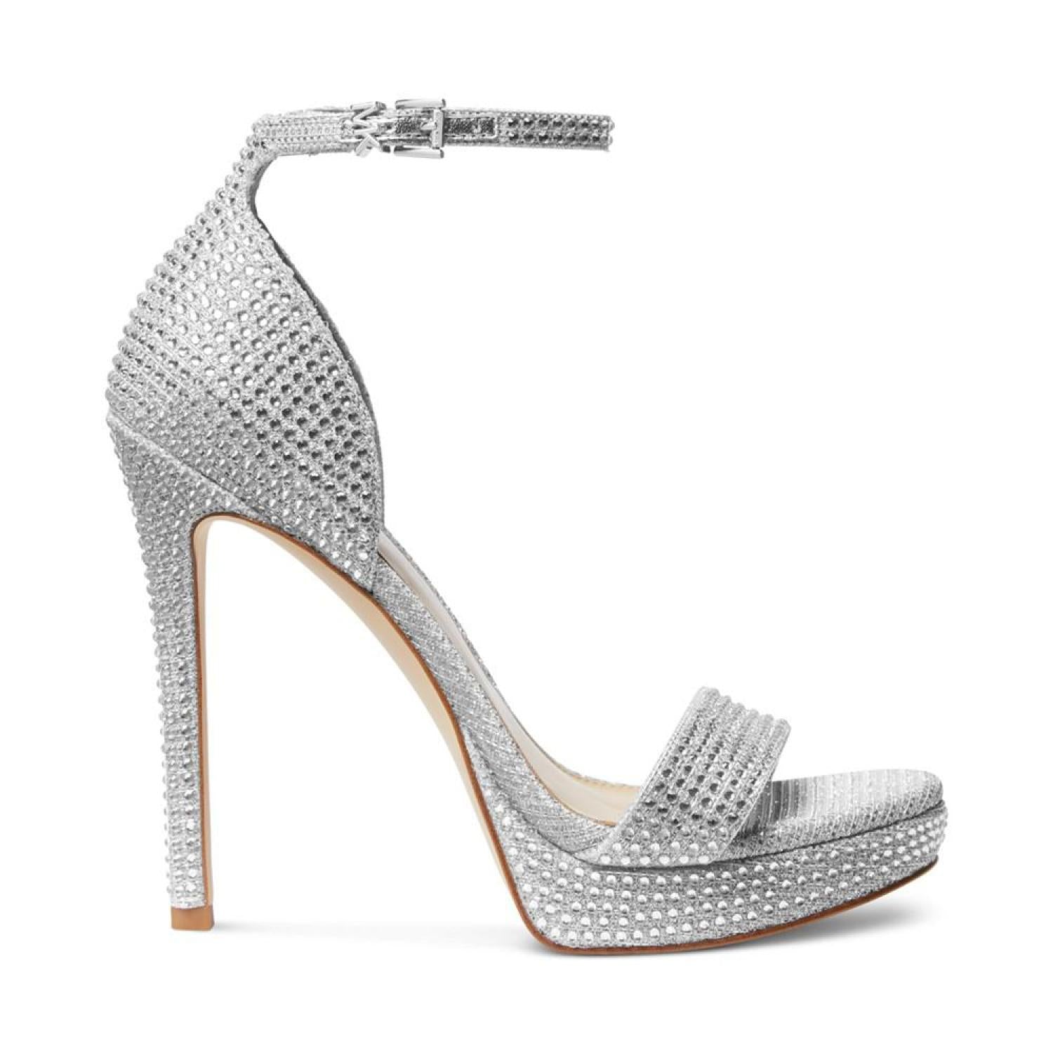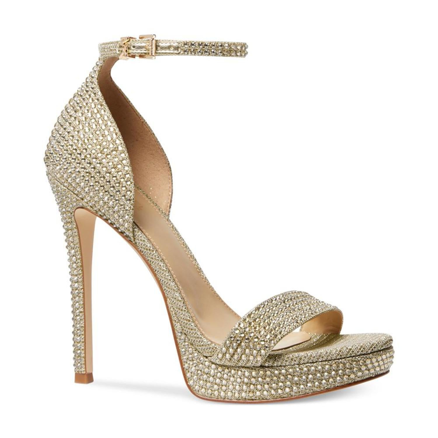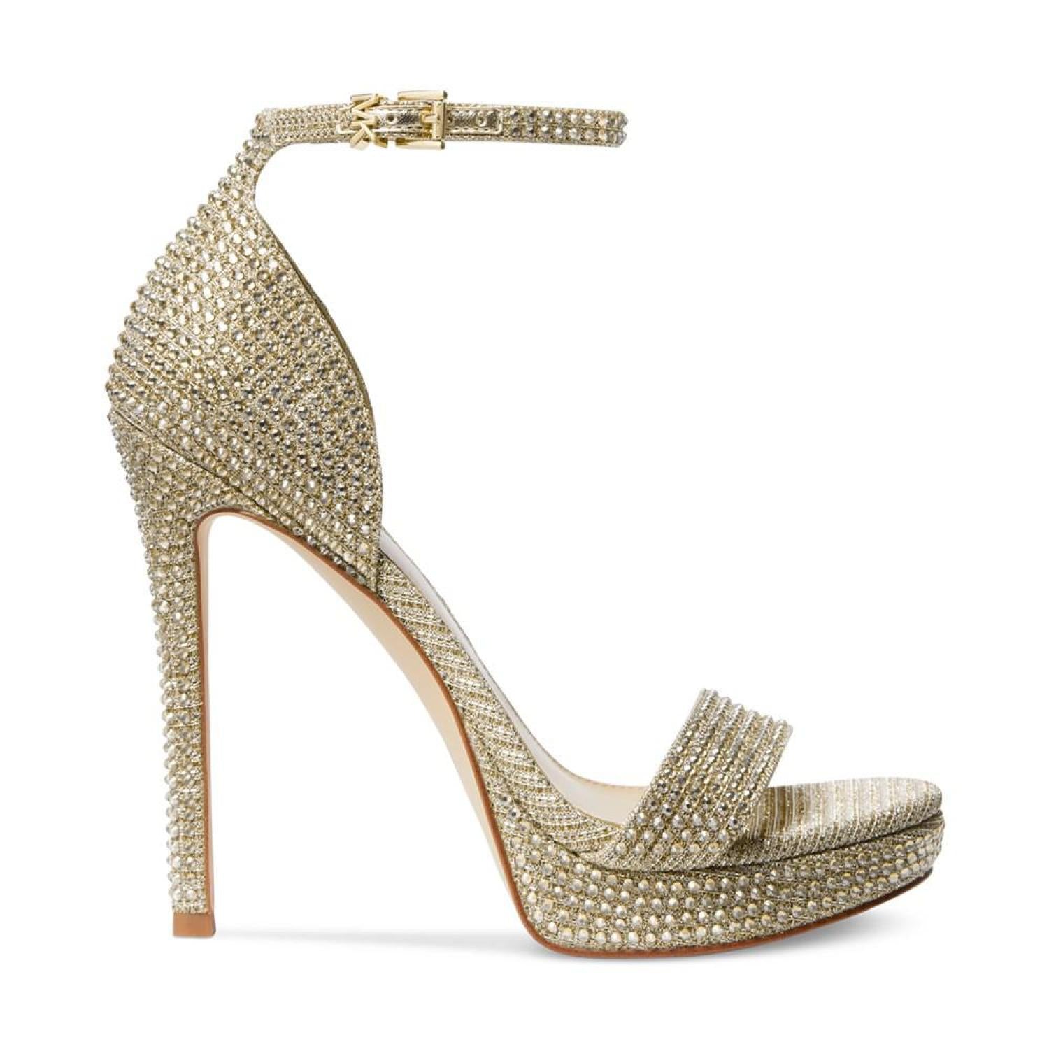• Adorned in sparkles, the Jordyn sandals by MICHAEL Michael Kors dress up a stylish look with slender ankle straps topping chunky platform heels.