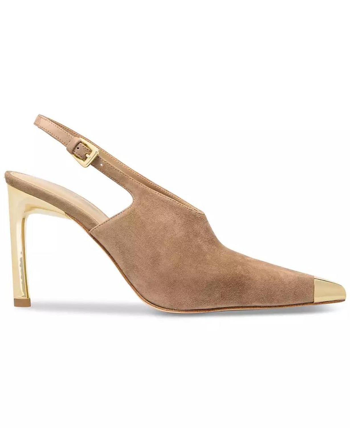 • Pointed toes trimmed in metallic flash make a striking addition to a sleek slingback profile in the MICHAEL Michael Kors Kasia pumps.