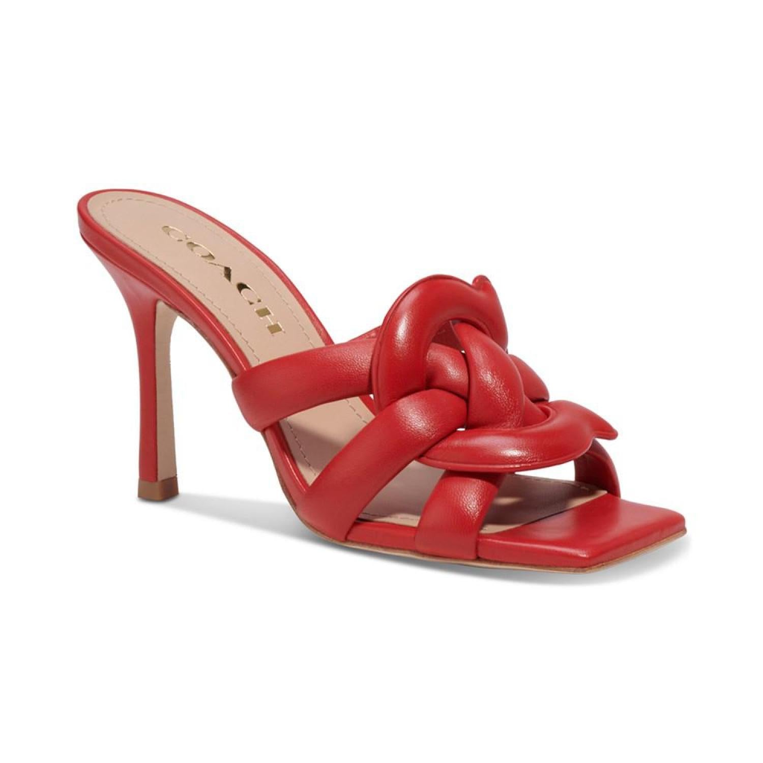 • Puffed up straps twist and turn atop a sleek stiletto heel in the gorgeous Kellie Signature sandals from COACH.