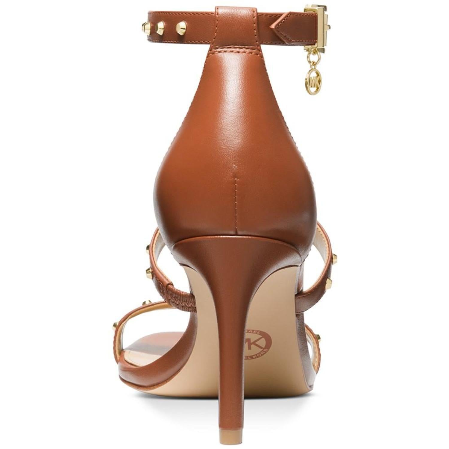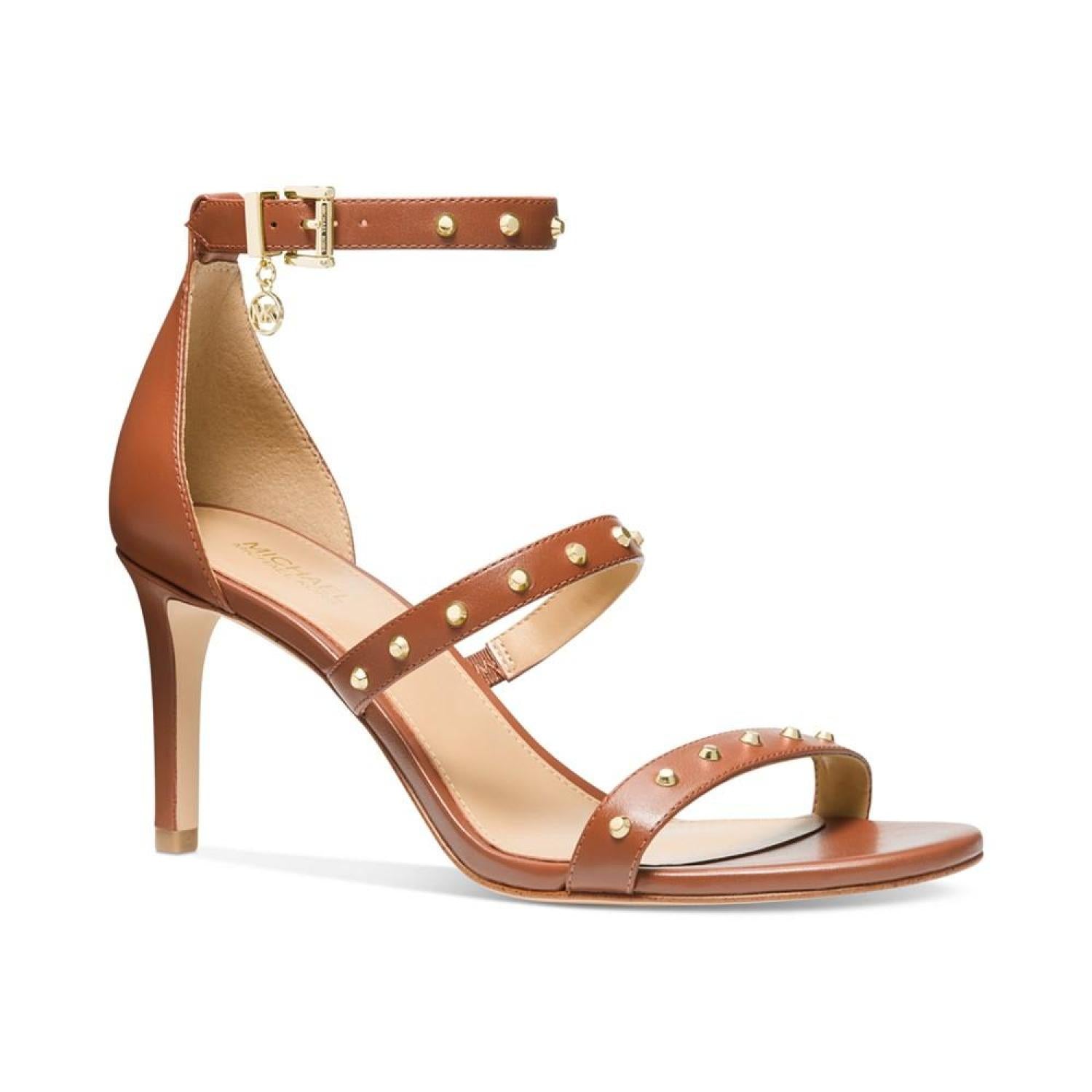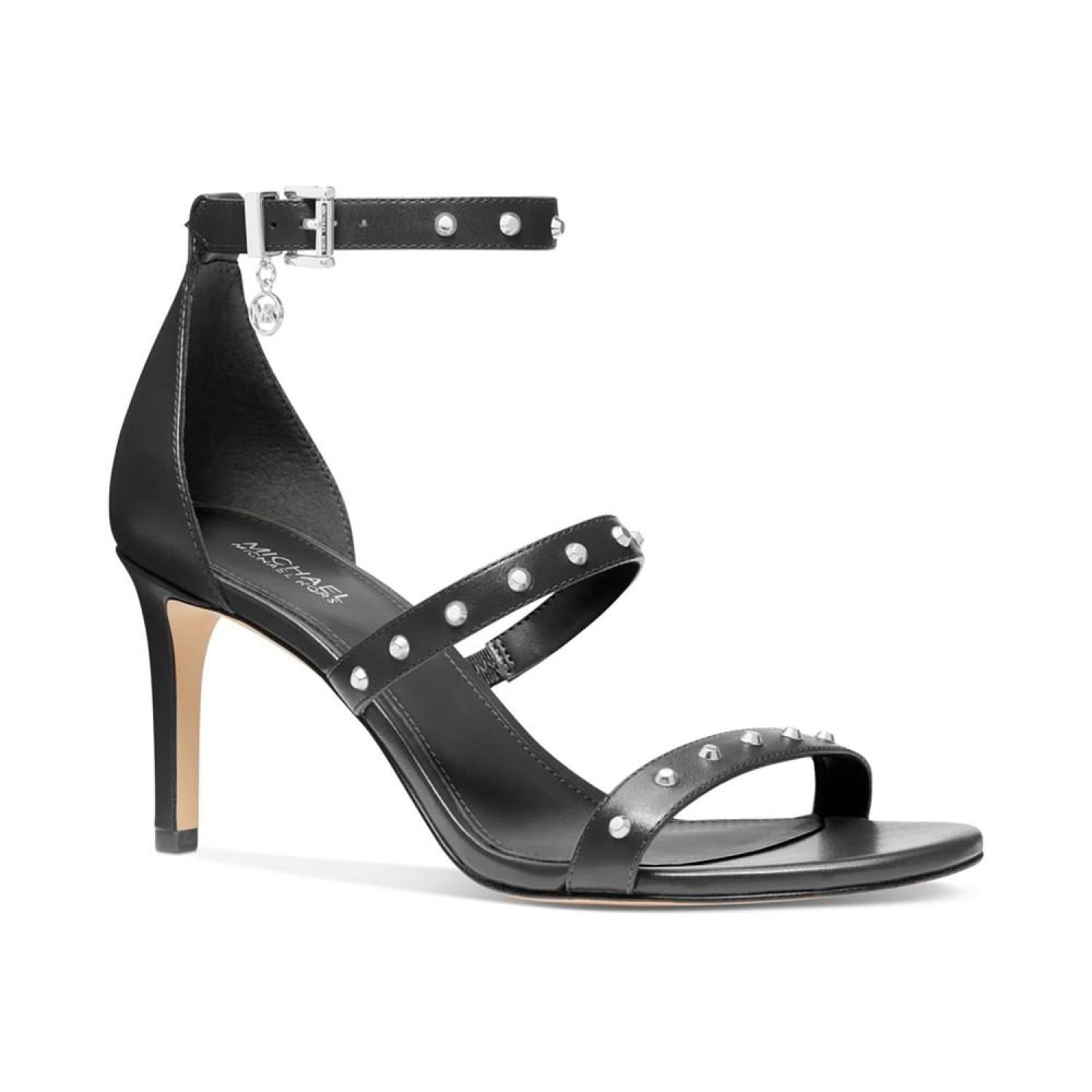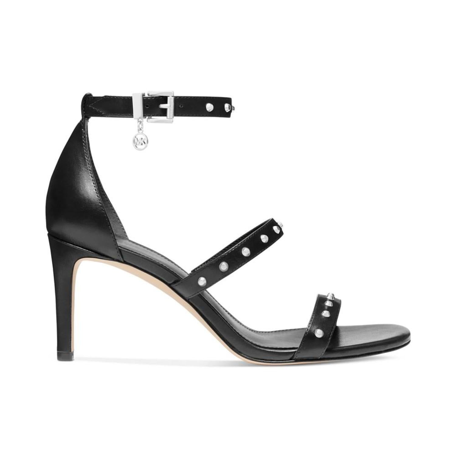 A trio of studded straps bring bold moto flair to a dressy lift in the gorgeous Koda sandals from MICHAEL Michael Kors. 3" heel Open toe Buckled ankle strap Studding at straps; signature charm detail Leather upper; manmade lining; rubber sole Imported