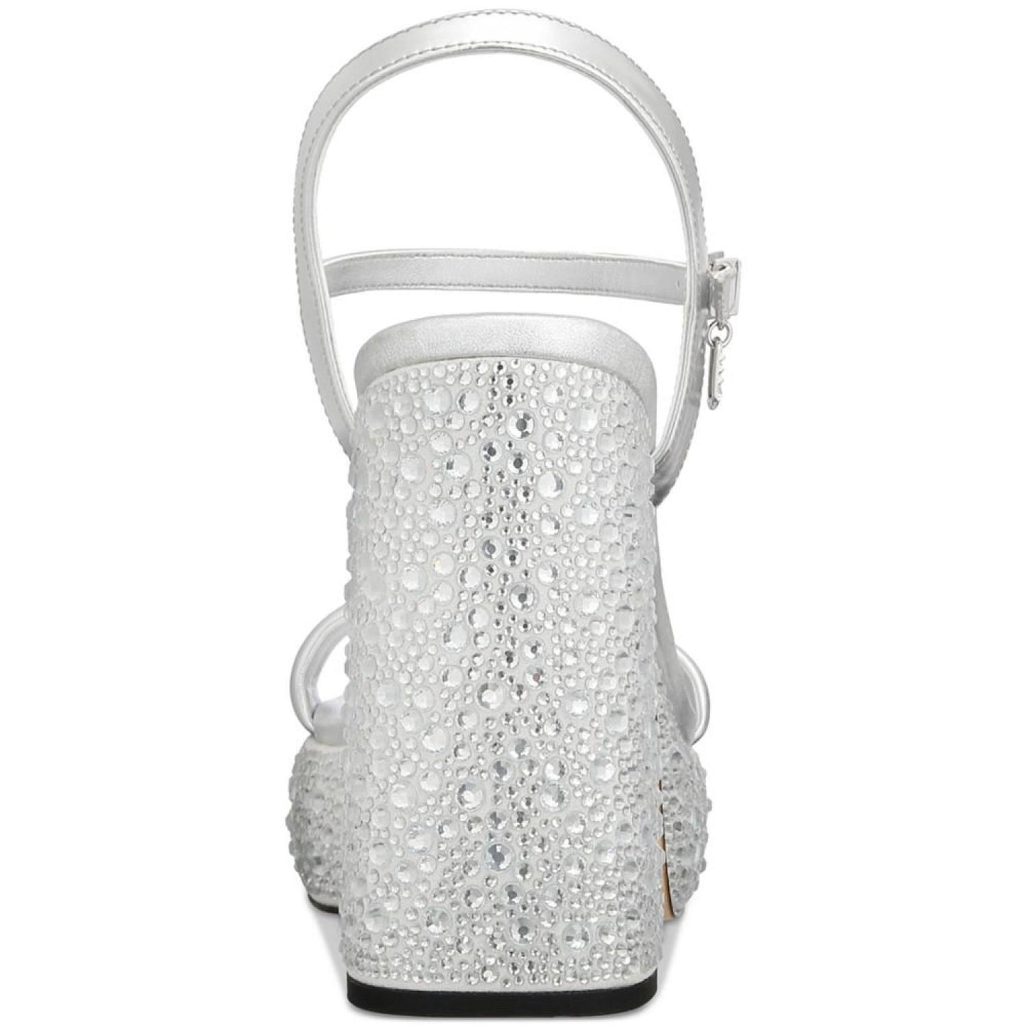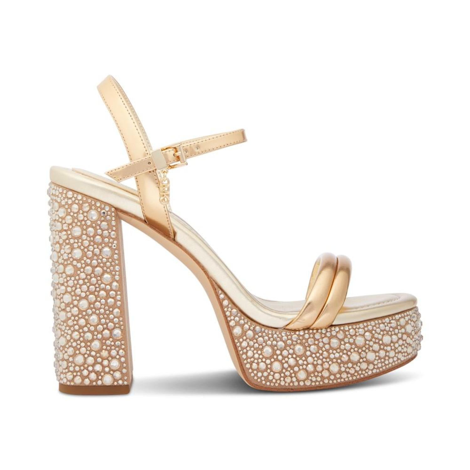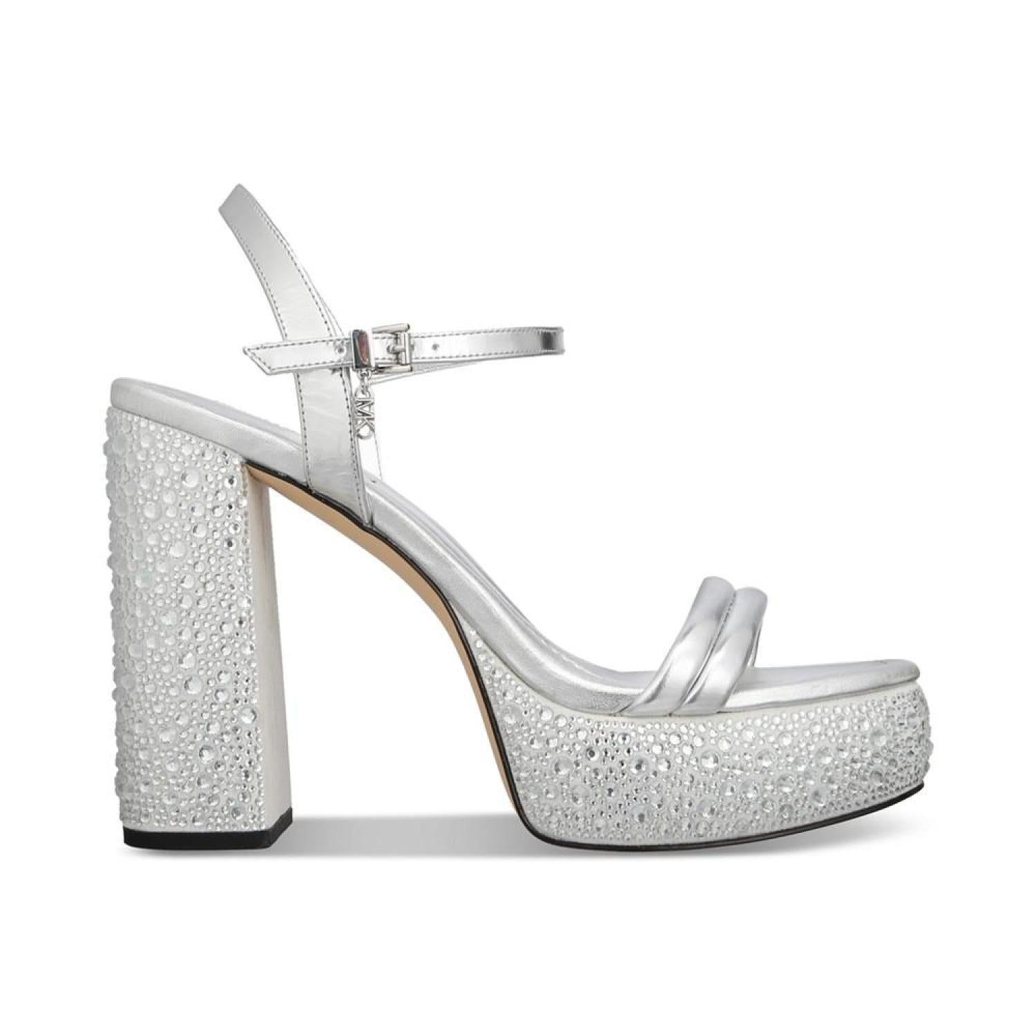 • Dangling charms and bedazzled platform heels elevate a dressy look in the strappy Laci sandals from MICHAEL Michael Kors.