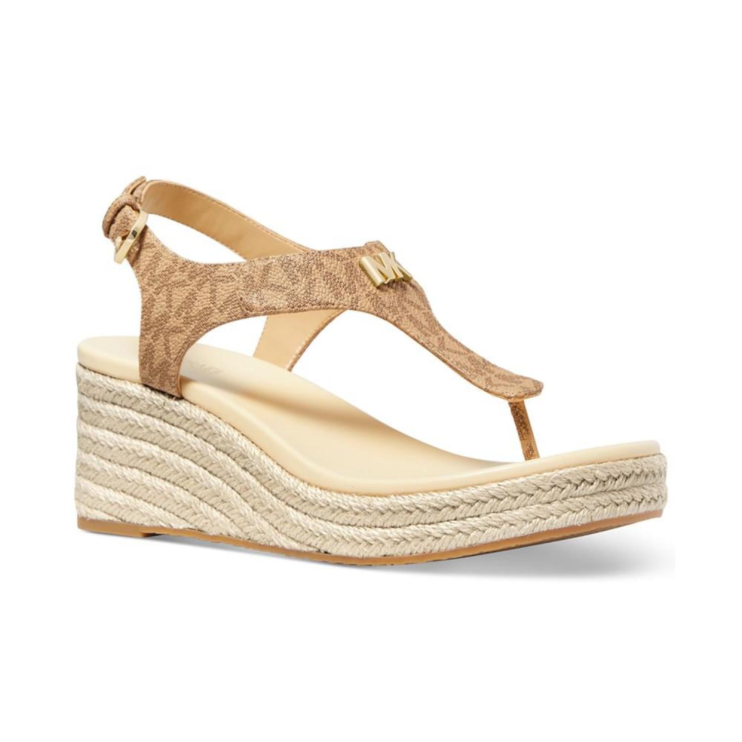 • T-strap savvy meets a beachy espadrille platform for a warm-weather lift in the Laney thong sandals from Michael Michael Kors.