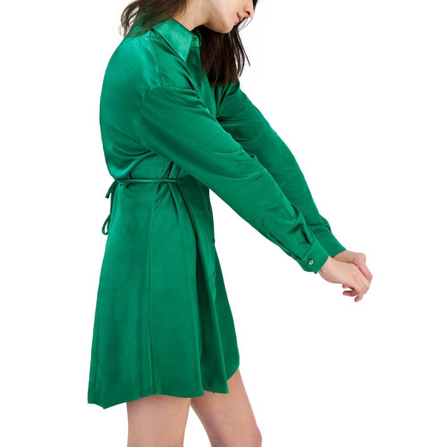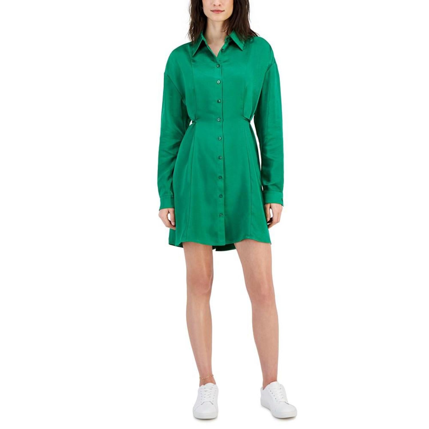 Women's Long Sleeve Silky Button-Down Dress