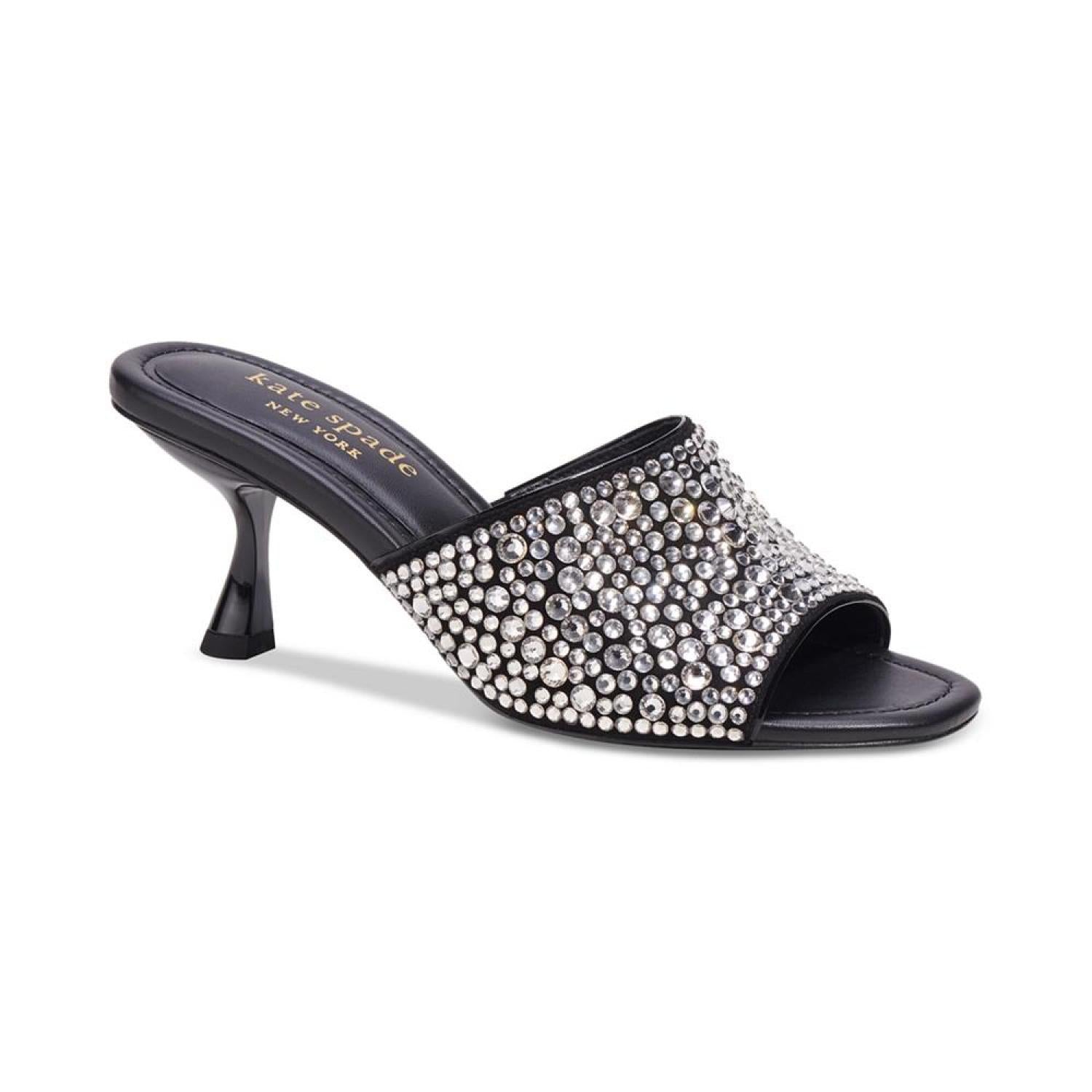 Dressed up on shapely kitten heels, the Malibu sandals by Kate Spade New York add elegant sparkle to a pretty look. 2-1/2" kitten heel Almond toe Slip on Crystal embellishments at straps Suede upper; leather lining; leather sole Imported