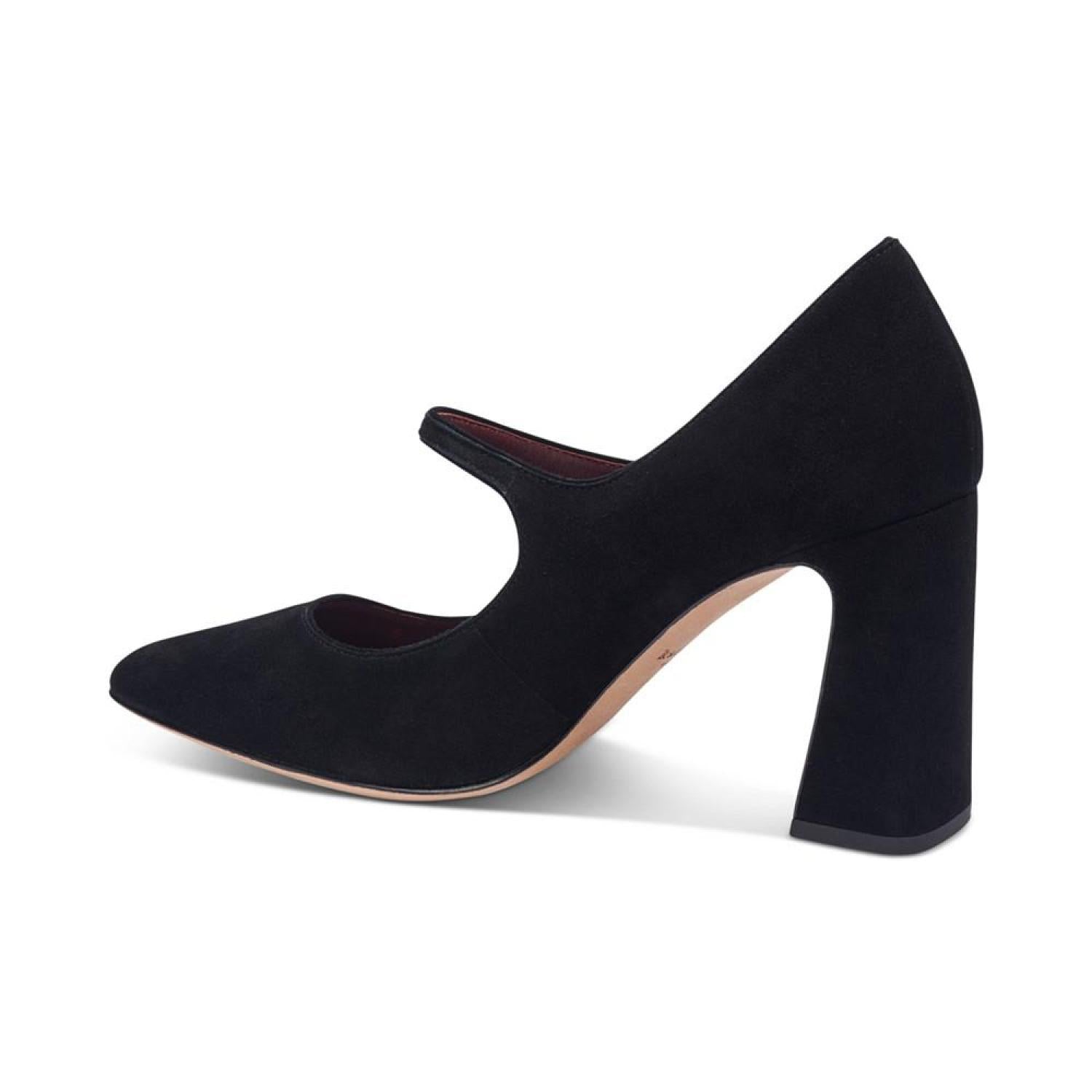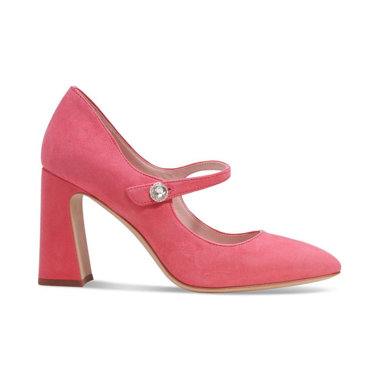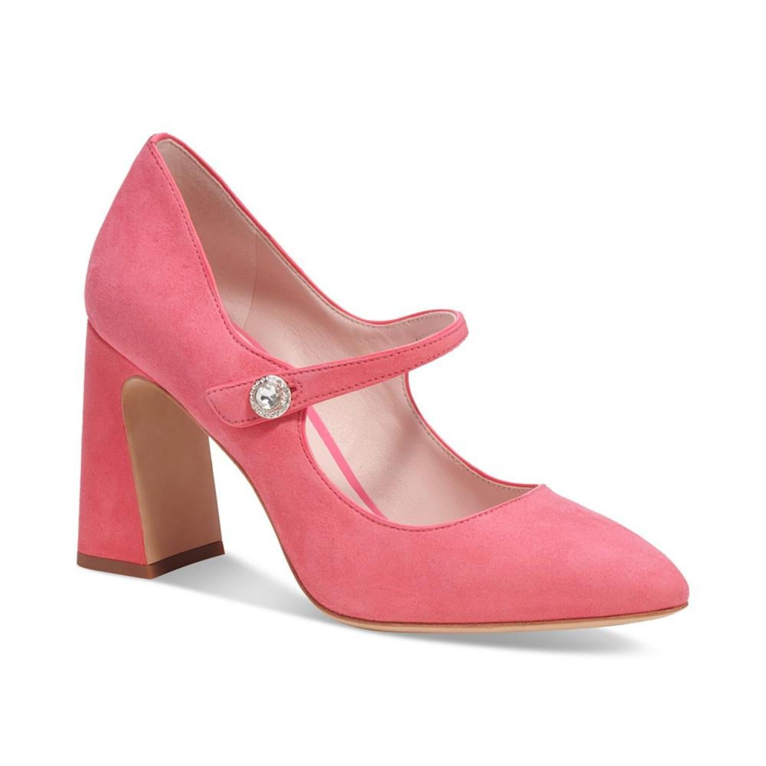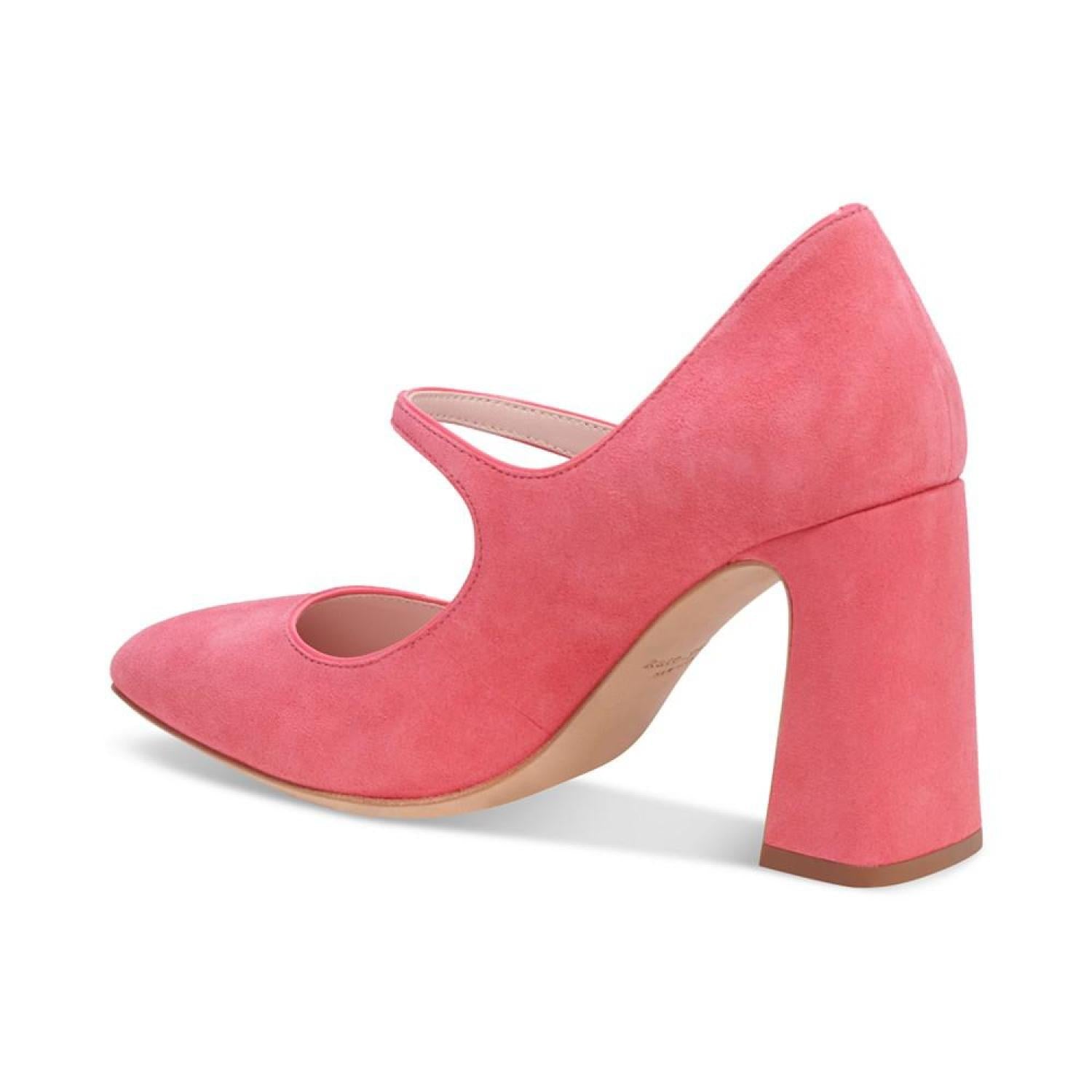 Kate Spade New York's Maren pumps are pointed in timeless fashion while an angled block heel lends contemporary lift. 3-1/2" block heel Pointed-toe slip-on pumps Created for Macy's Suede or fabric uppers; leather lining; leather sole Imported