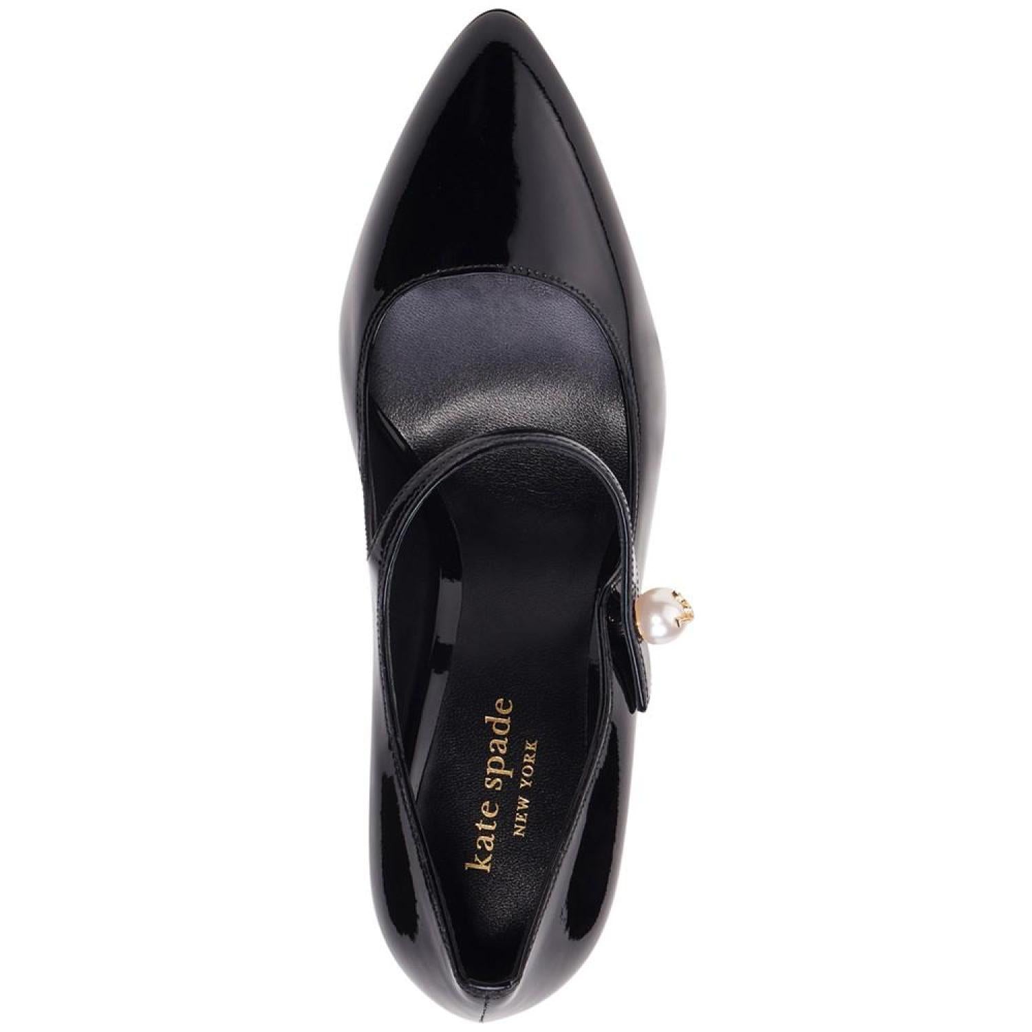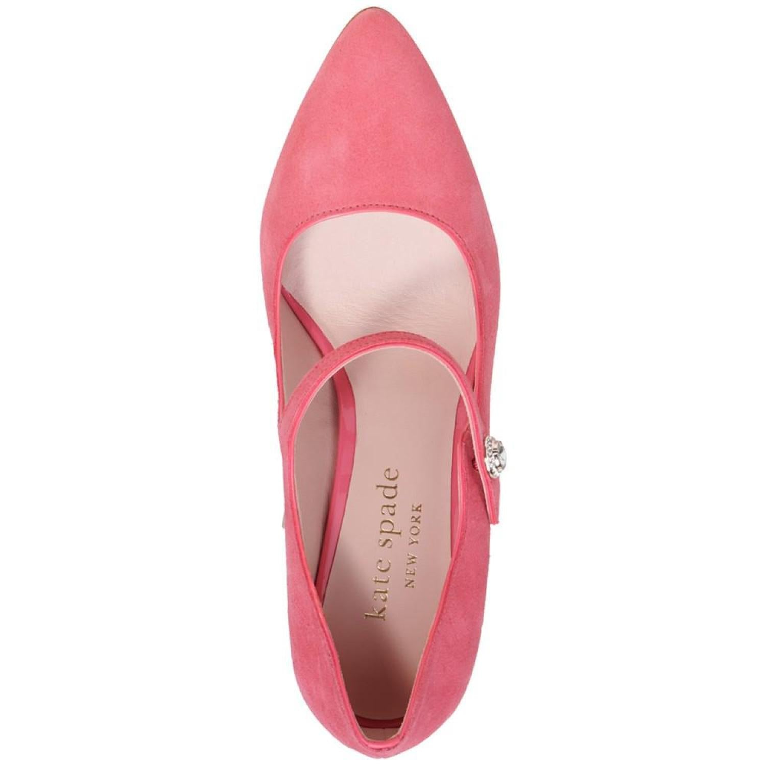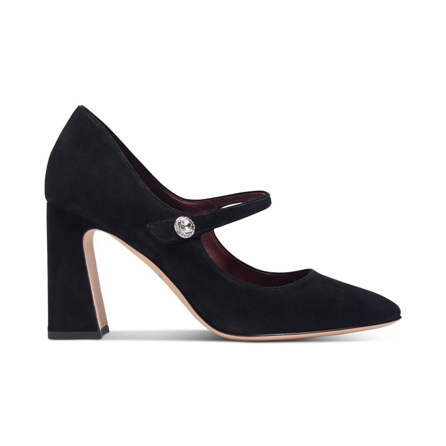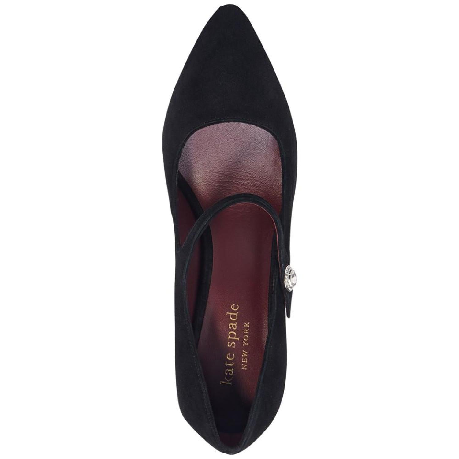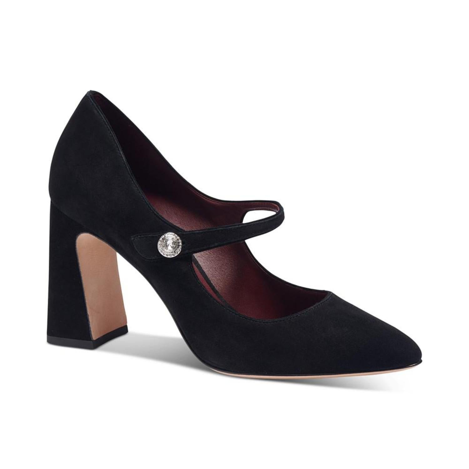 Kate Spade New York's Maren pumps are pointed in timeless fashion while an angled block heel lends contemporary lift. 3-1/2" block heel Pointed-toe slip-on pumps Created for Macy's Suede or fabric uppers; leather lining; leather sole Imported