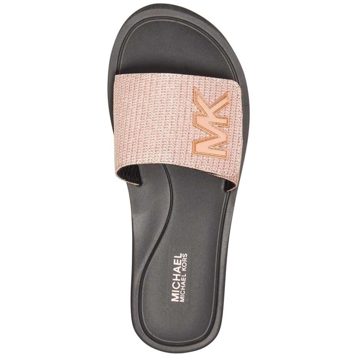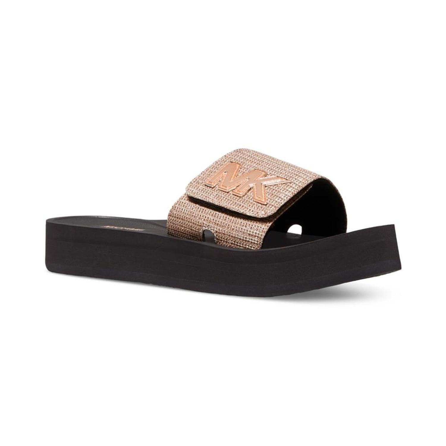 Signature style shimmers atop sporty platforms in the effortless slide silhouette of the MiCHAEL Michael Kors MK pool sandals.